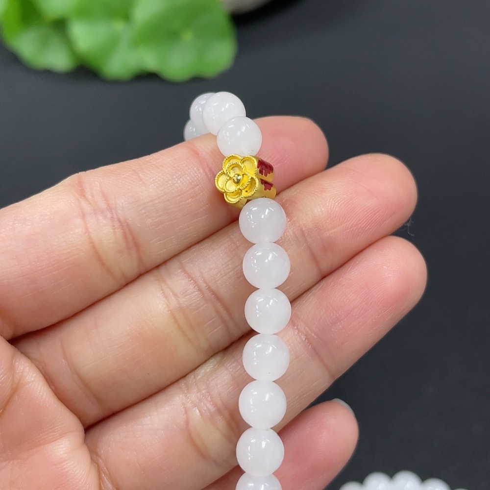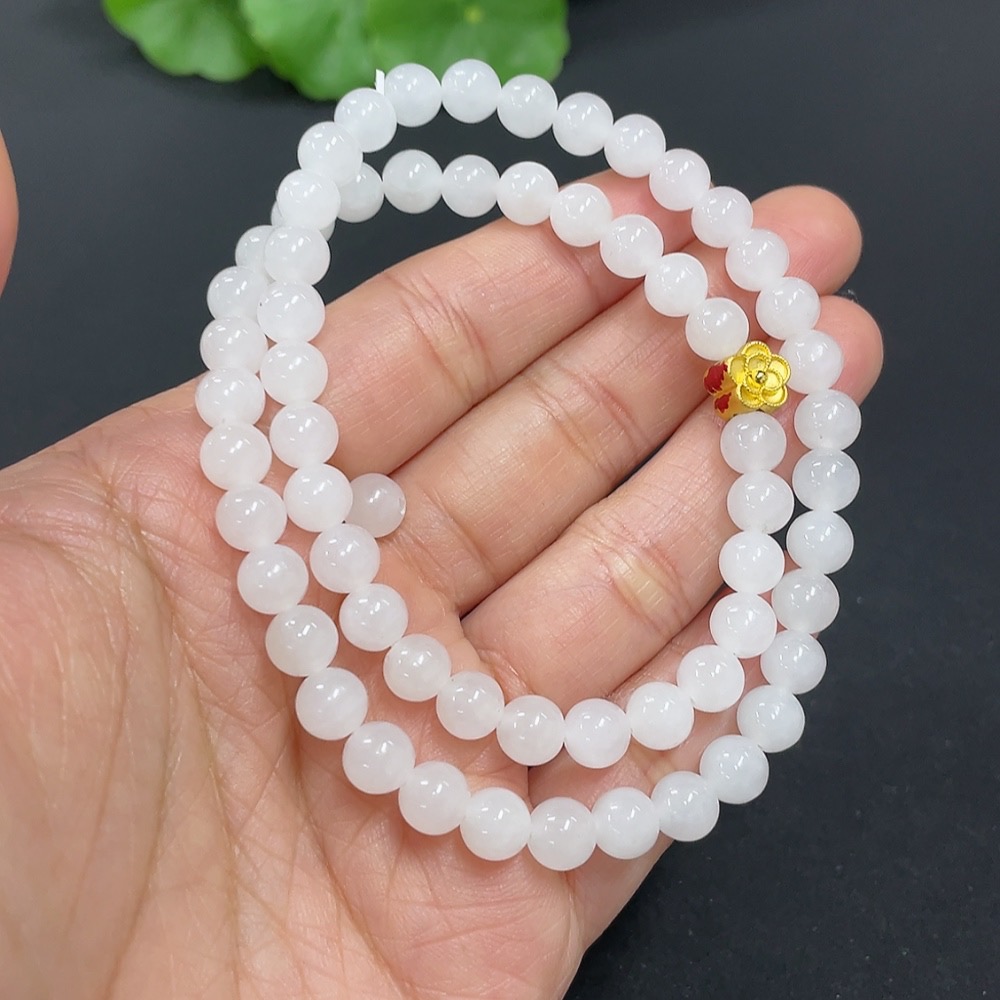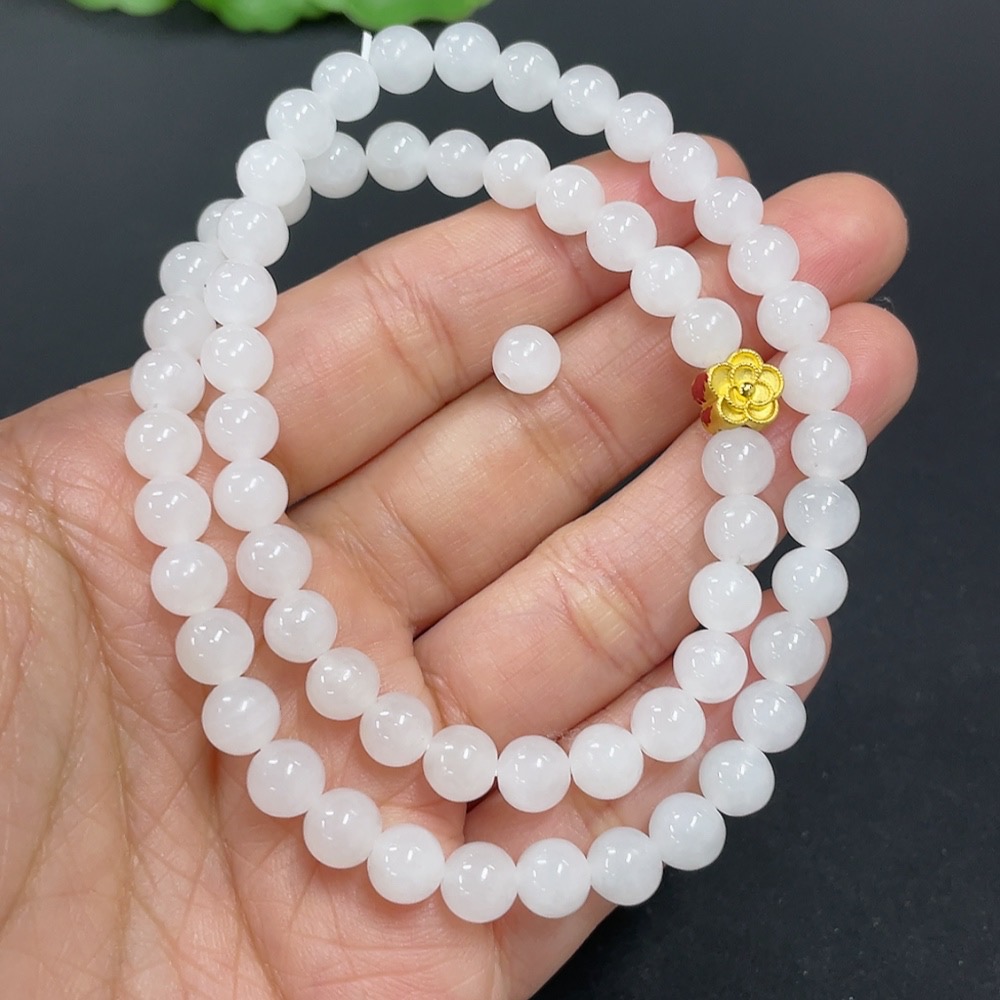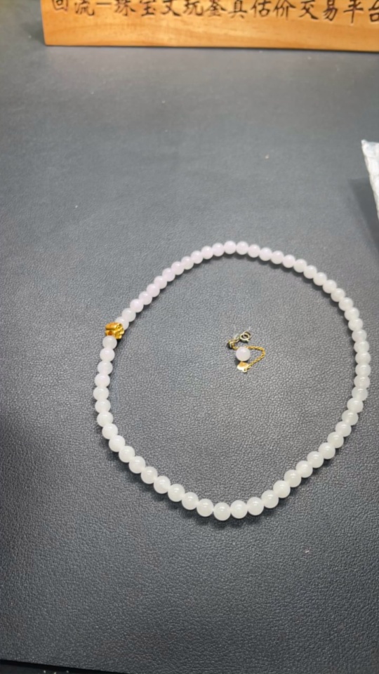Hetian Jade Bead Necklace, approx. 6mm, containing other mineral components, marked red with 99% gold content, rest non-gold, total weight approx. 22.7g
