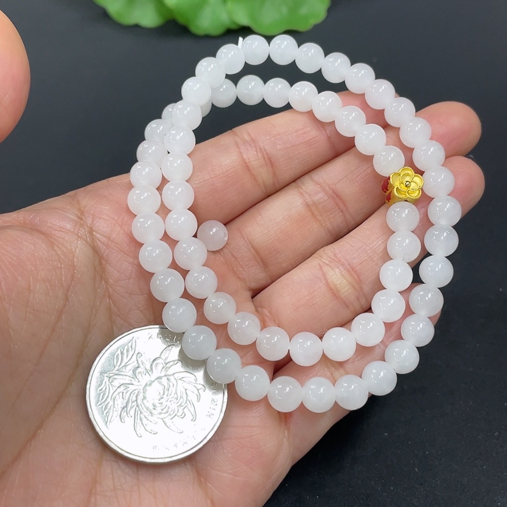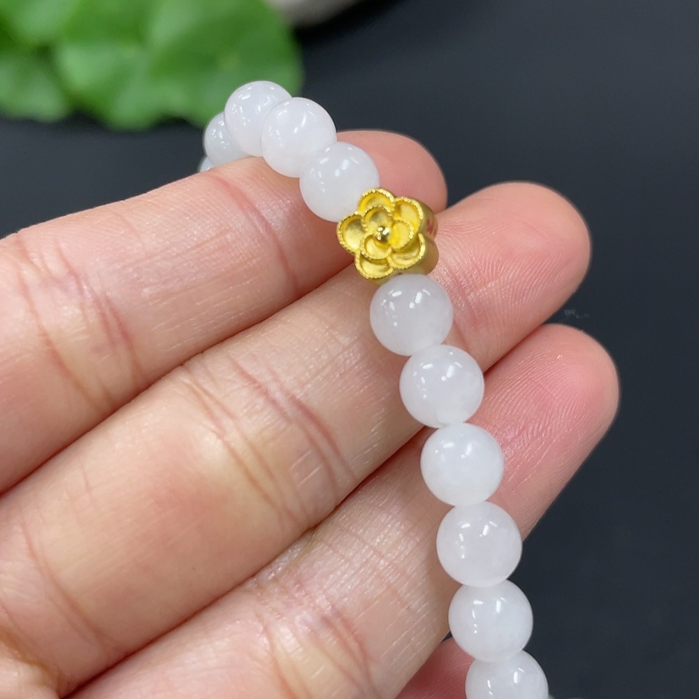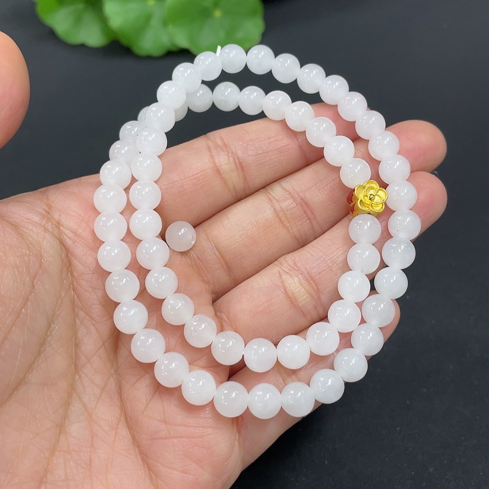 Hetian Jade Bead Necklace, approx. 6mm, containing other mineral components, marked red with 99% gold content, rest non-gold, total weight approx. 22.7g