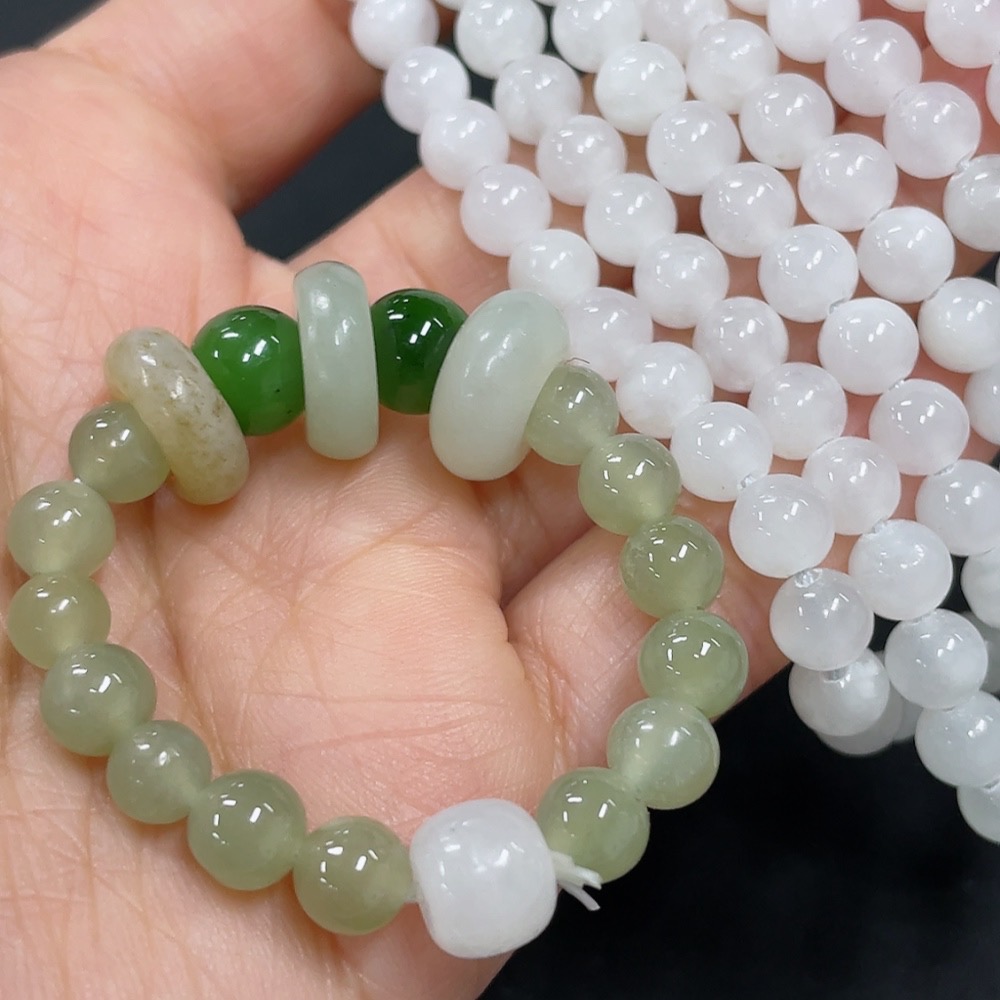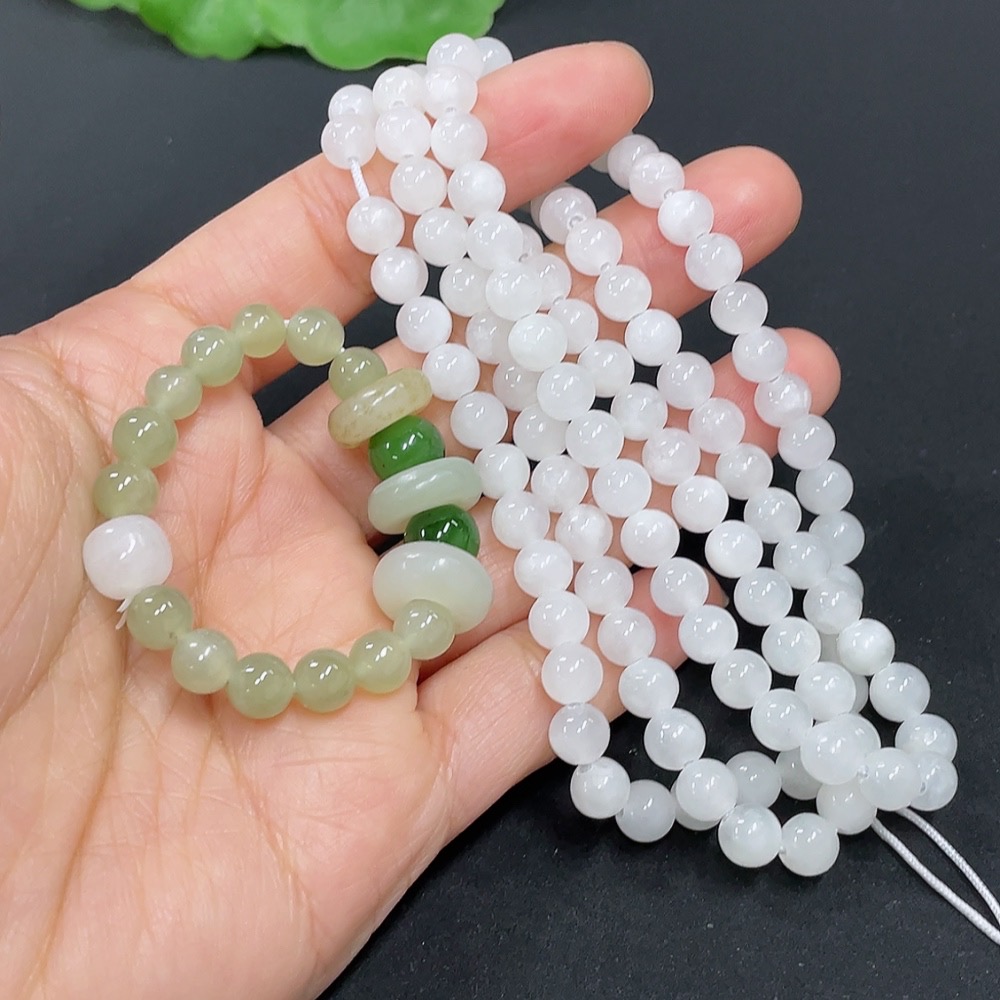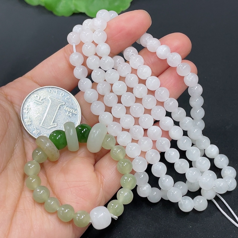 Hetian Jade Bead Necklace + Bracelet with Other Mineral Components, Maximum Bead Size Approx. 5.8mm, Total Weight Approx. 44.2g