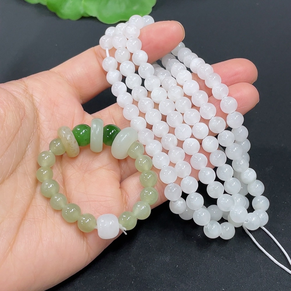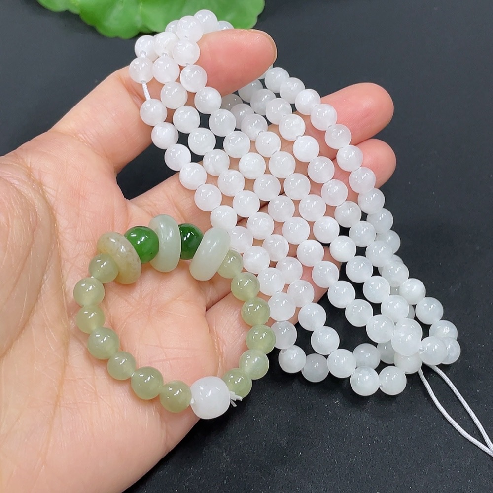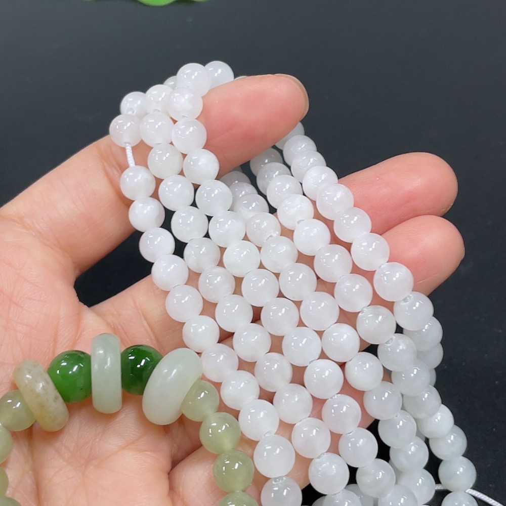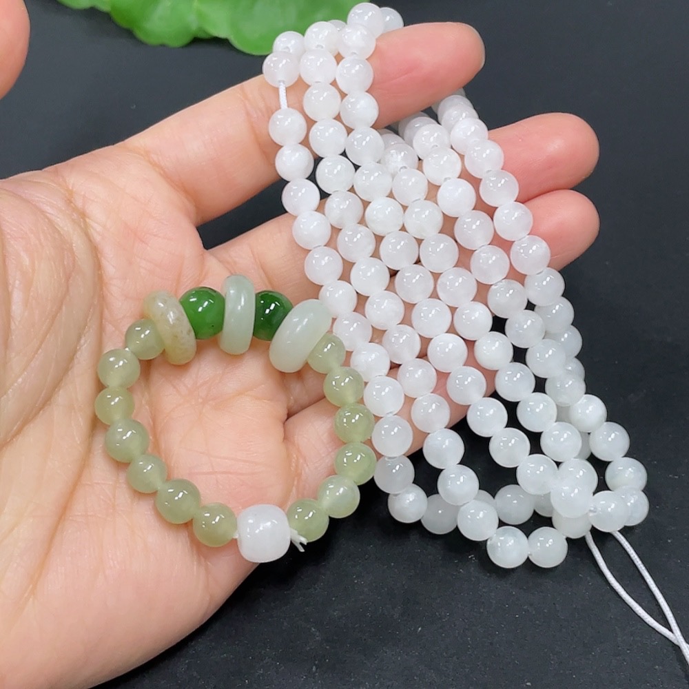 Hetian Jade Bead Necklace + Bracelet with Other Mineral Components, Maximum Bead Size Approx. 5.8mm, Total Weight Approx. 44.2g
