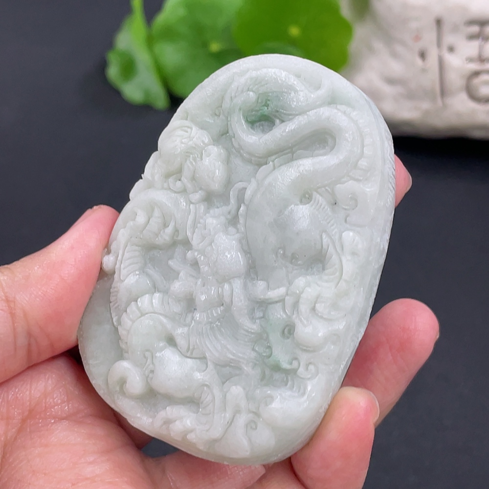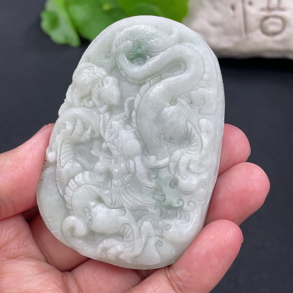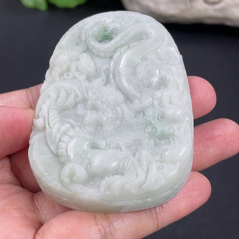 Jadeite Rough Dragon Pendant Total Weight Approx. 73.26g Including Other Mineral Components
