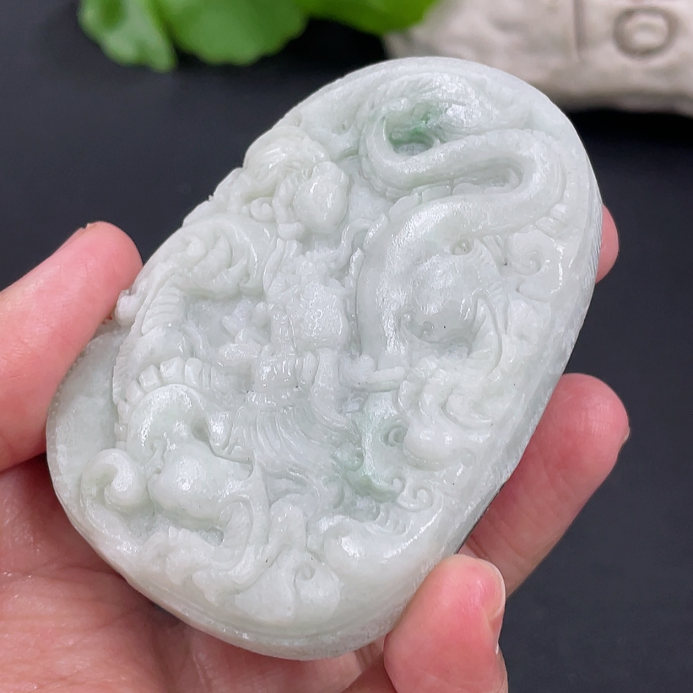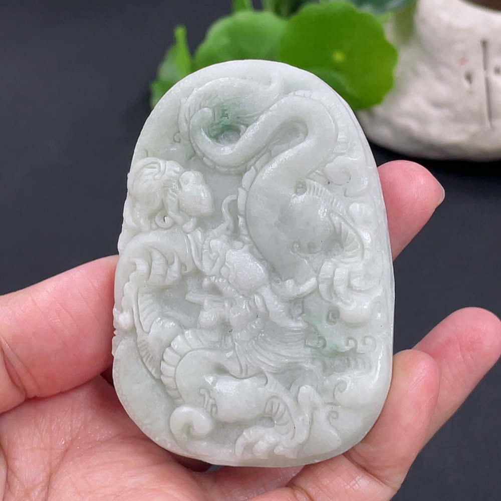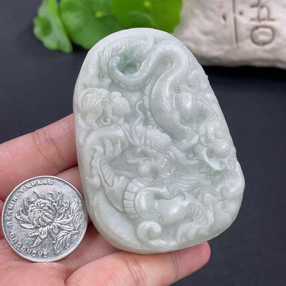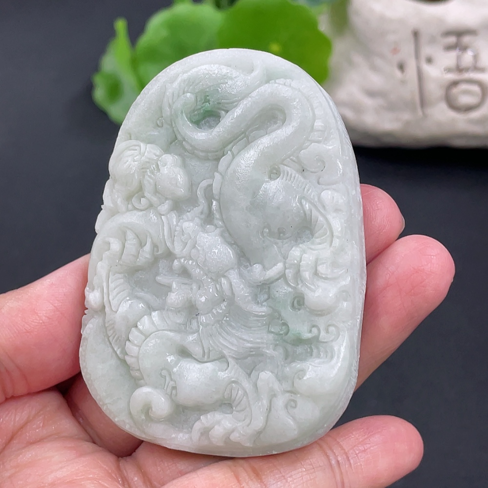 Jadeite Rough Dragon Pendant Total Weight Approx. 73.26g Including Other Mineral Components
