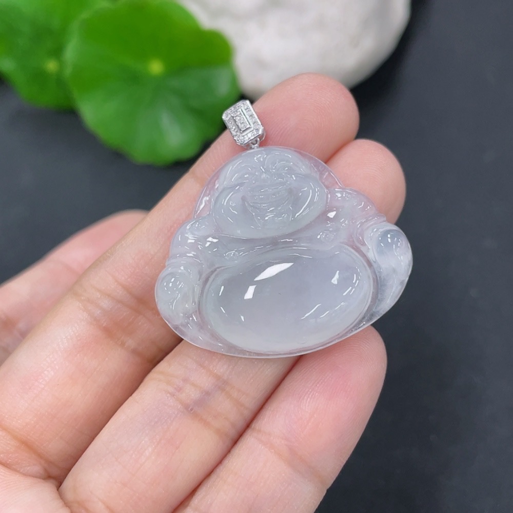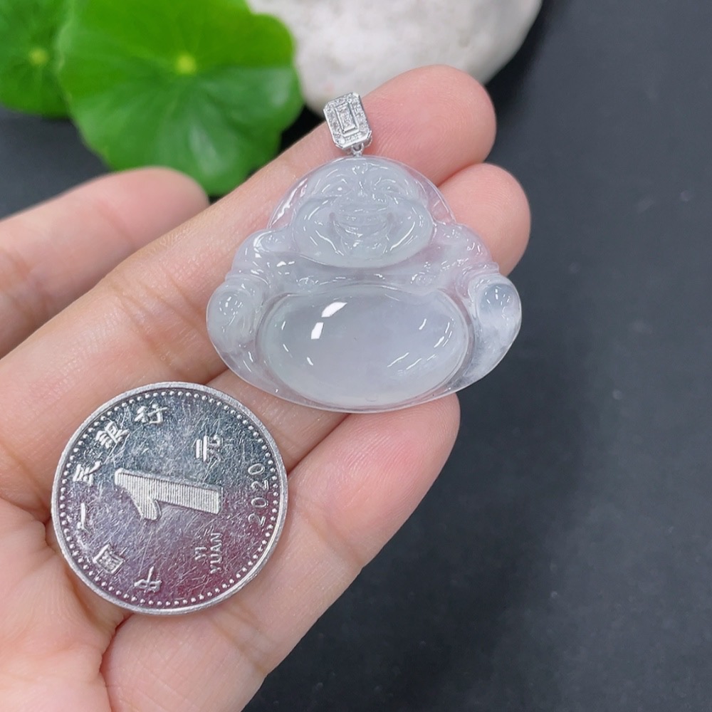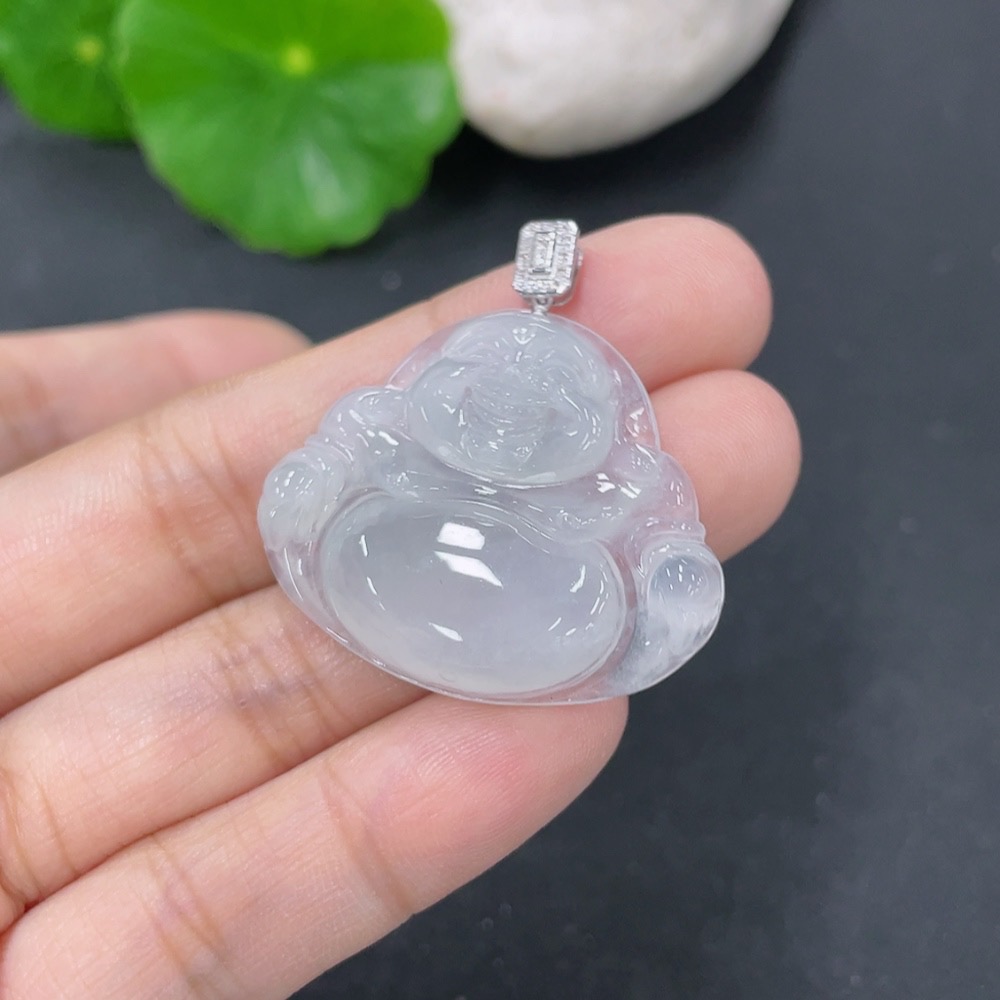 Jadeite Pendant Buddha 18k with Diamond Accent Total Weight Approx. 6.45g