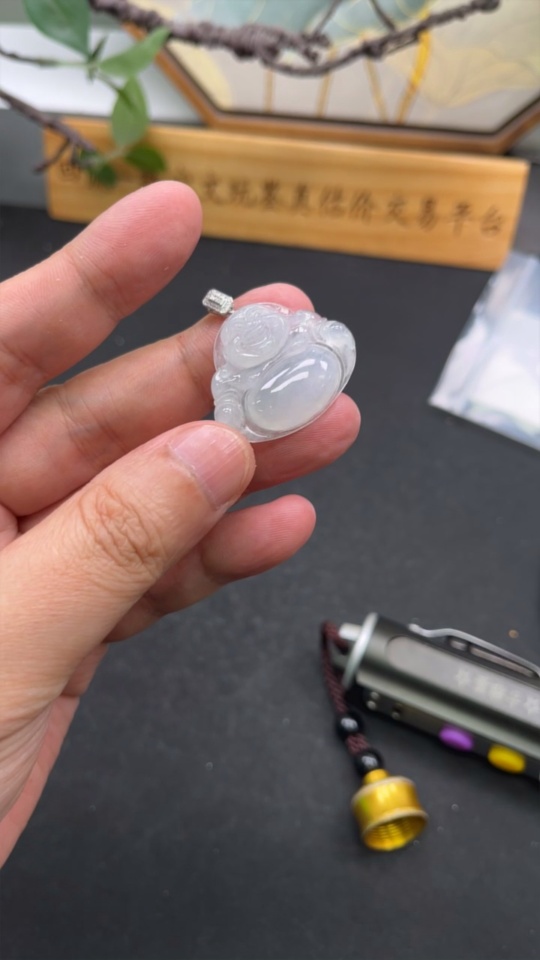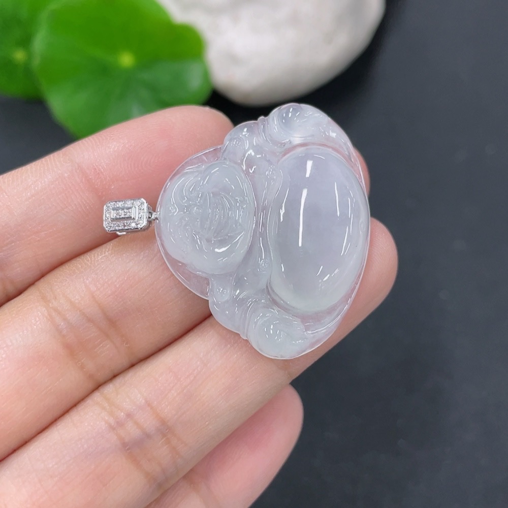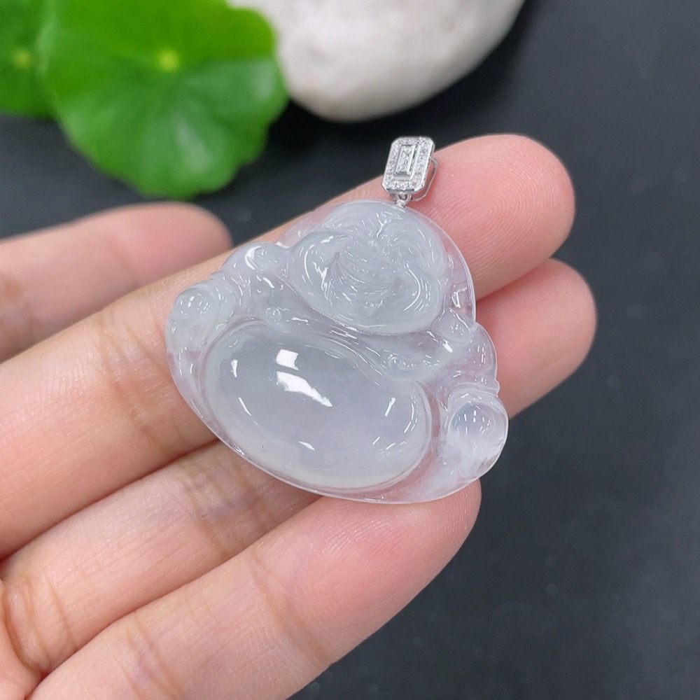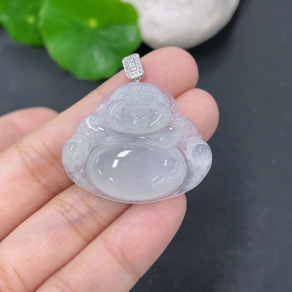 Jadeite Pendant Buddha 18k with Diamond Accent Total Weight Approx. 6.45g