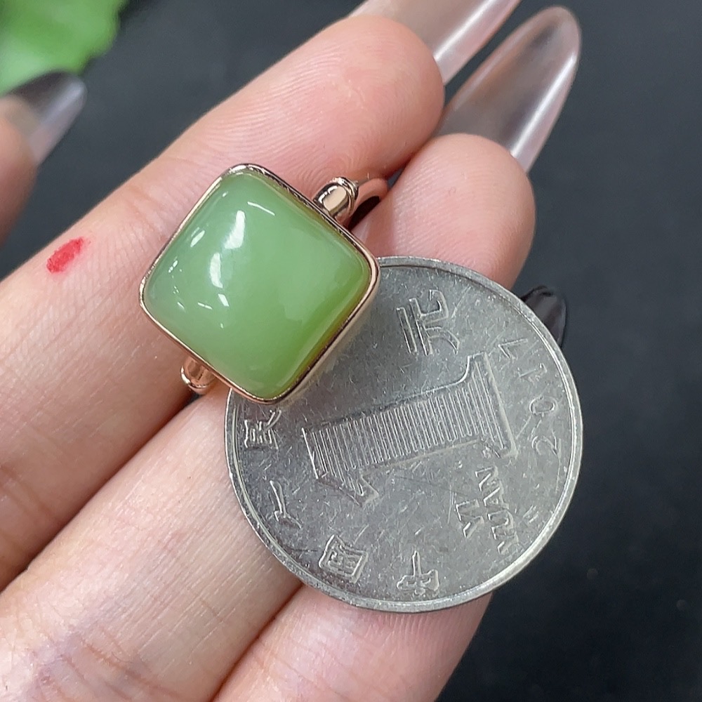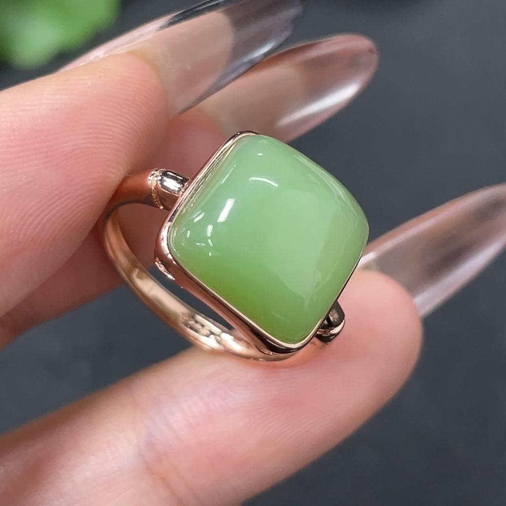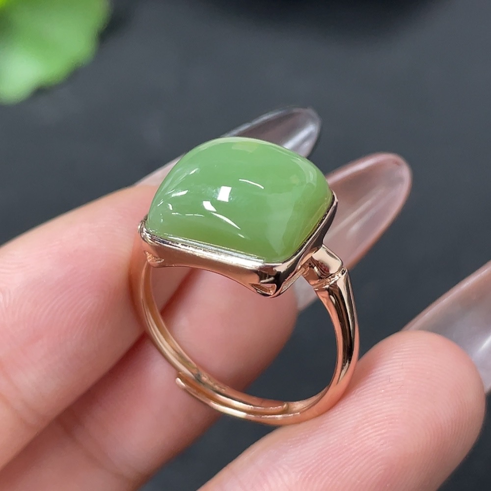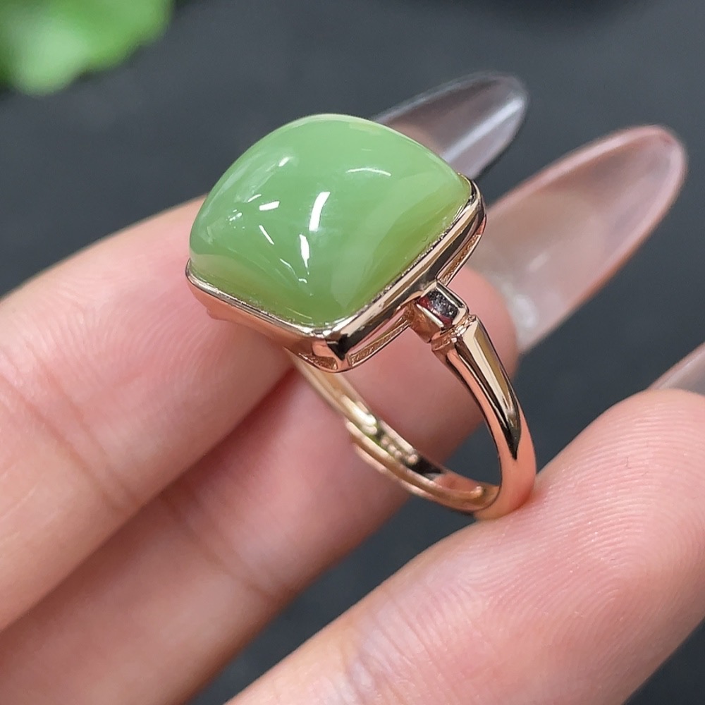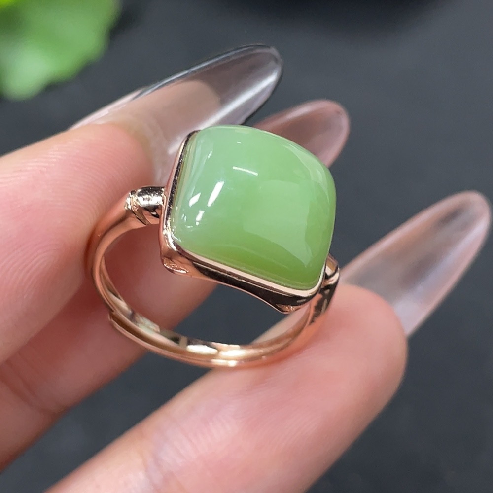 Hetian Jade Inlaid Adjustable Ring Non-Gold Total Weight Approx. 3.9g