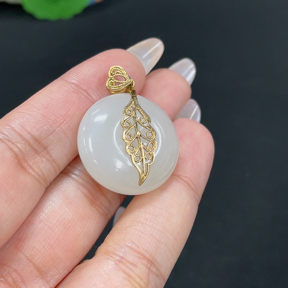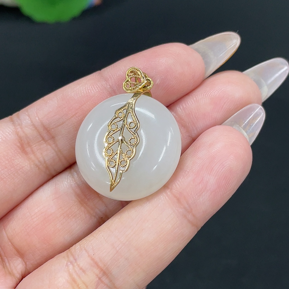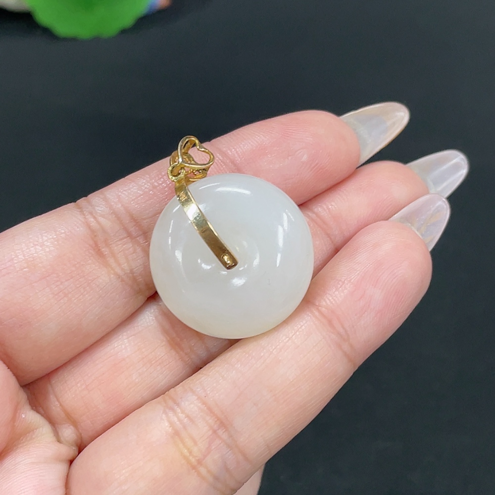 Hetian Jade Inlaid Pendant Peace Buckle Total Weight Approx.11.7g 18k