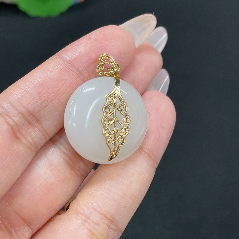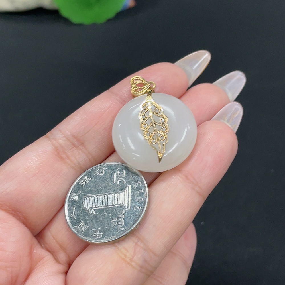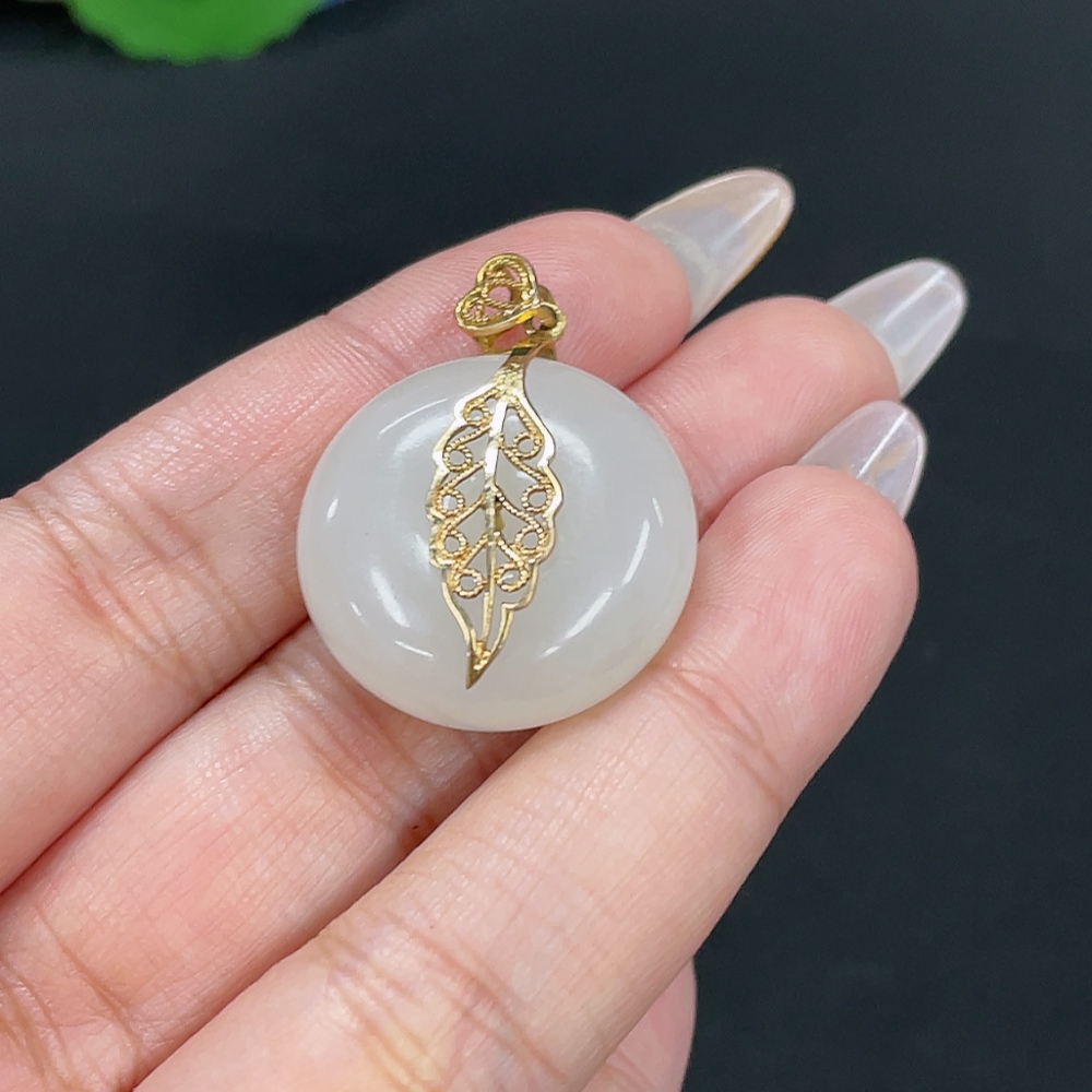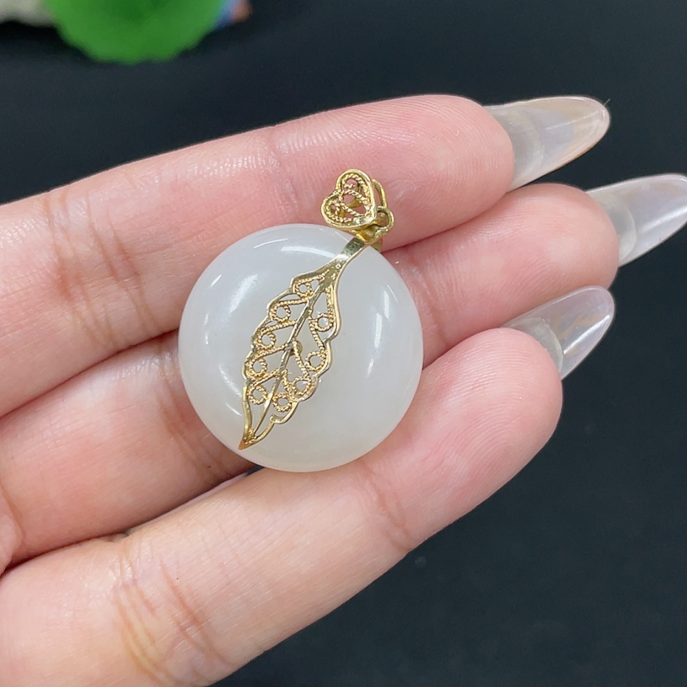 Hetian Jade Inlaid Pendant Peace Buckle Total Weight Approx.11.7g 18k