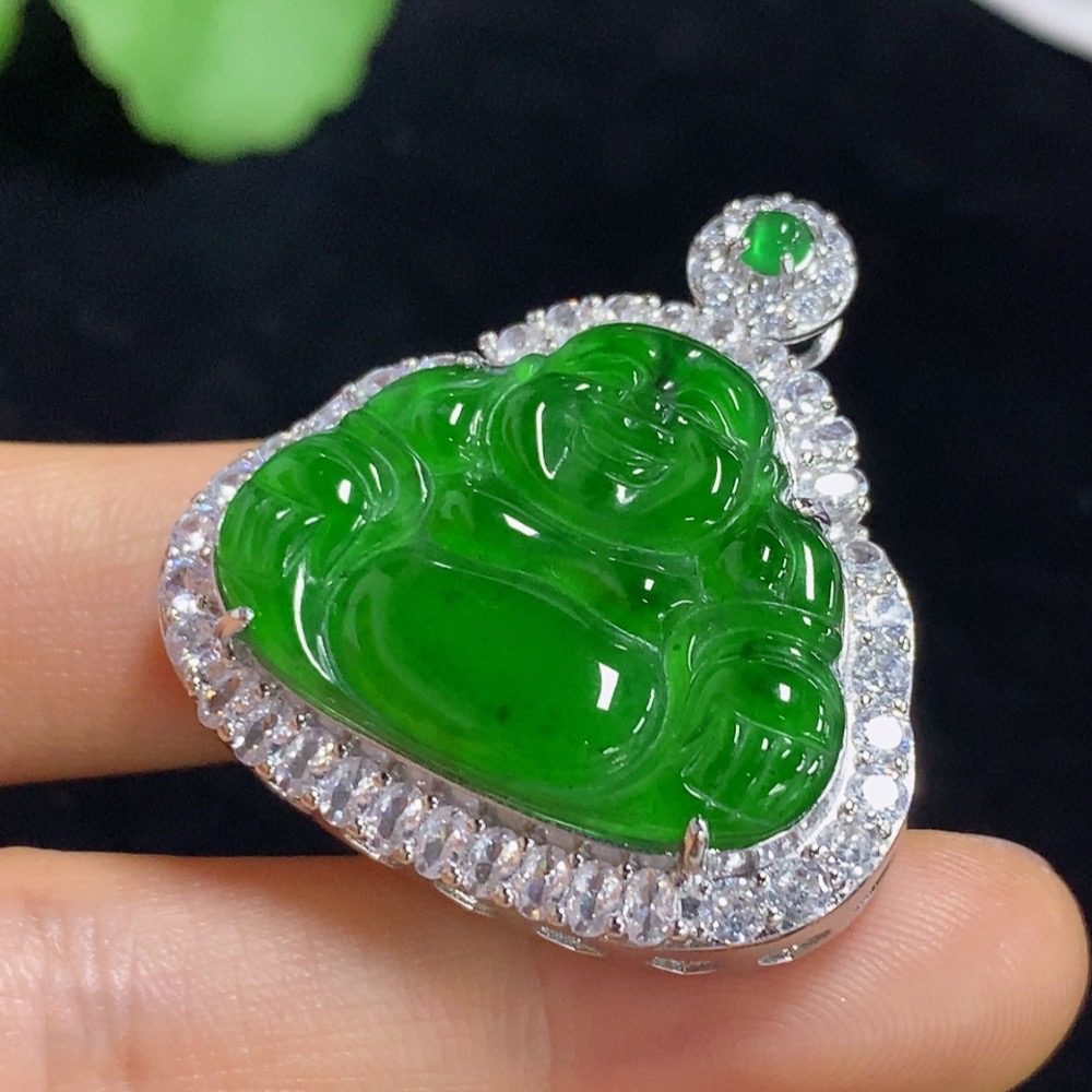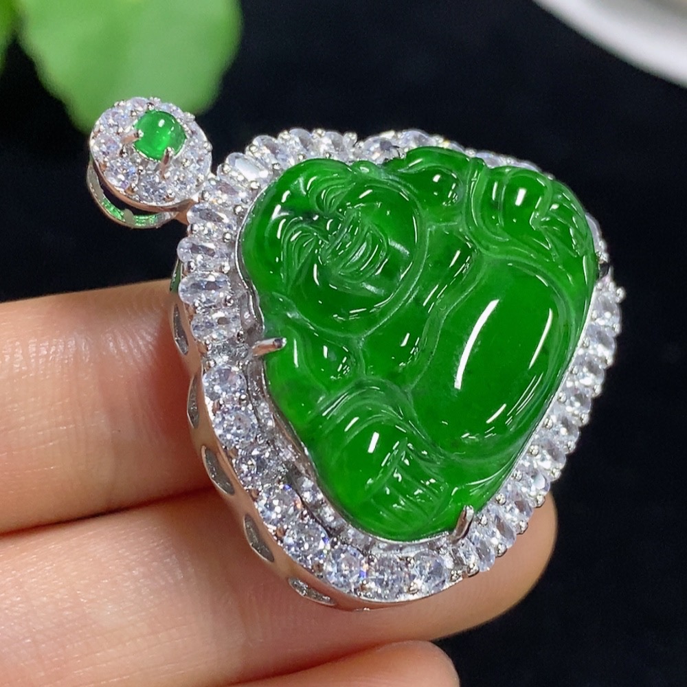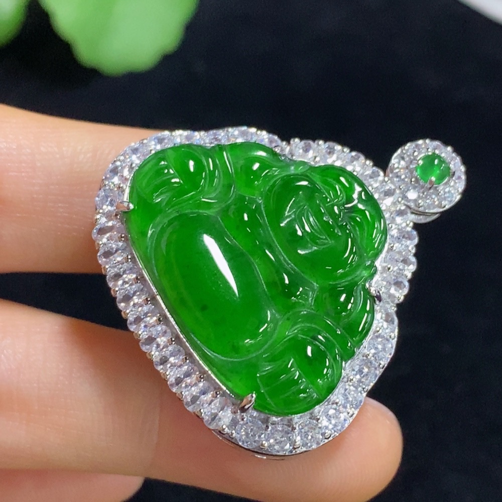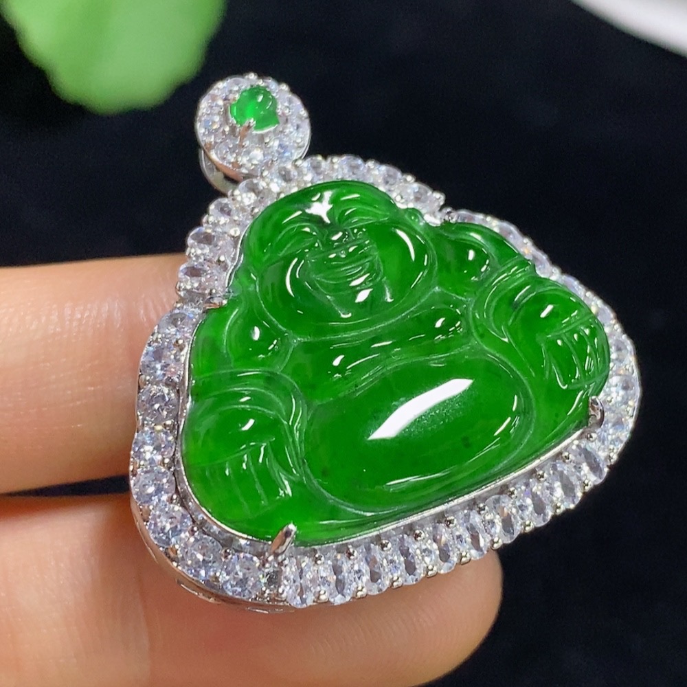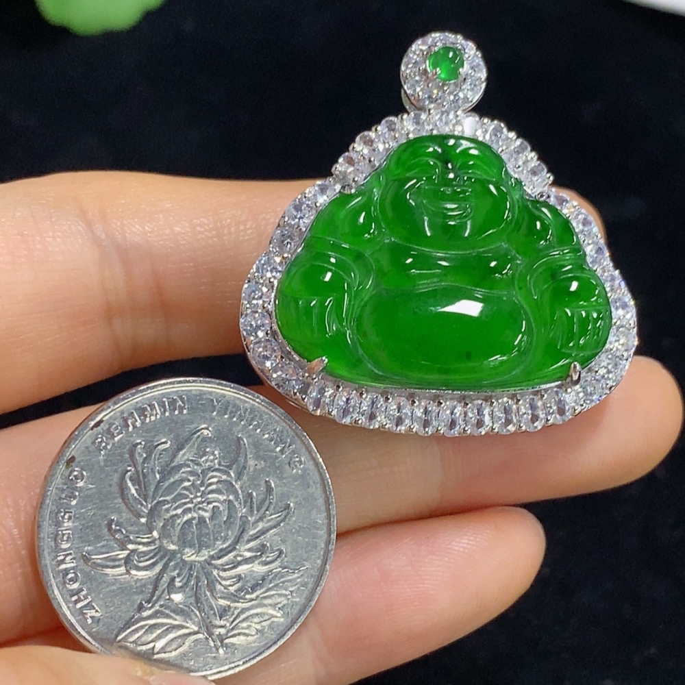 Jadeite Buddha Inlaid Pendant Non-Gold Total Weight Approx. 10.24g Beads Non-A