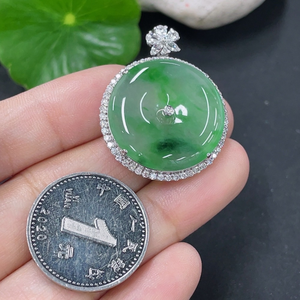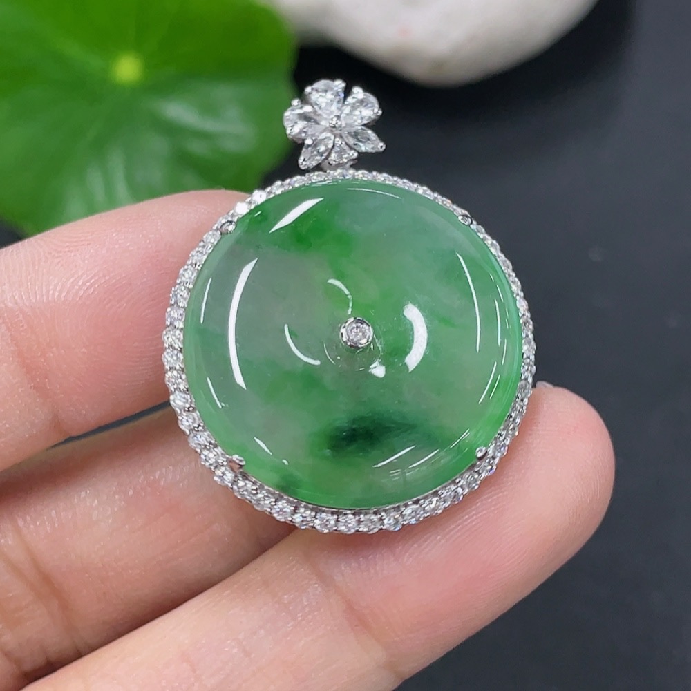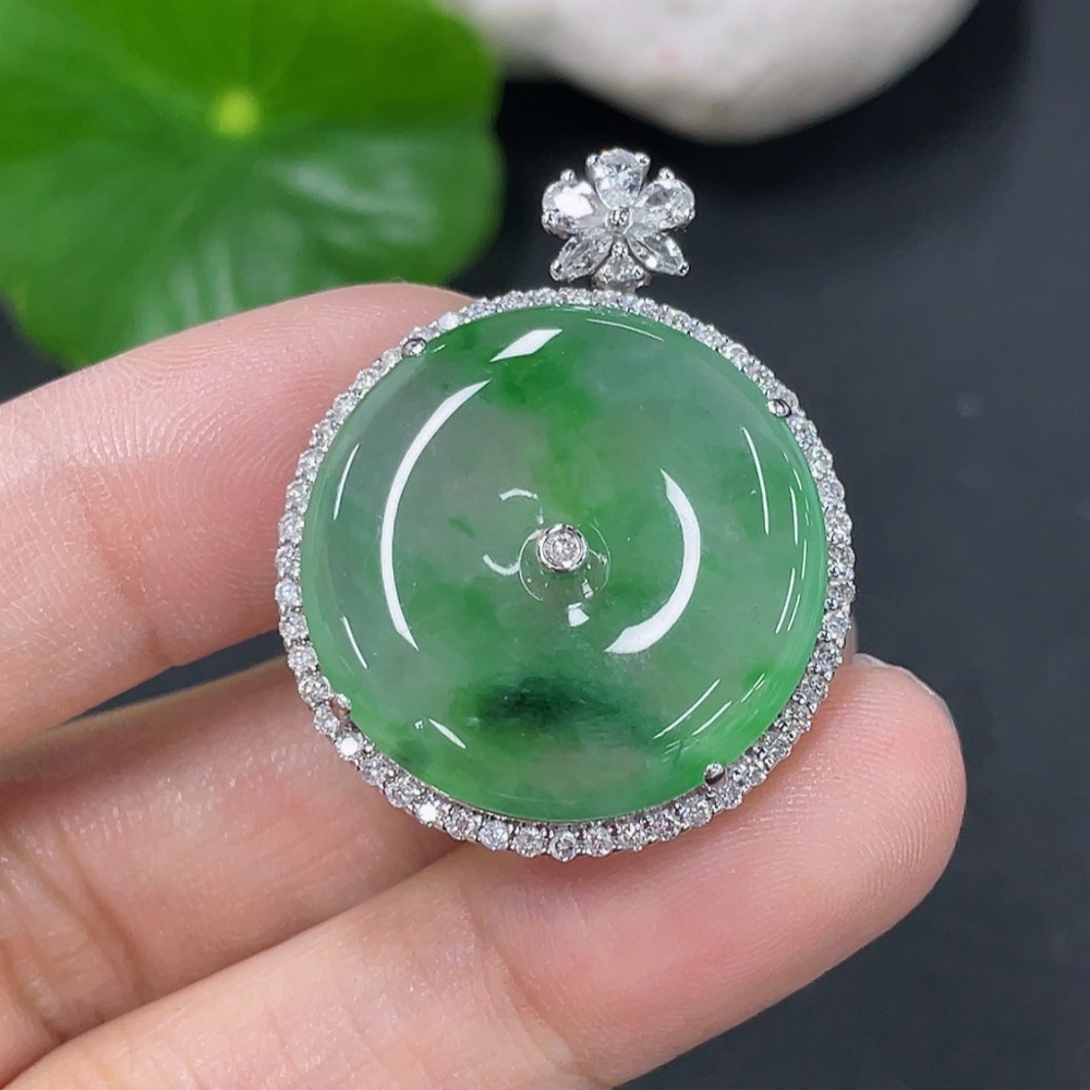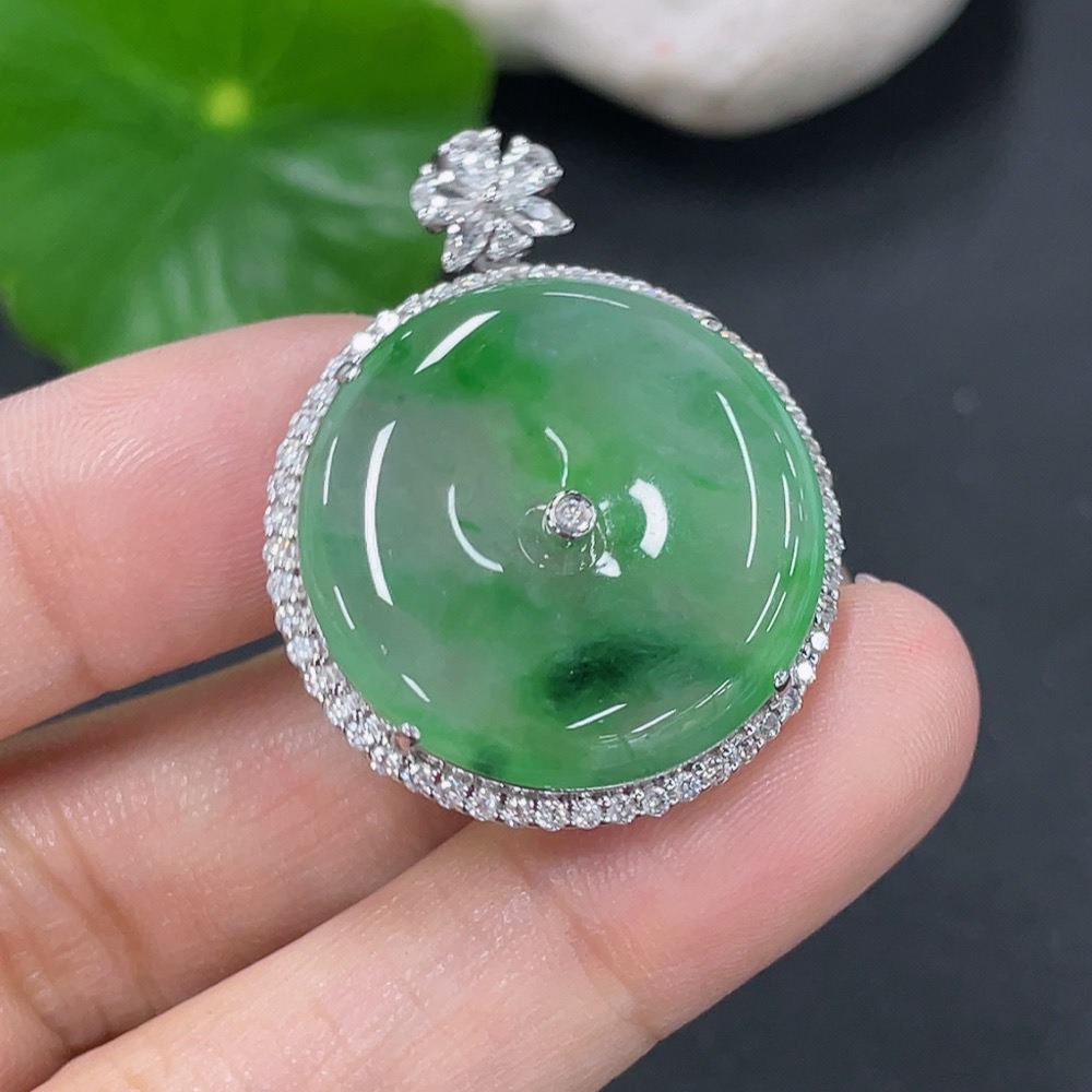 Jadeite inlaid peace buckle pendant with 18k gold and diamond accents (minimum only) total weight approx. 7.67g