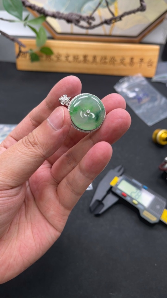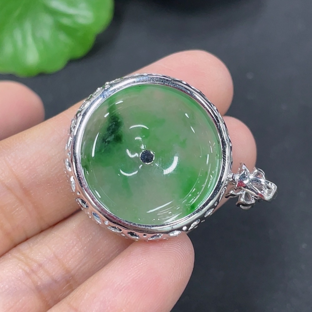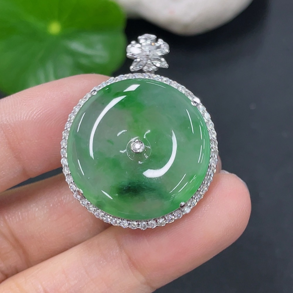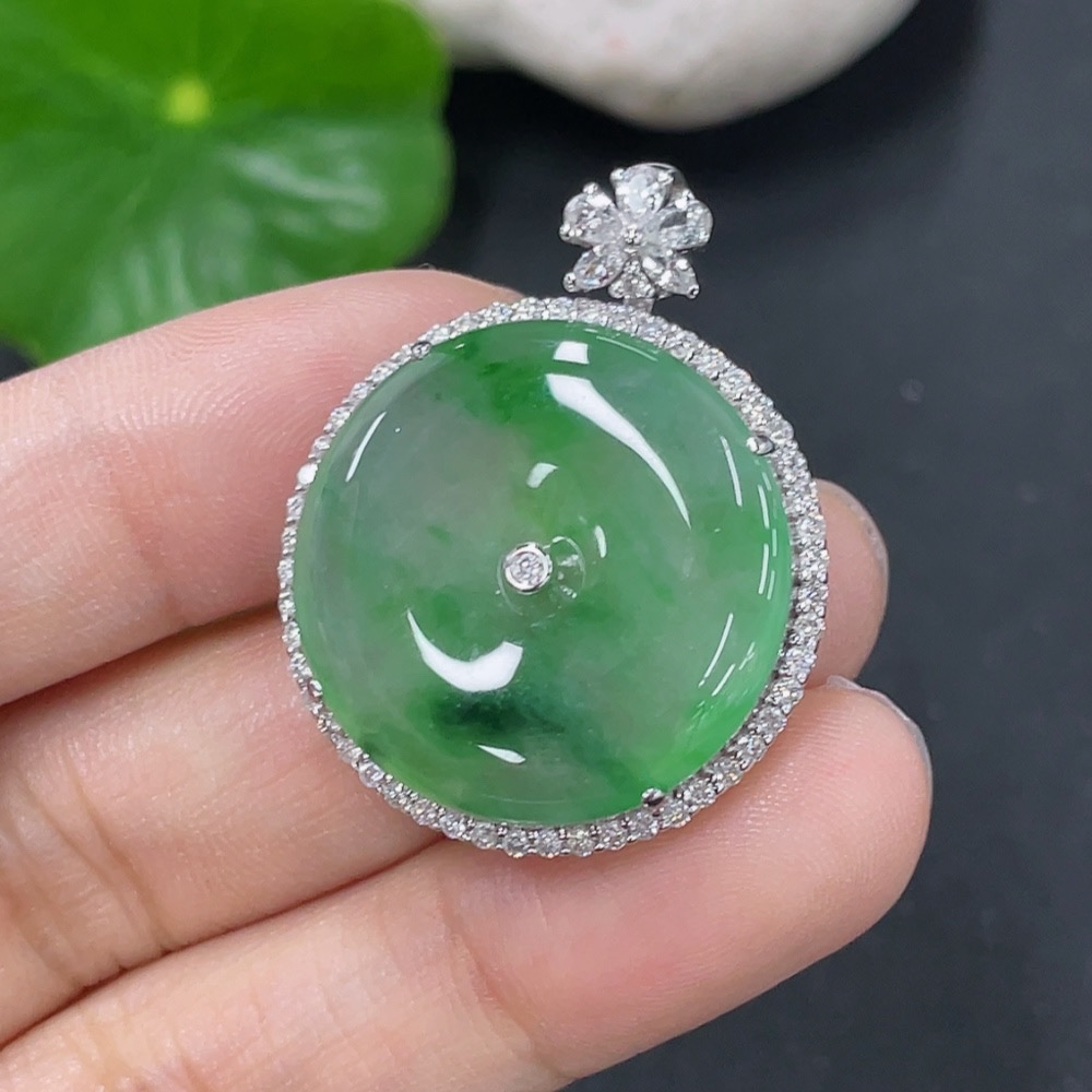 Jadeite inlaid peace buckle pendant with 18k gold and diamond accents (minimum only) total weight approx. 7.67g