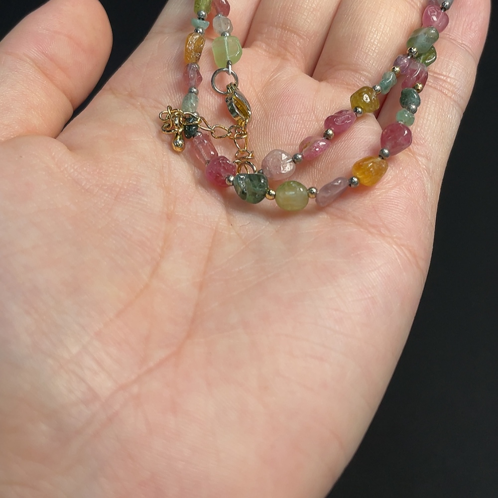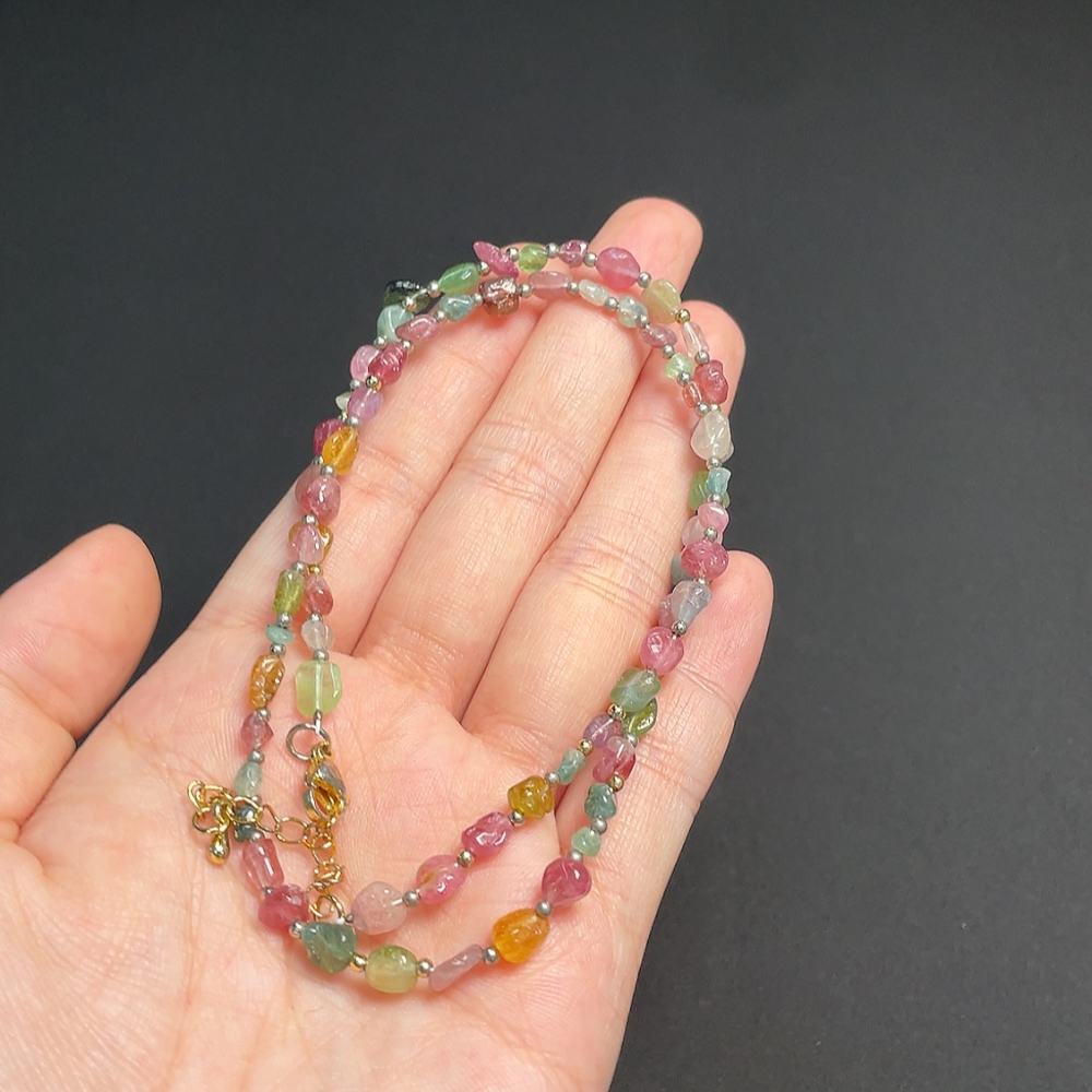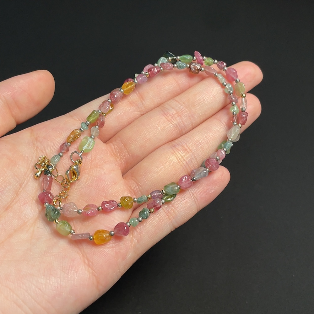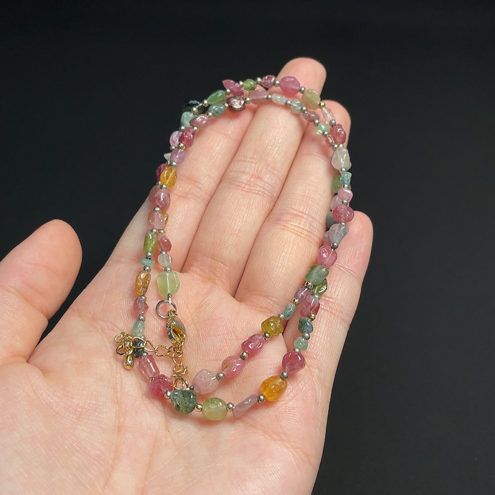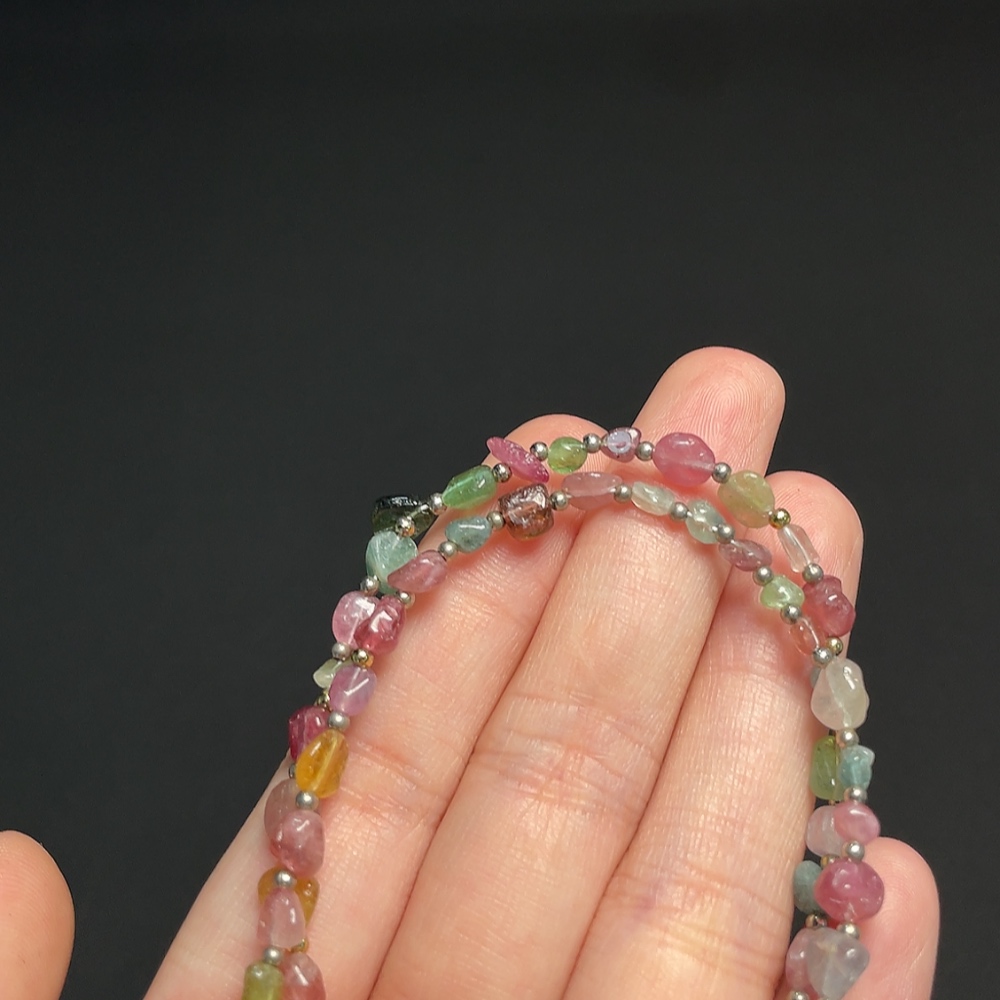 Tourmaline bead necklace containing other mineral components, visible organic matter, non-metal, total weight approximately 9.53g