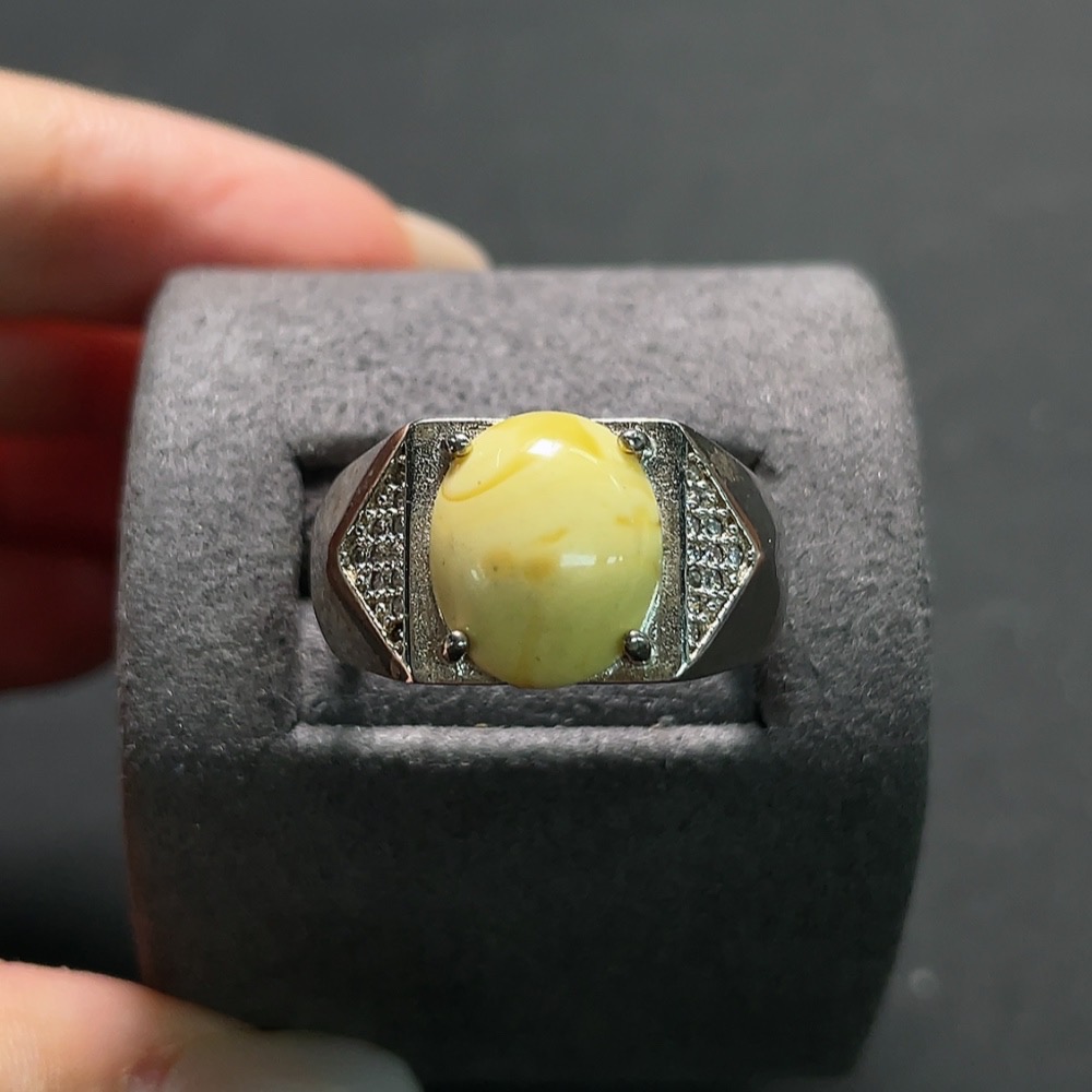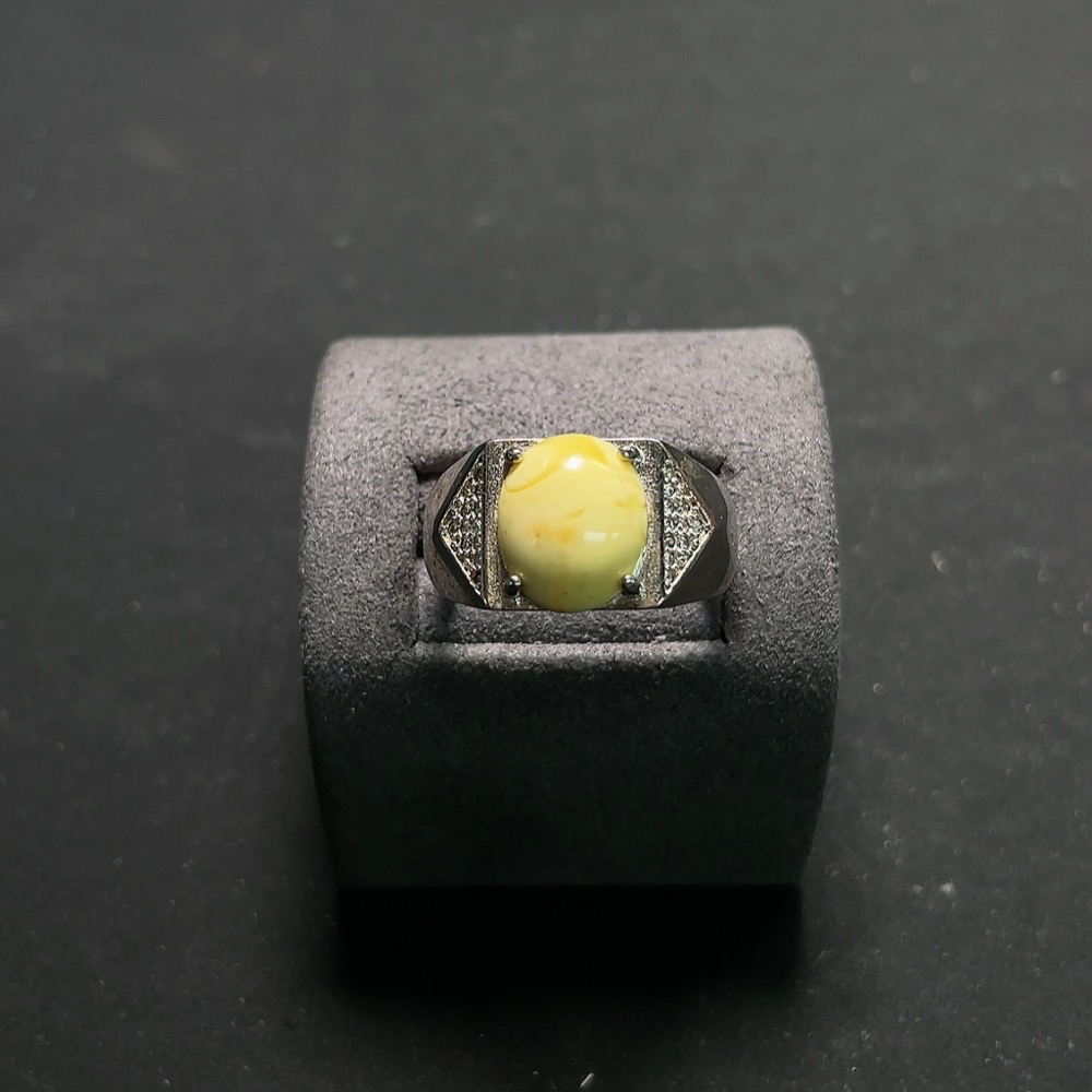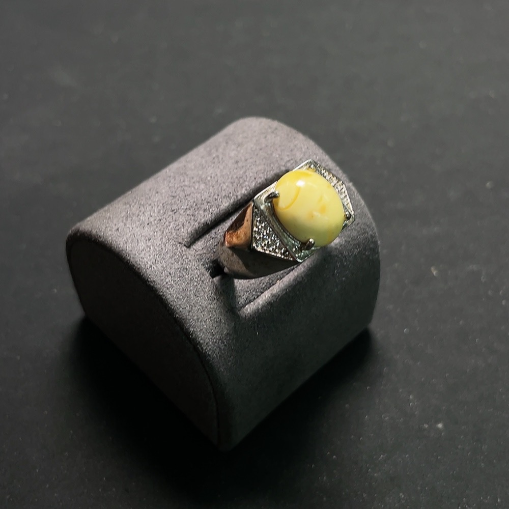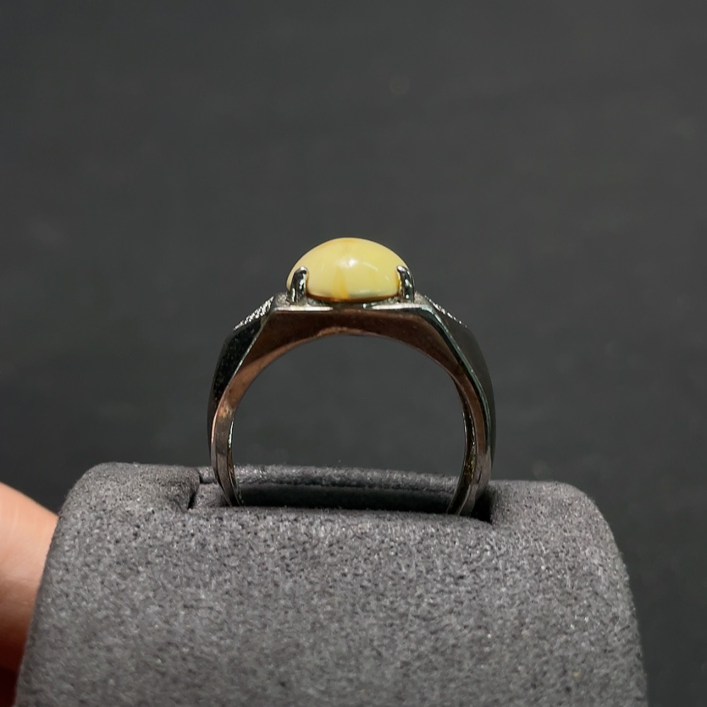 Amber Beeswax Ring Non-Gold Adjustable Open Back Colored Base Total Weight Approx. 5.1g