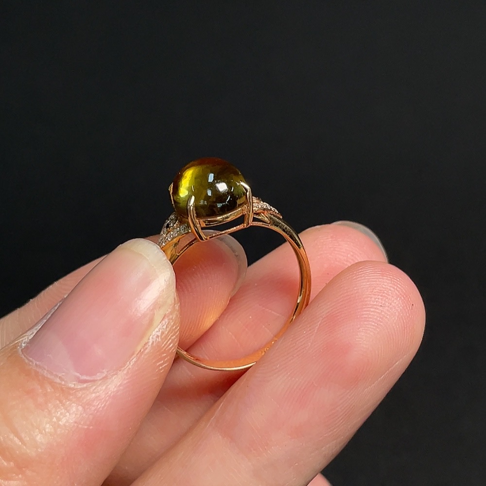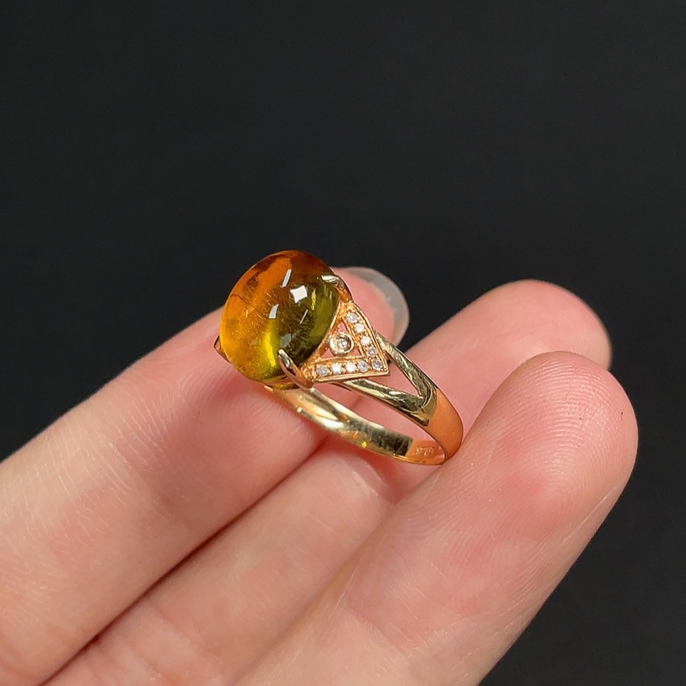 Tourmaline Inlaid Ring 18k Gold Size 13 Total Weight Approx. 2.00g Diamond Accents