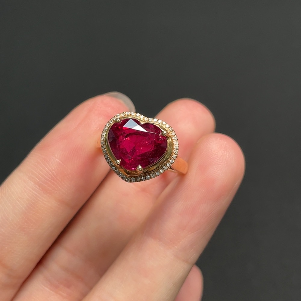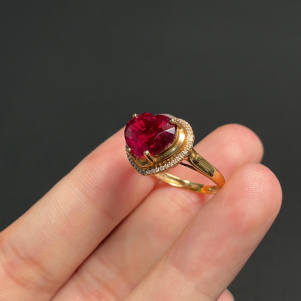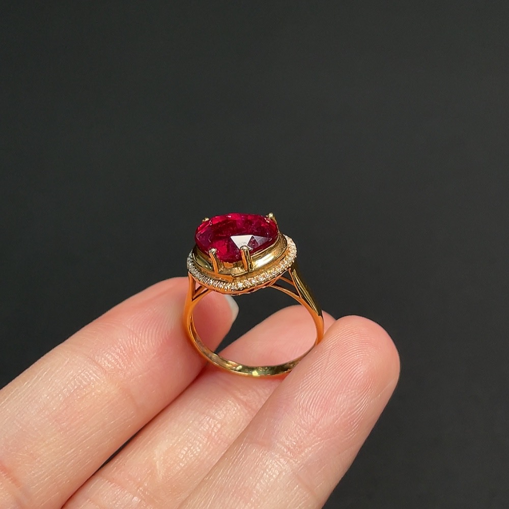 18K Tourmaline Ring with Diamond Accents, Total Weight Approx. 3.11g, Size 13