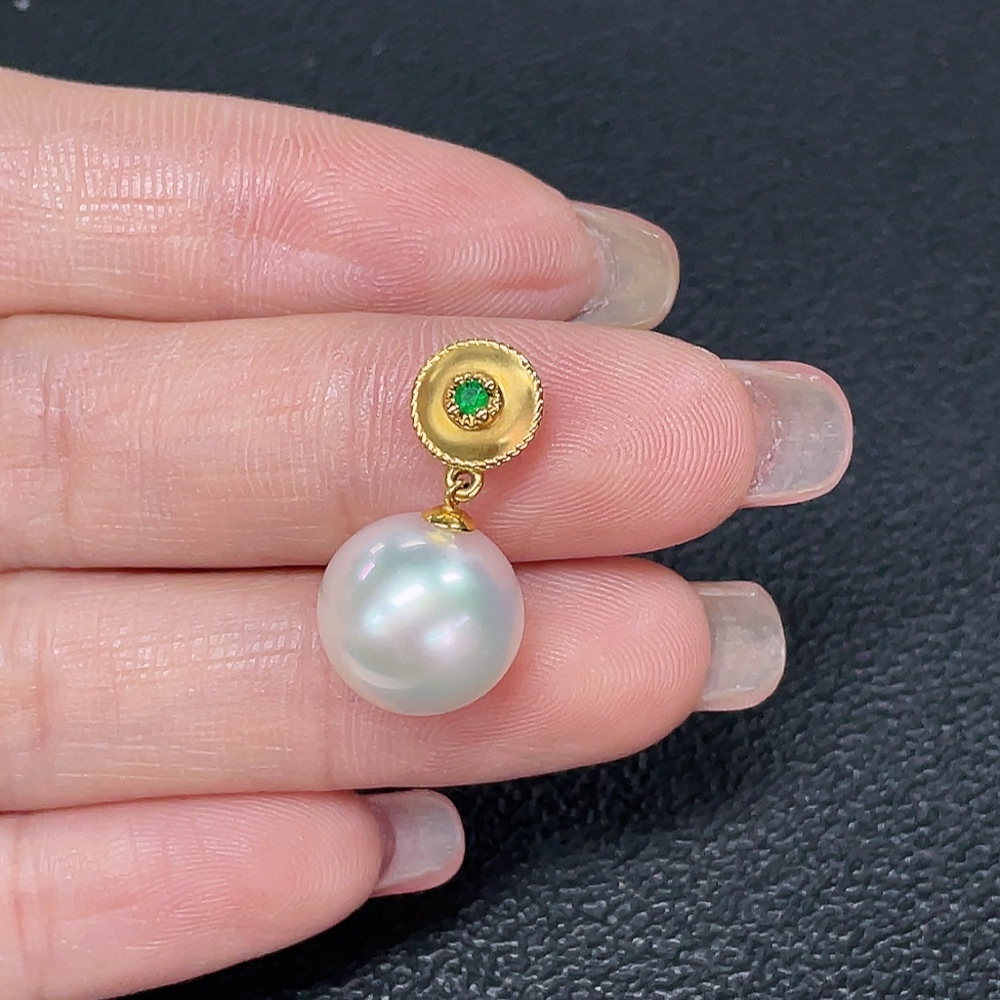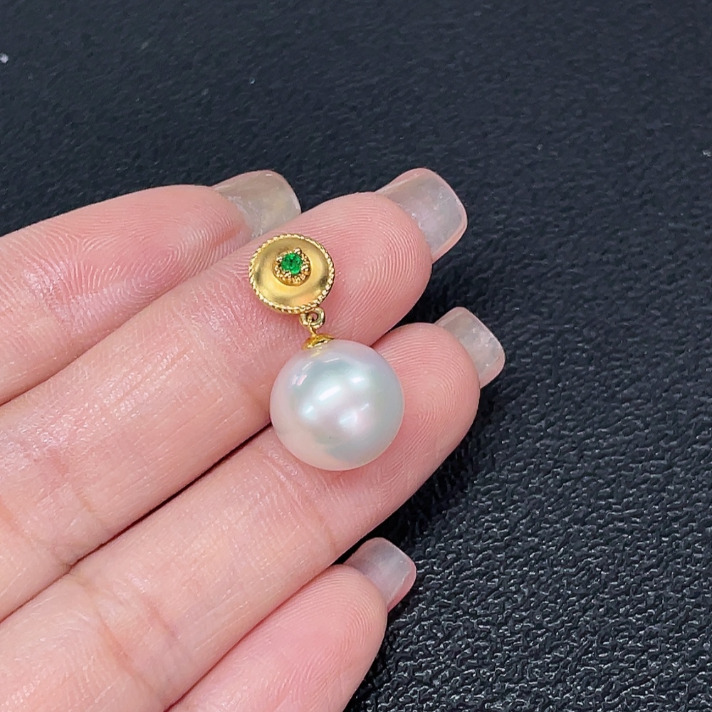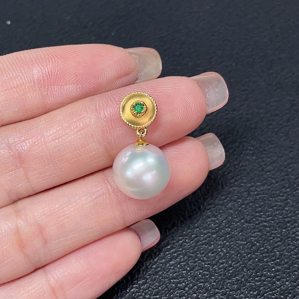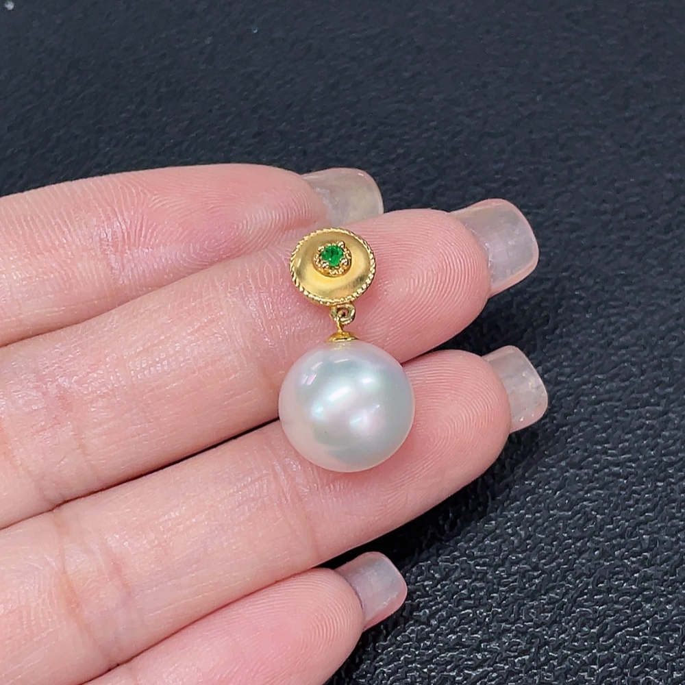 18K Saltwater Pearl Pendant with Non-Natural Accent Stones, Total Weight Approx. 2.67g, Pearl Size Approx. 11.6mm