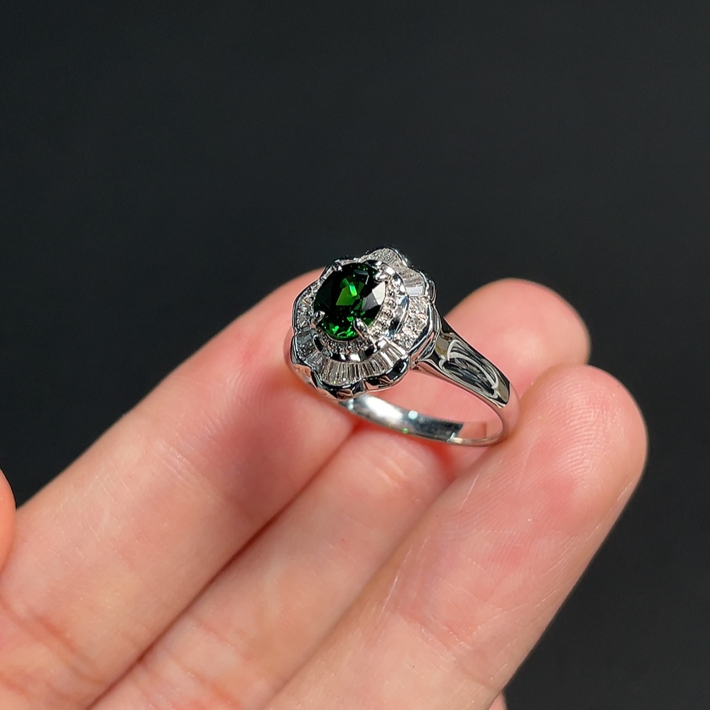 Garnet Ring Pt900 with Diamond, Total Weight Approx. 5.64g, Size 15