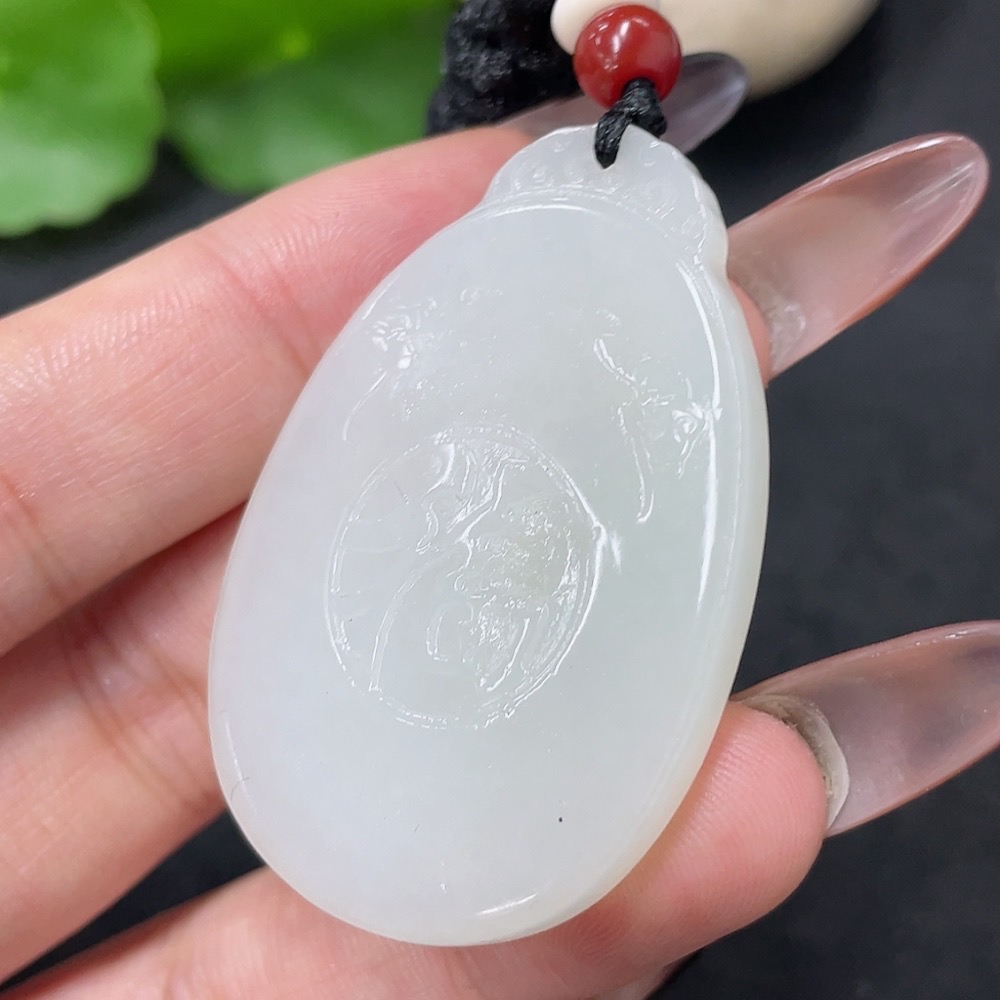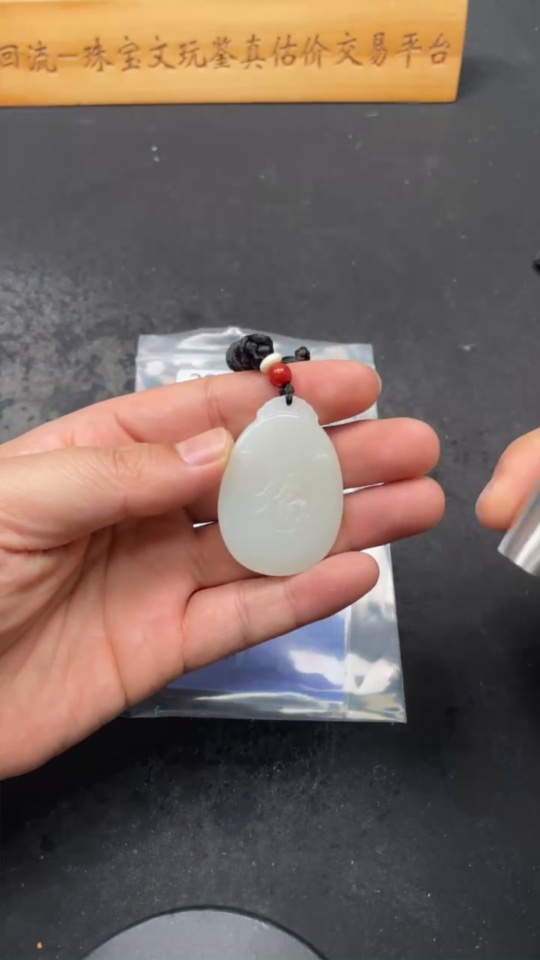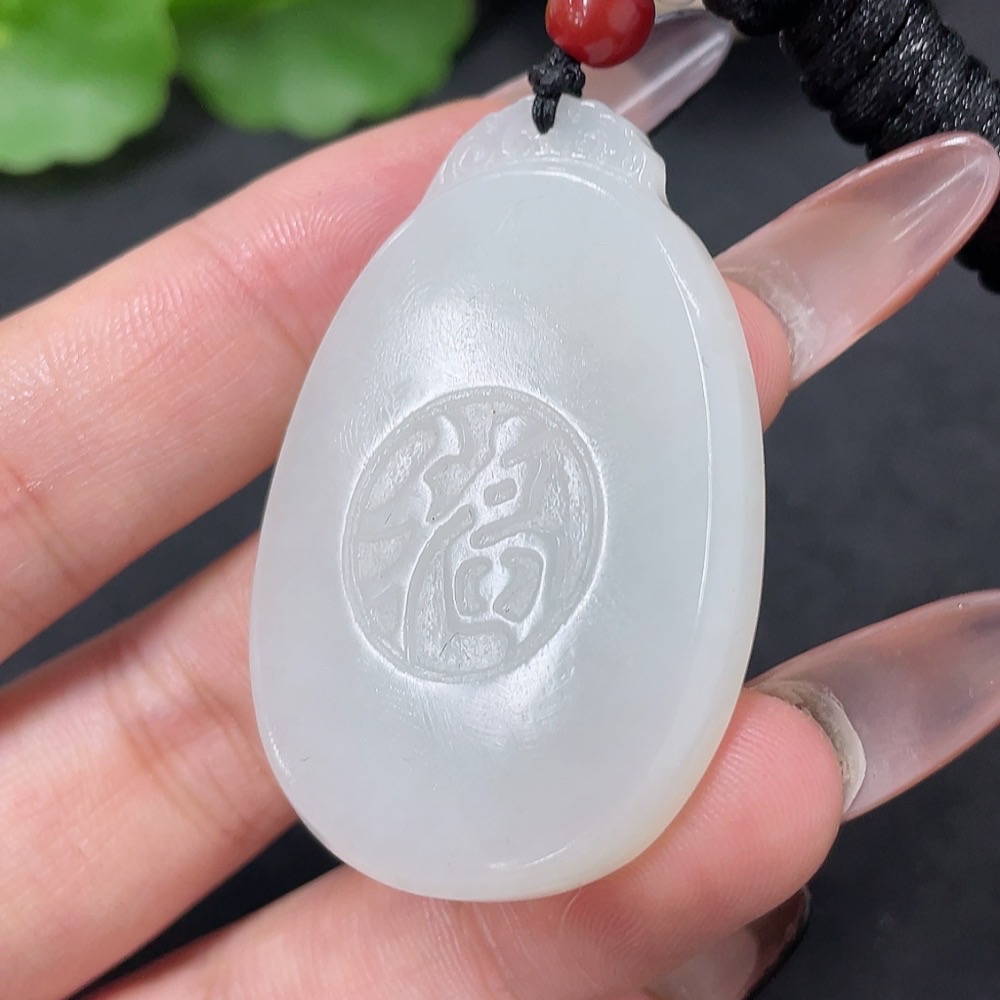 Hetian Jade Pendant Fu Total Weight Approx. (including rope) 19.7g
