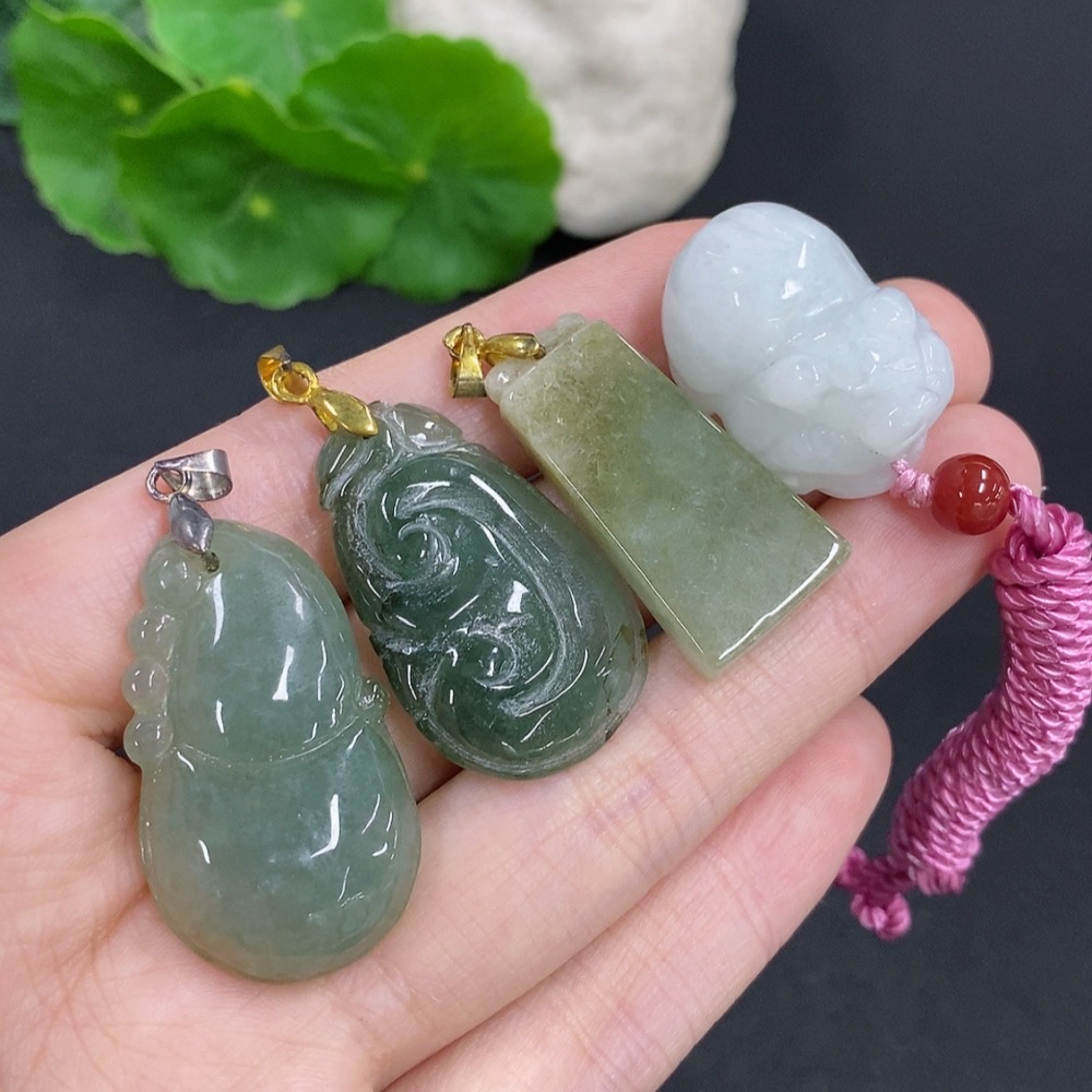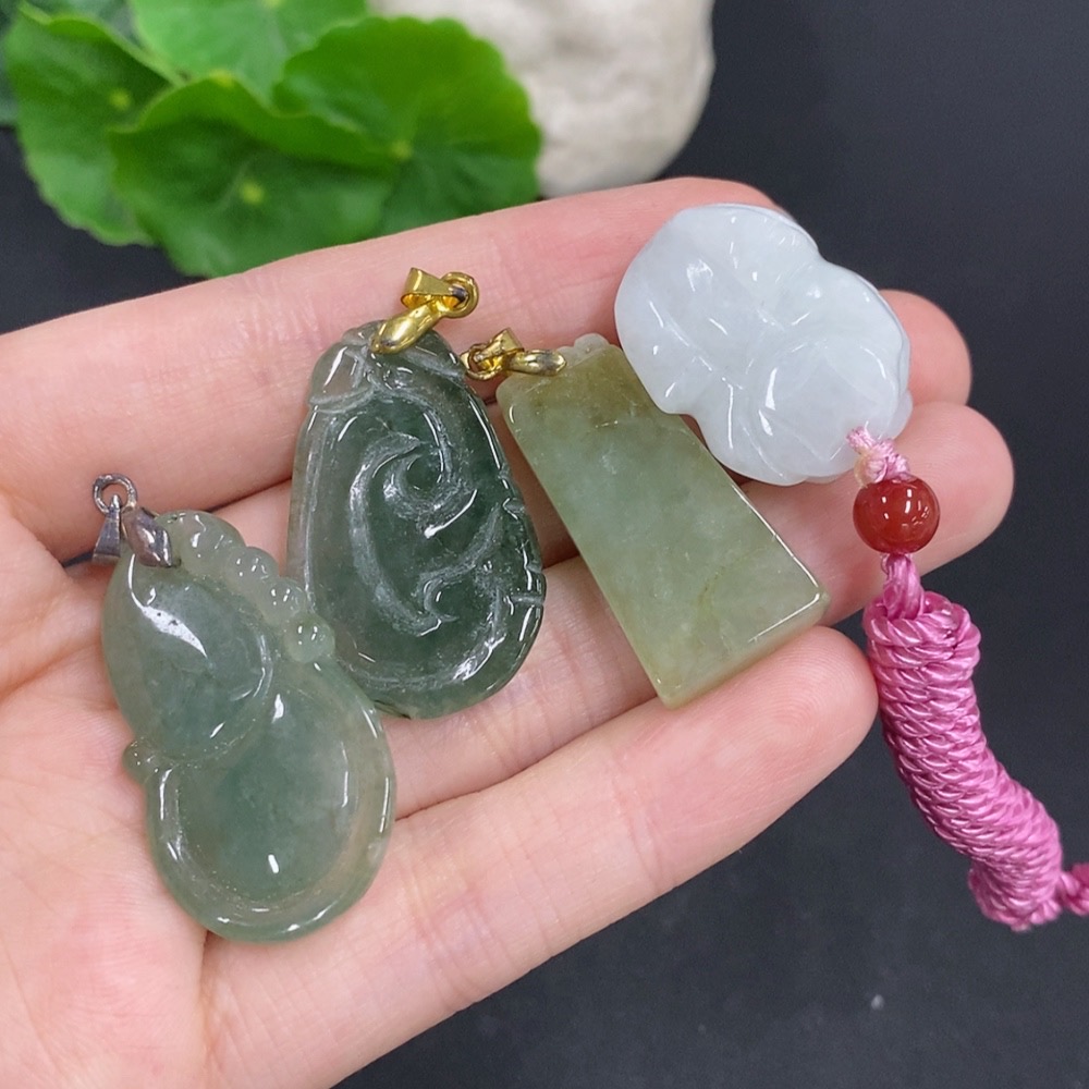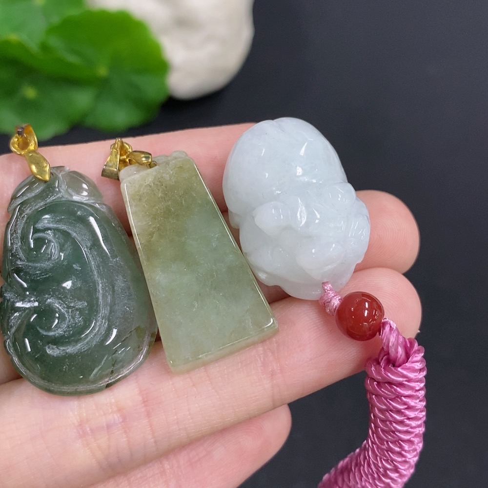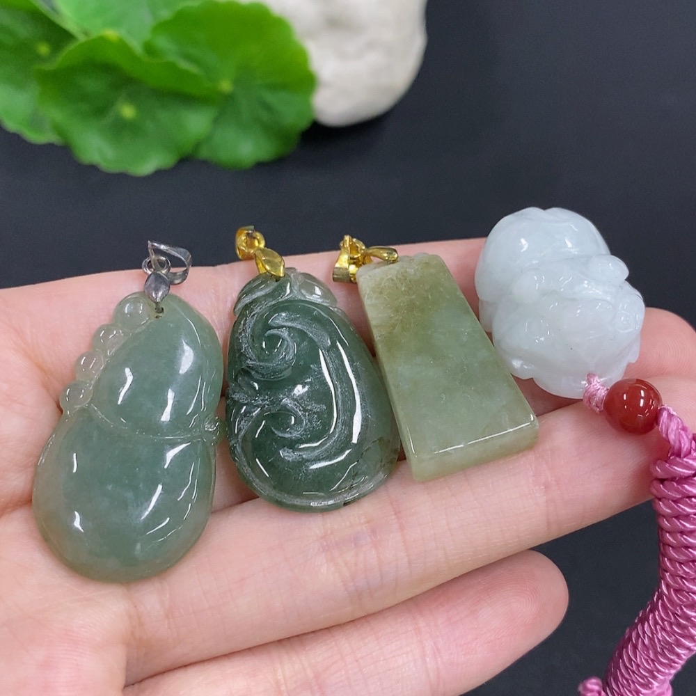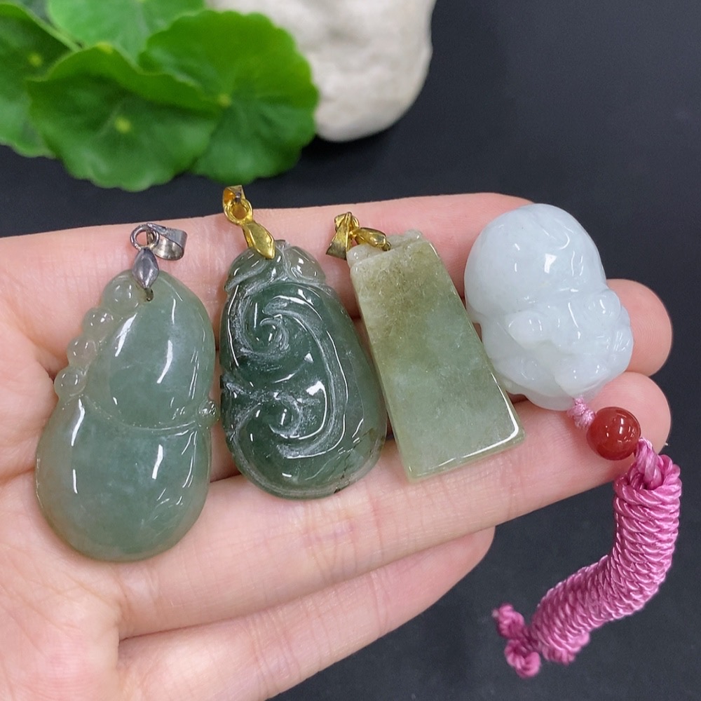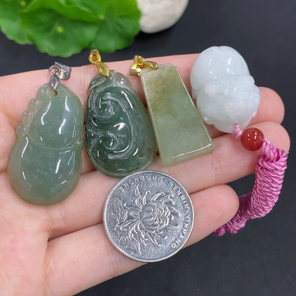 Jadeite Pendants Sell as a Lot Non-Gold Inlaid Beads Non-Jadeite