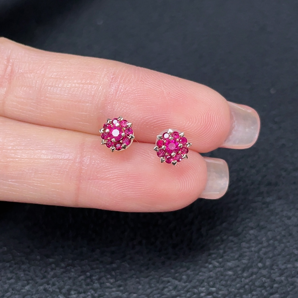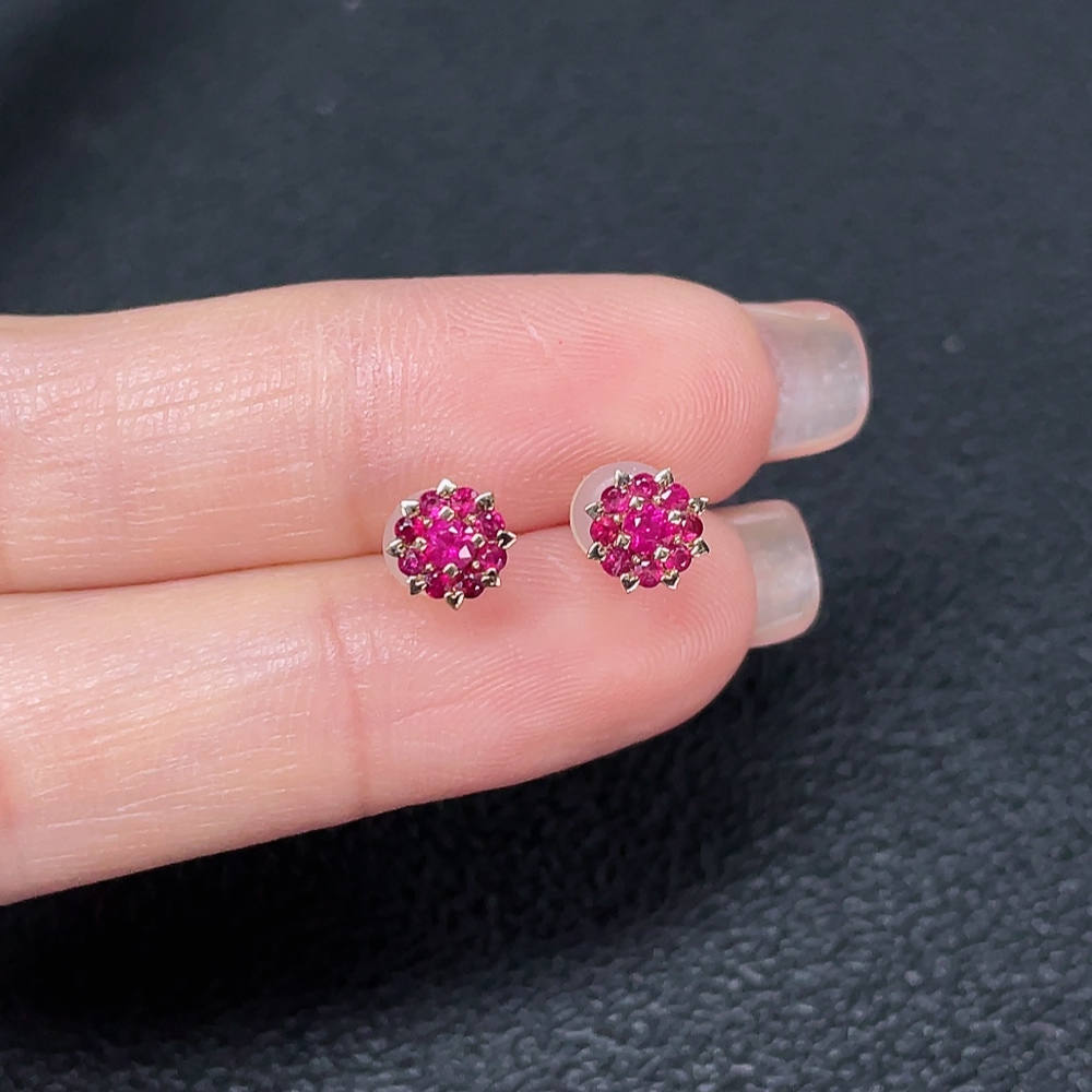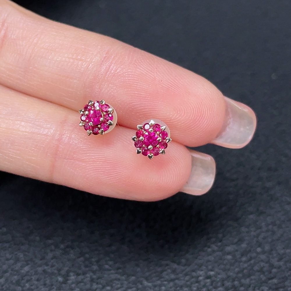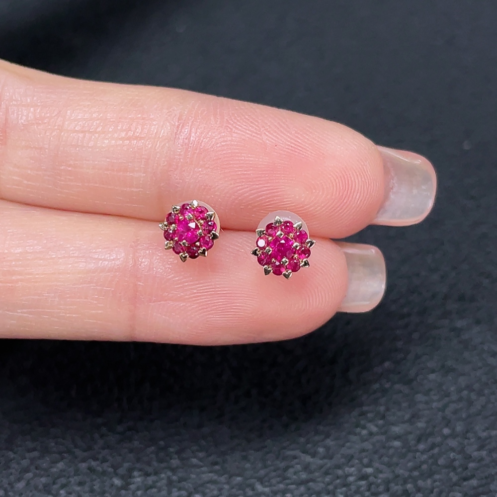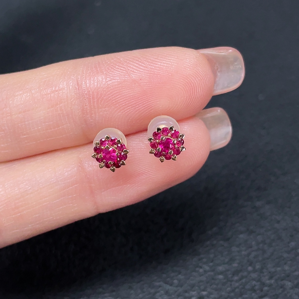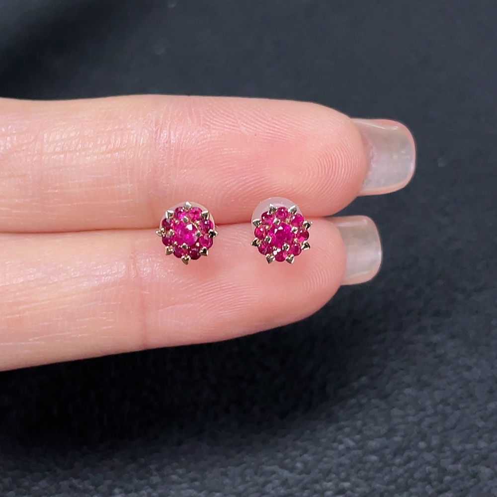 18k Ruby Earrings with Large Center Stone and Non-Natural Accent Stones, Total Weight Approximately 0.88g