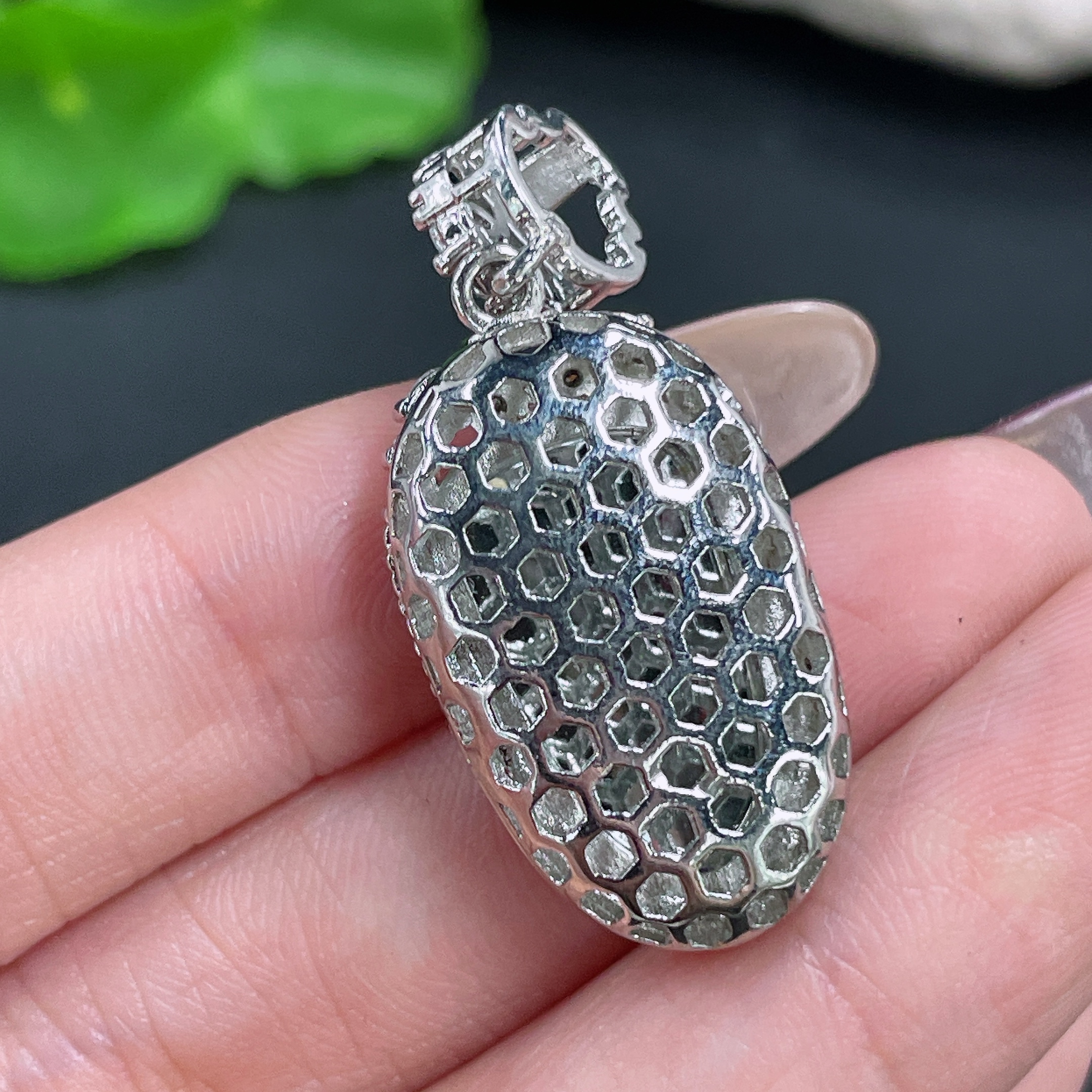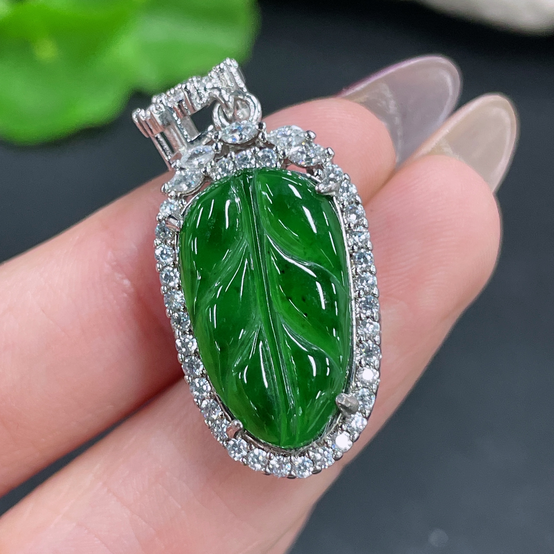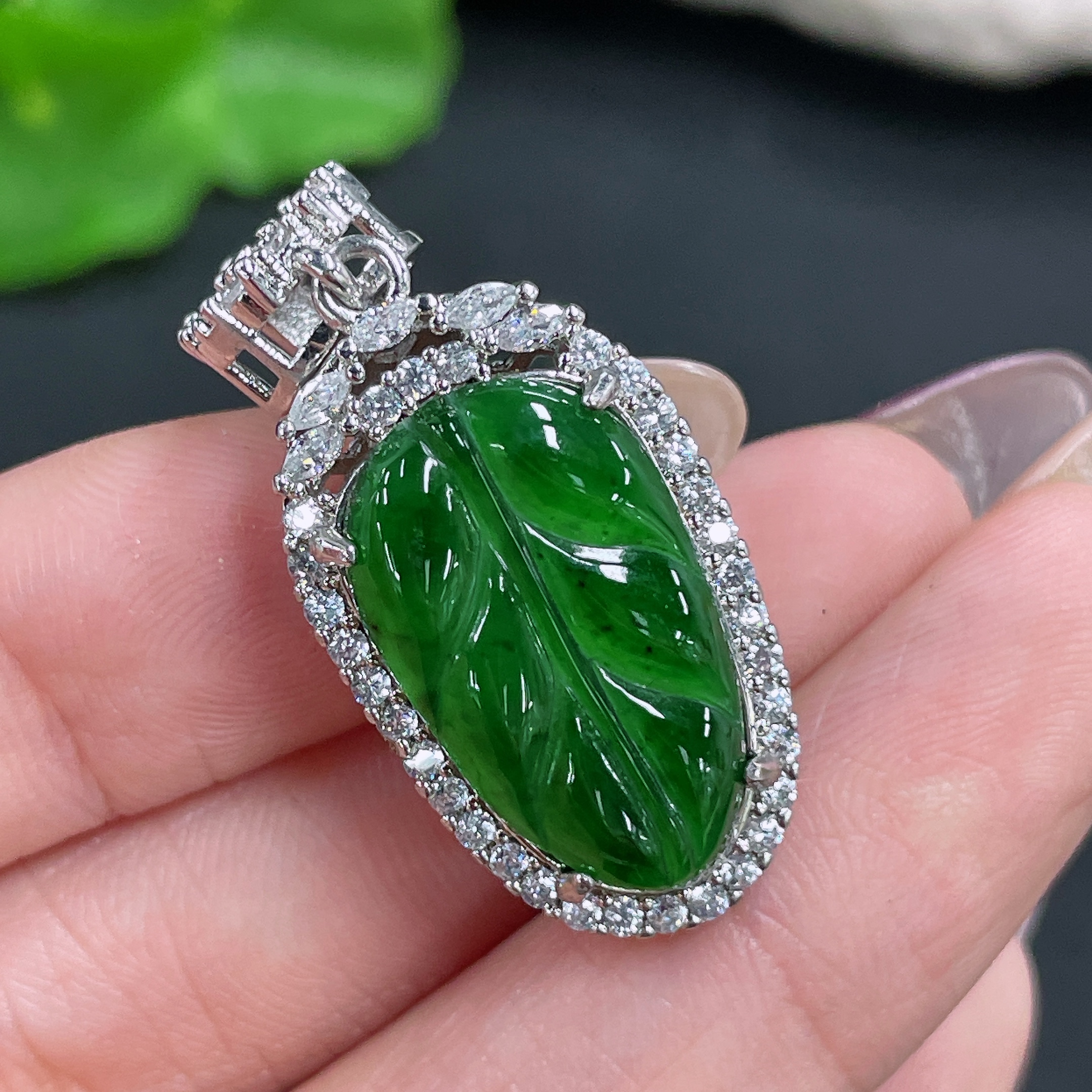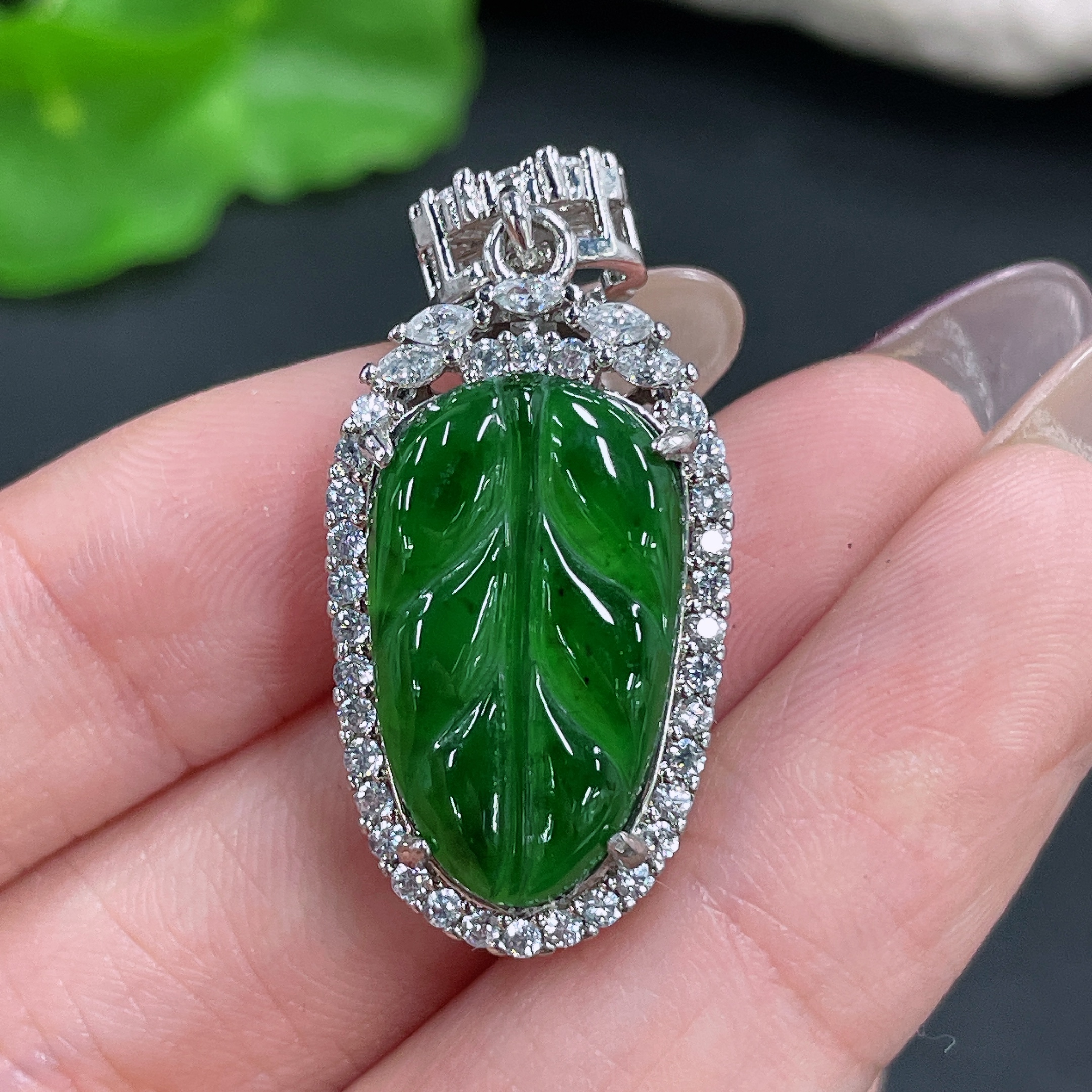 Jadeite Leaf Inlaid Pendant Non-Gold Total Weight Approx. 6g