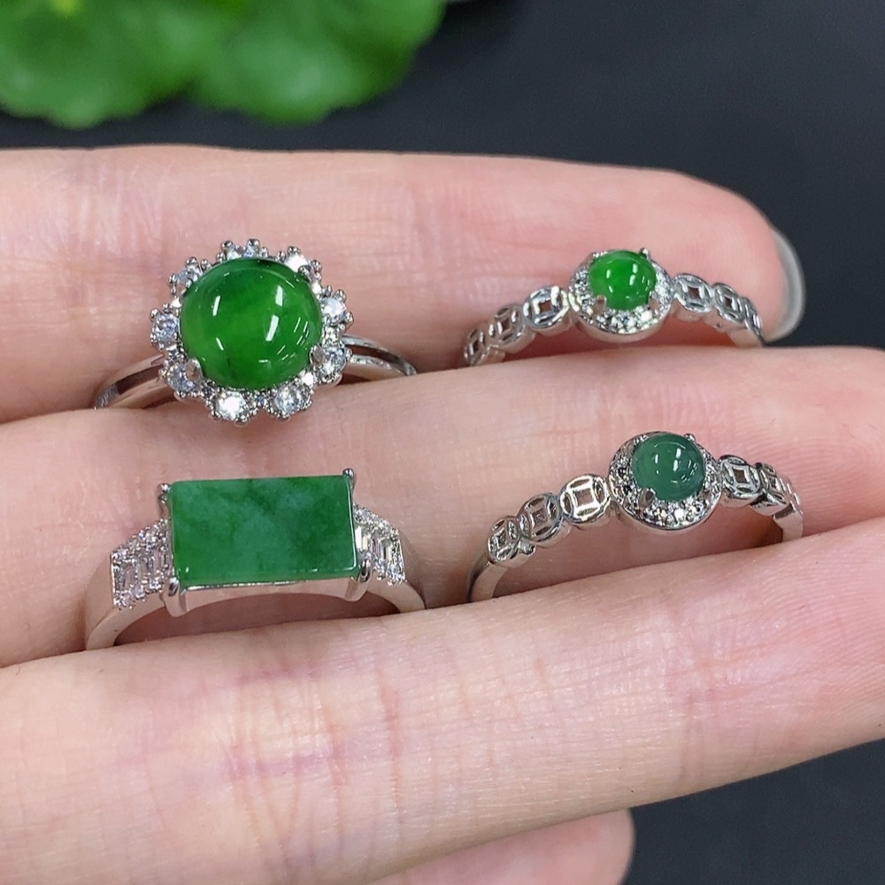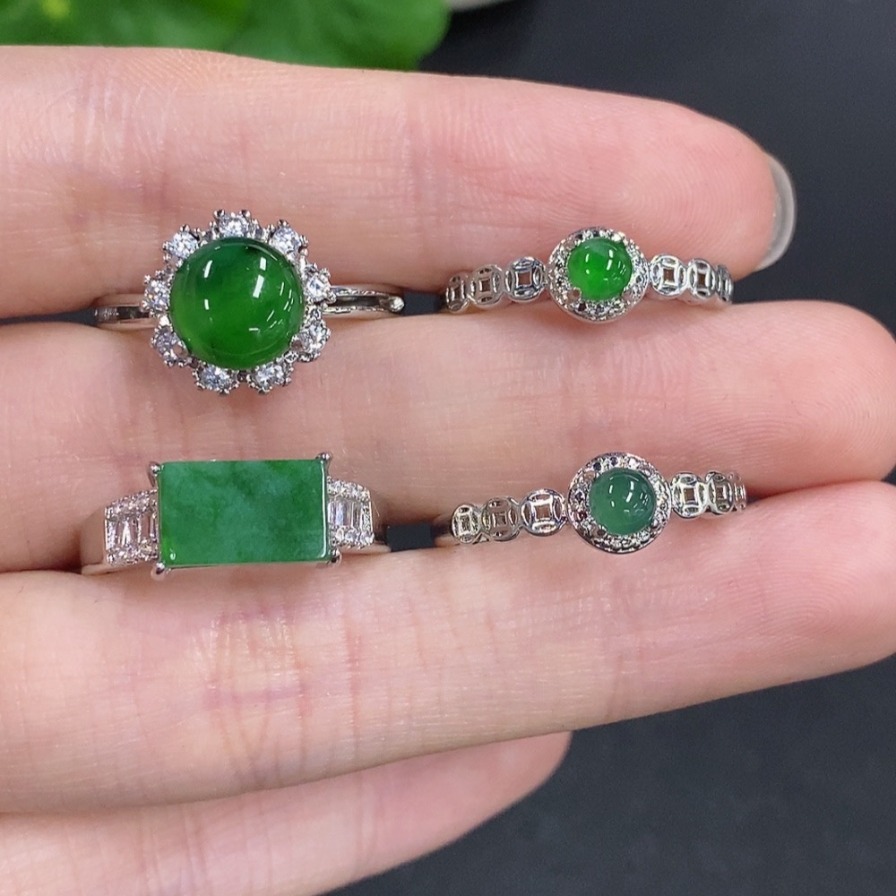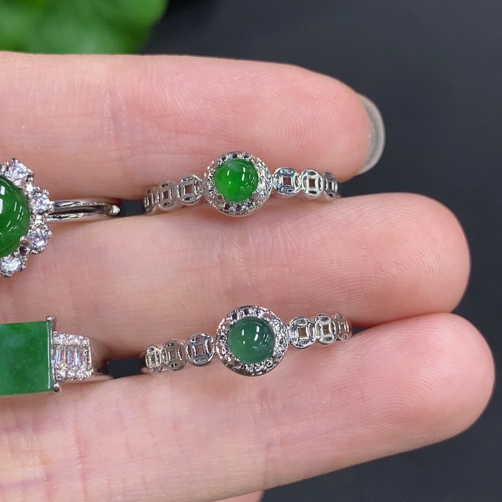 Jadeite Cabochon Ring Sell as a Lot Non-Gold Setting Adjustable Size