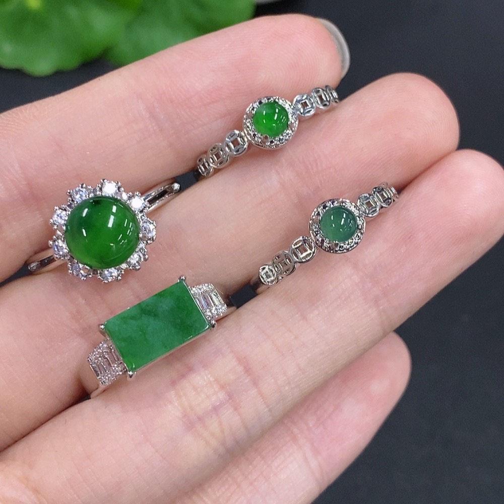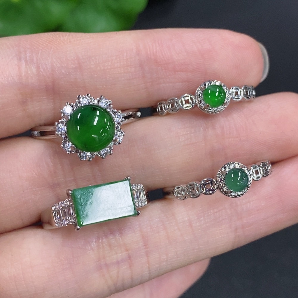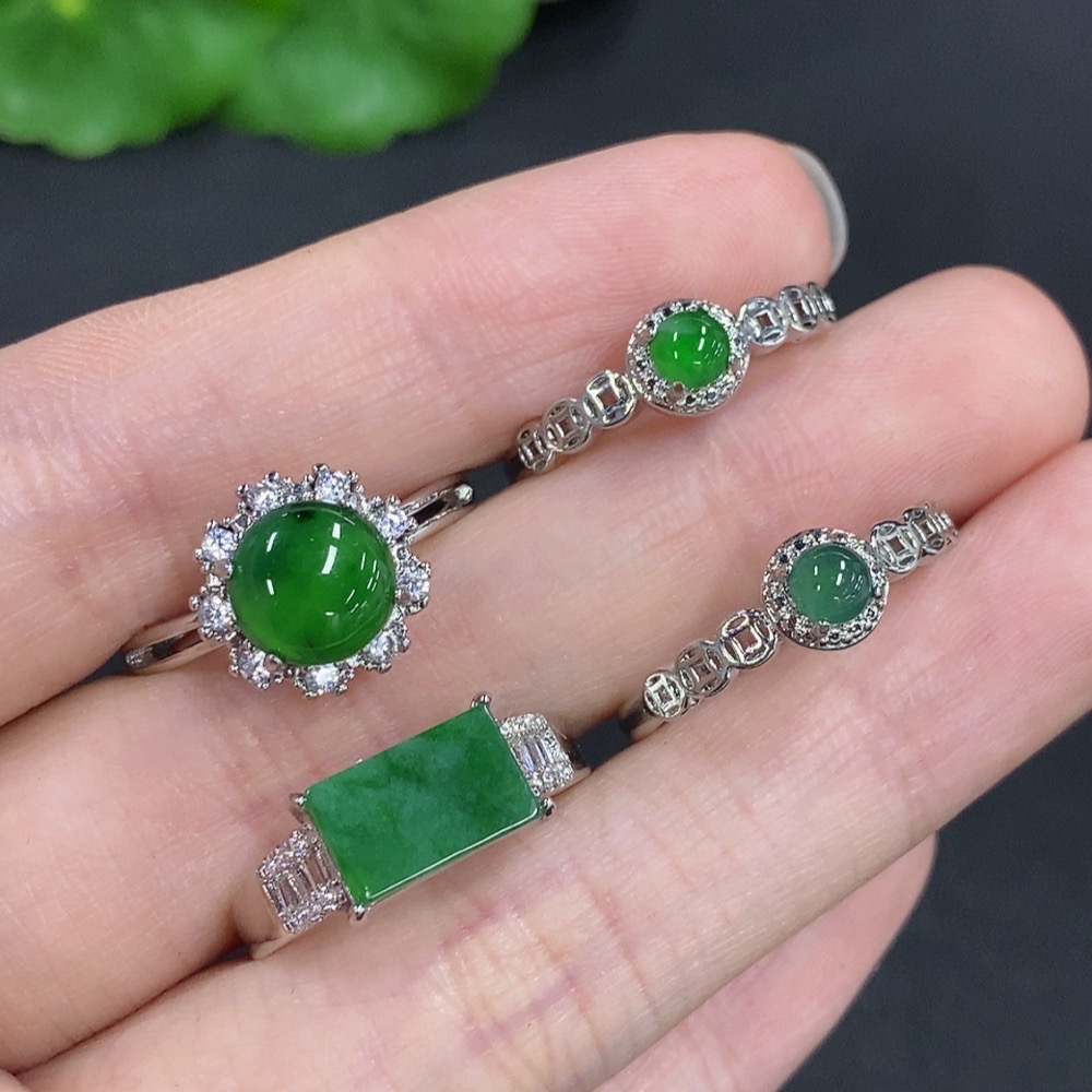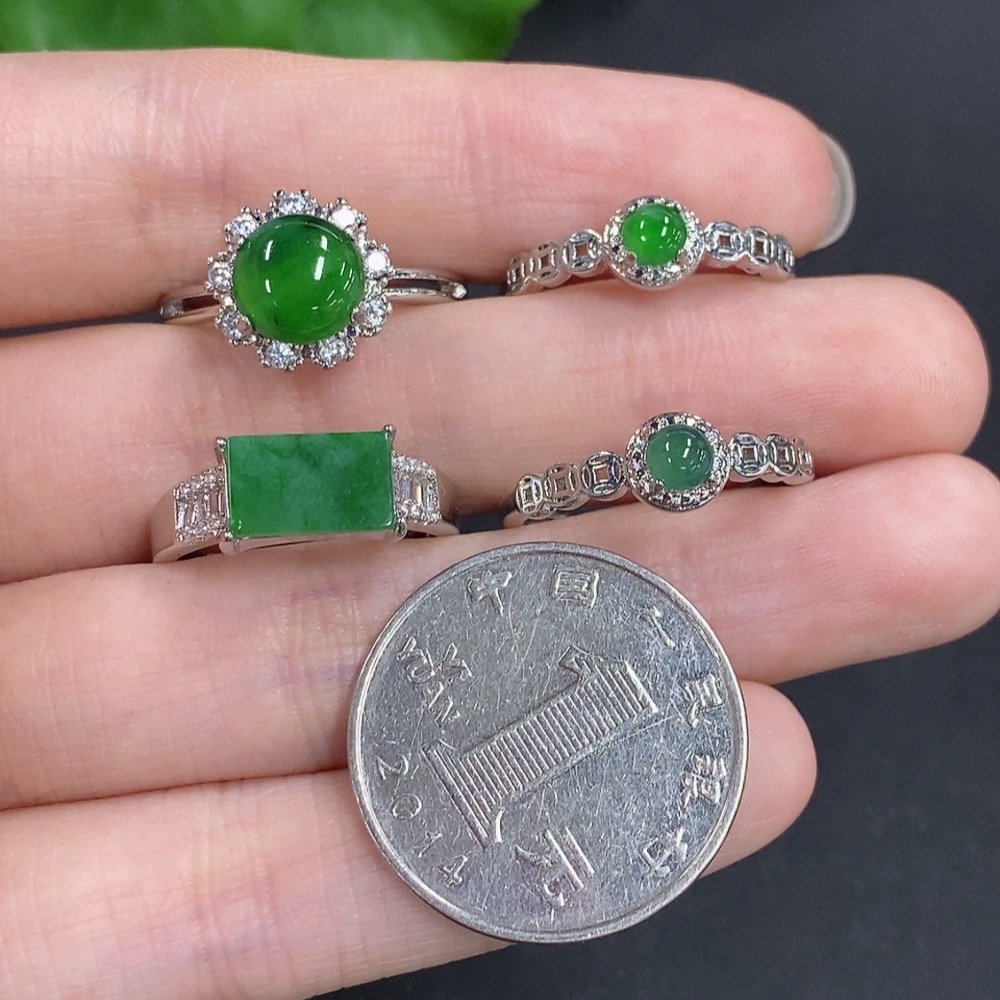 Jadeite Cabochon Ring Sell as a Lot Non-Gold Setting Adjustable Size