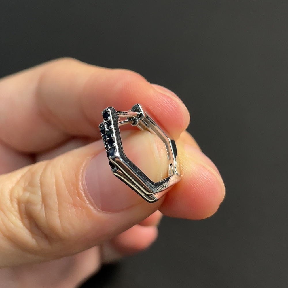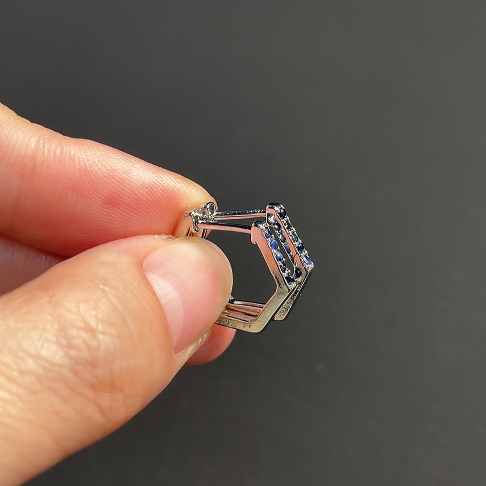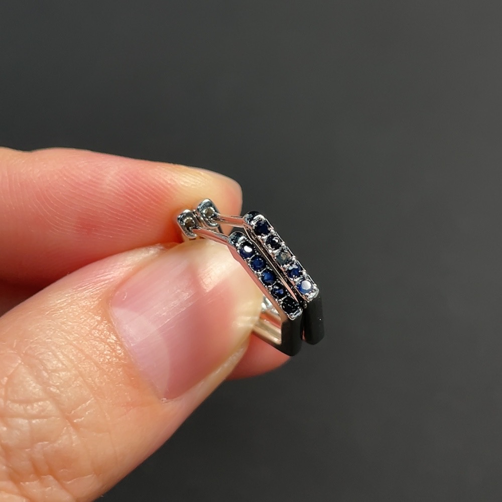 Sapphire Inlaid Earrings Non-Gold Inlaid Total Weight Approx. 1.88g