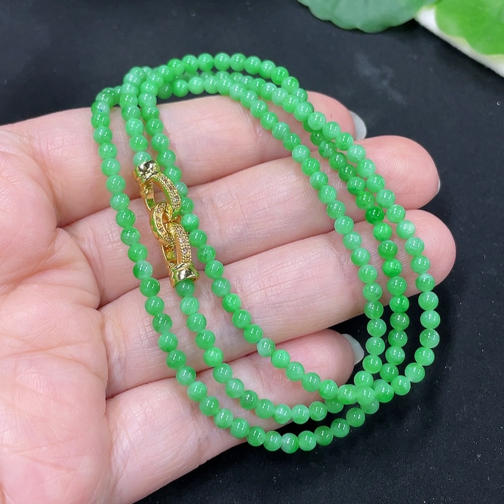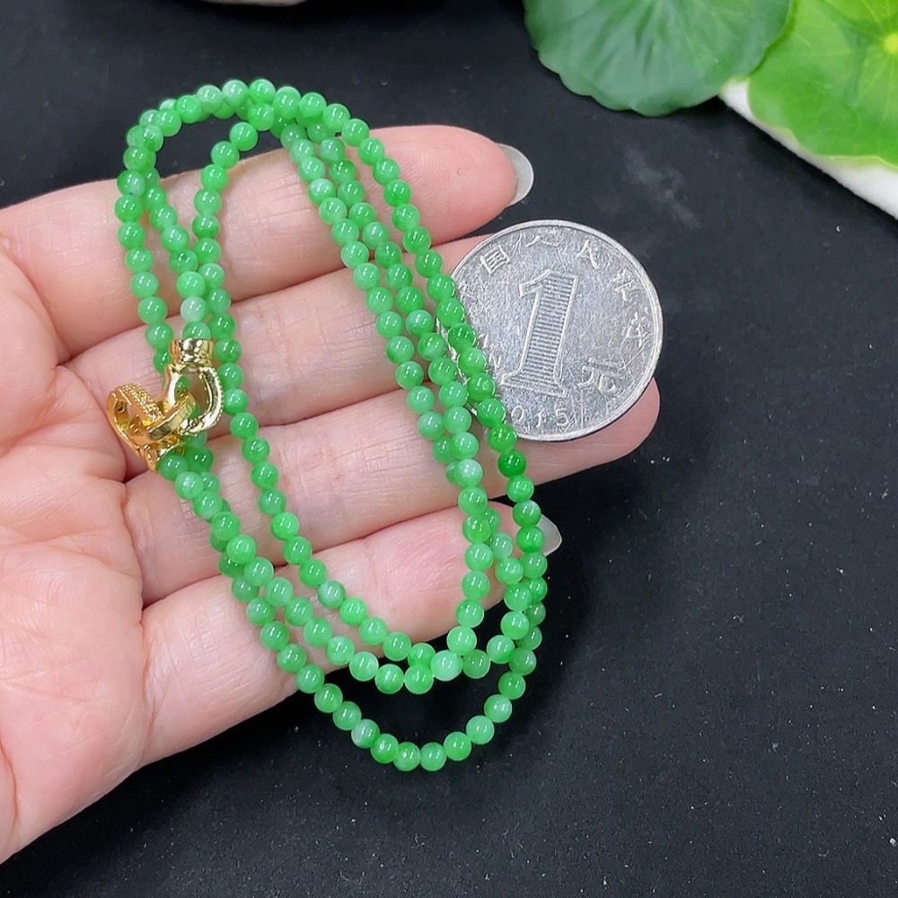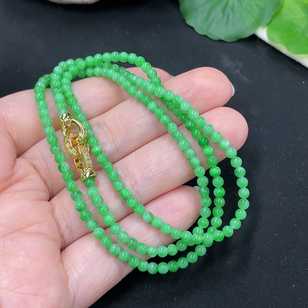 Jadeite Bead Necklace approx. 3mm Total Weight approx. 9.8g (Non-Gold Inlaid)