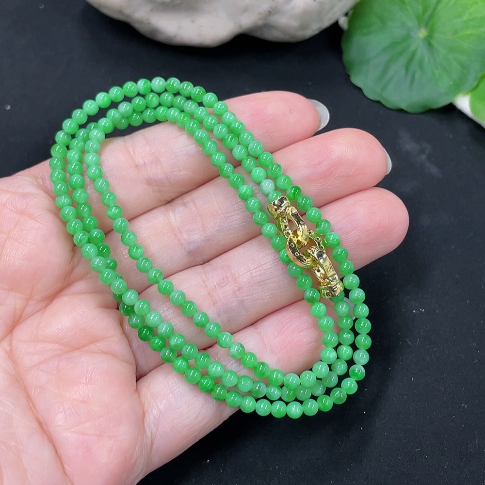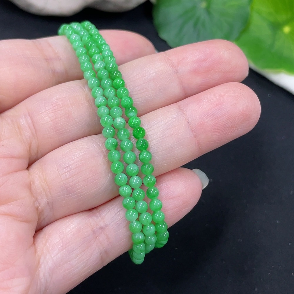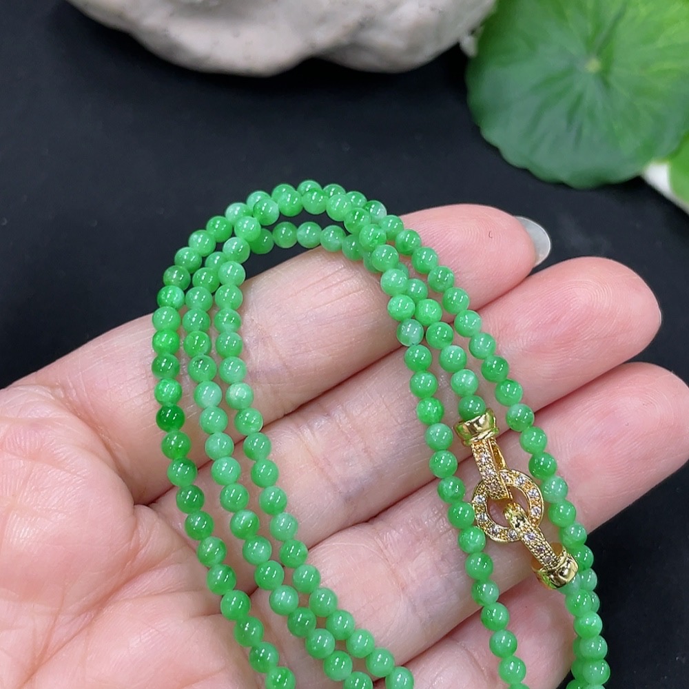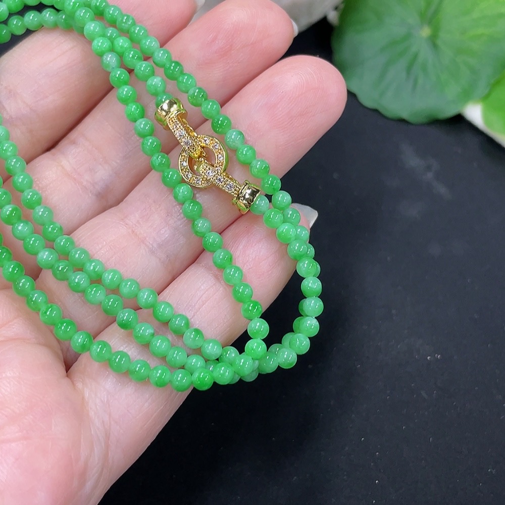 Jadeite Bead Necklace approx. 3mm Total Weight approx. 9.8g (Non-Gold Inlaid)