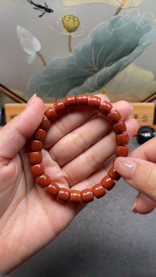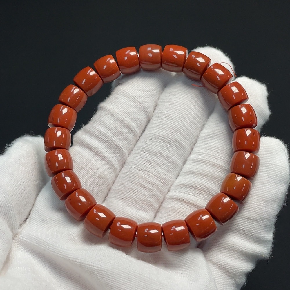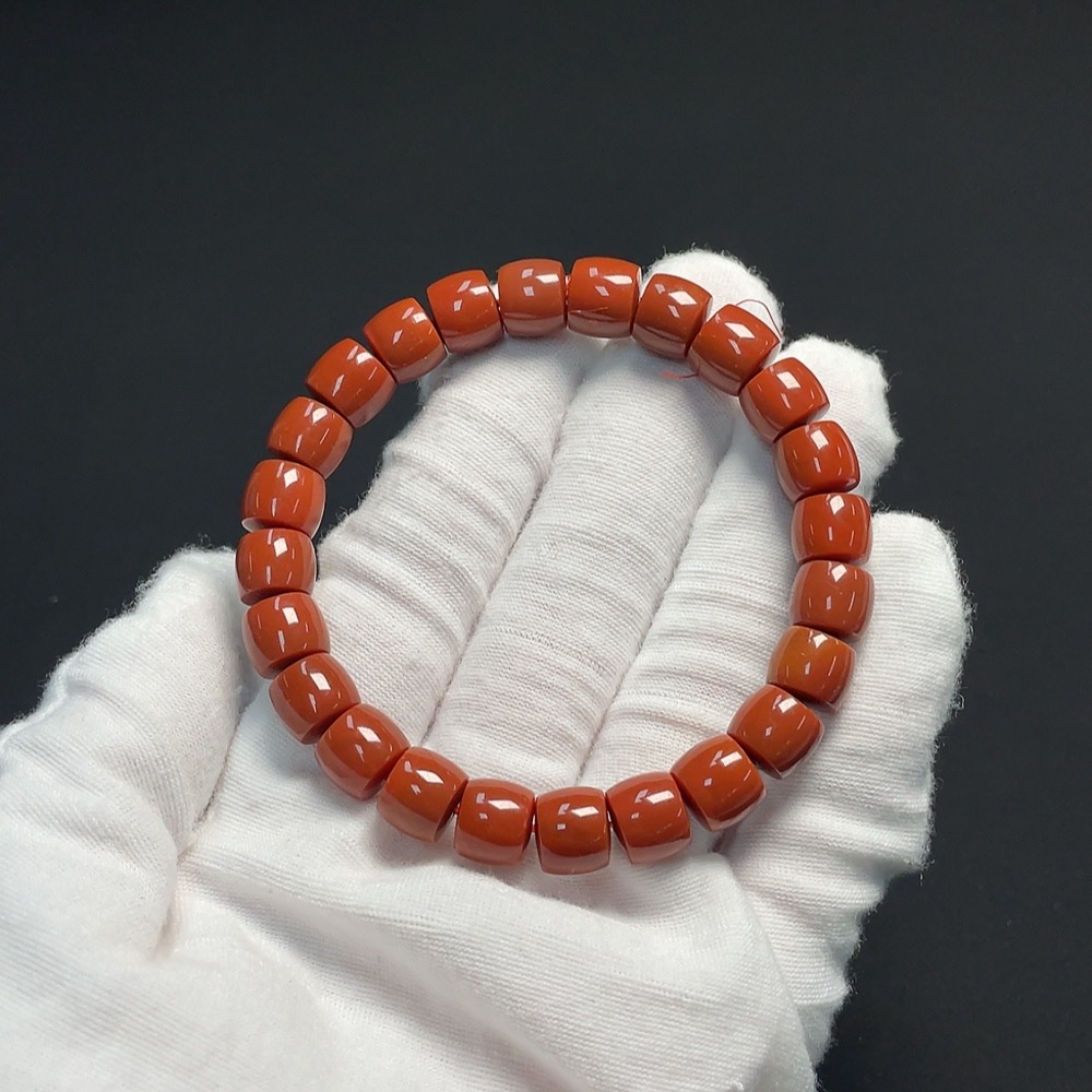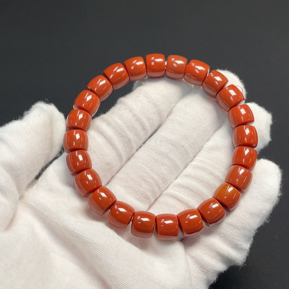 Red Agate Bracelet, approximately 9mm, total weight about 28.06g, organic inclusions visible