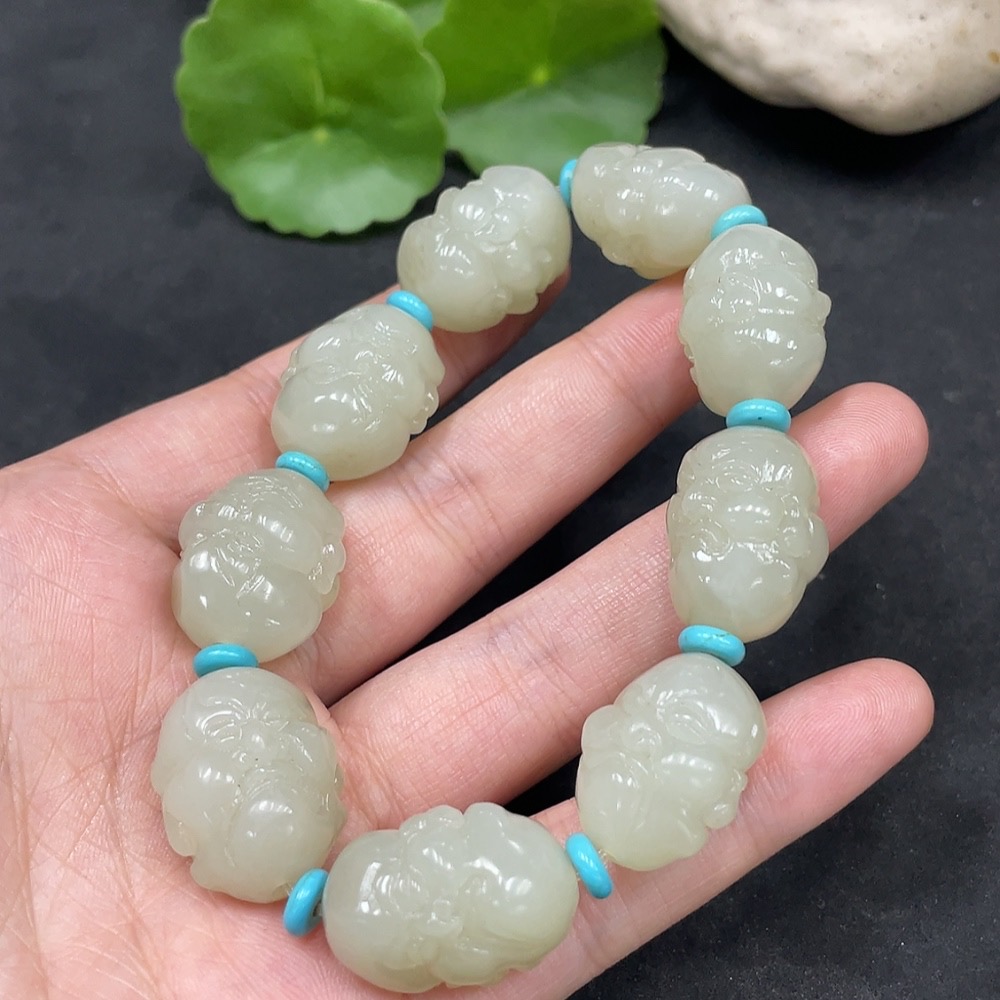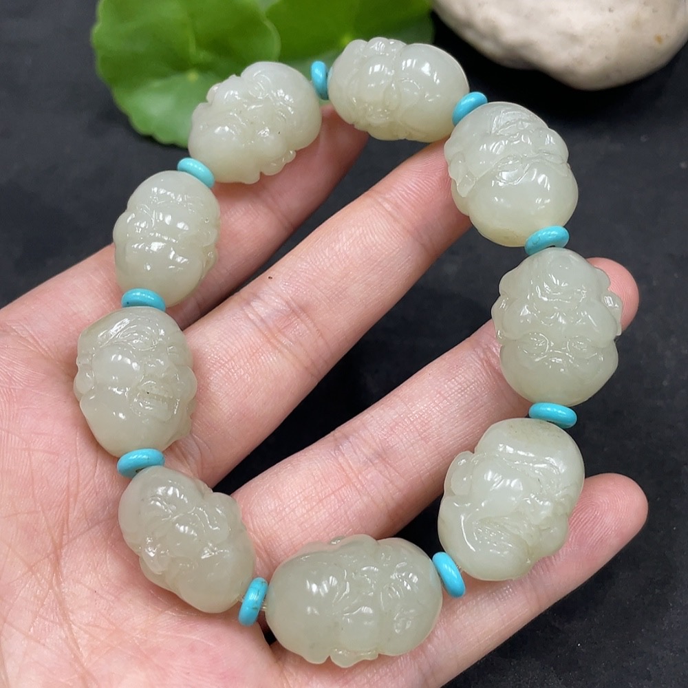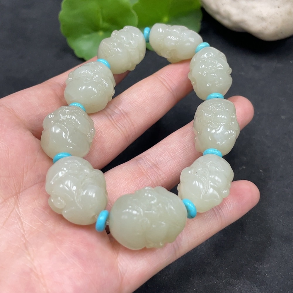 Hetian Jade Bracelet with Non-Hetian Jade Beads, Total Weight Approx. 74.5g