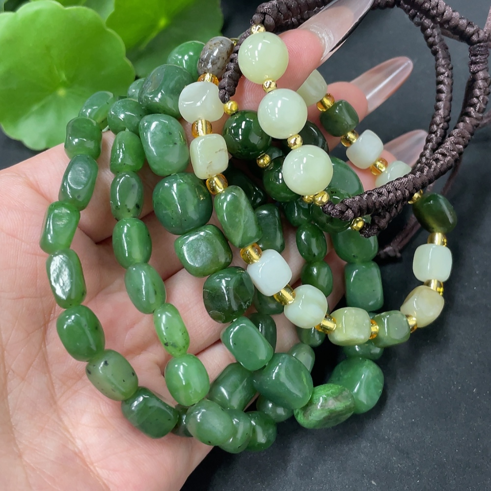 Hetian Jade Bracelet Hand String Total Weight Approx. 91.1g Beads Not Hetian Jade