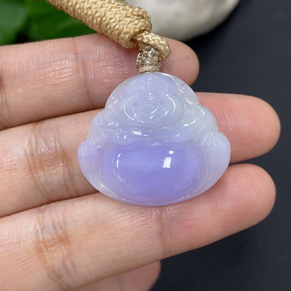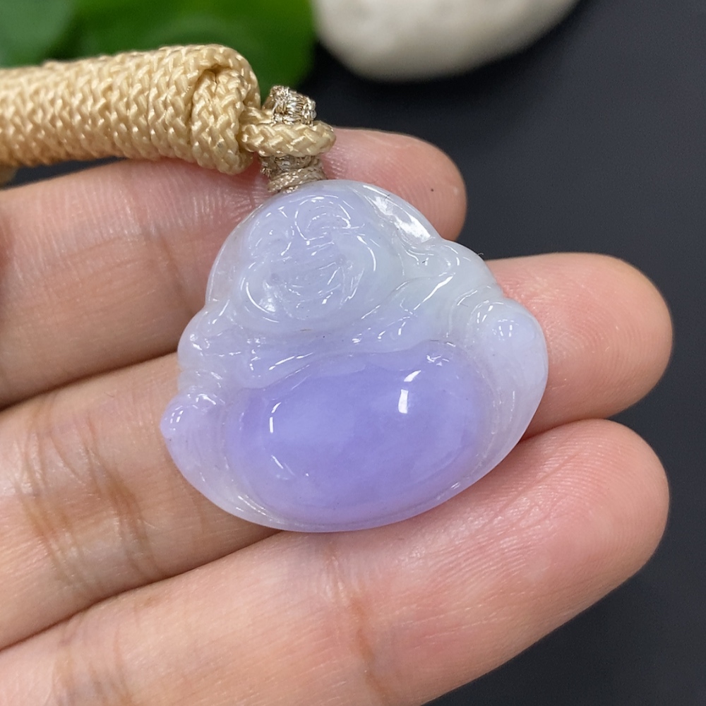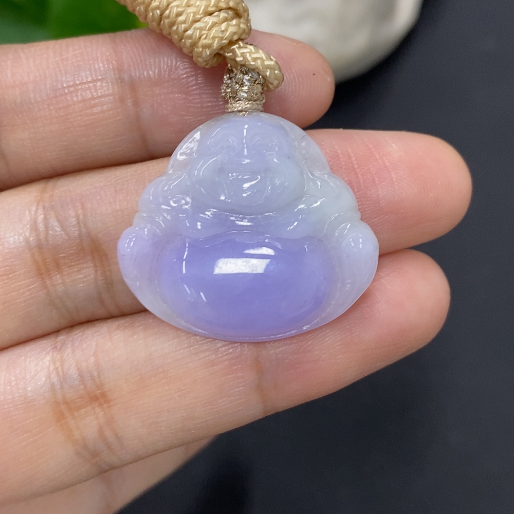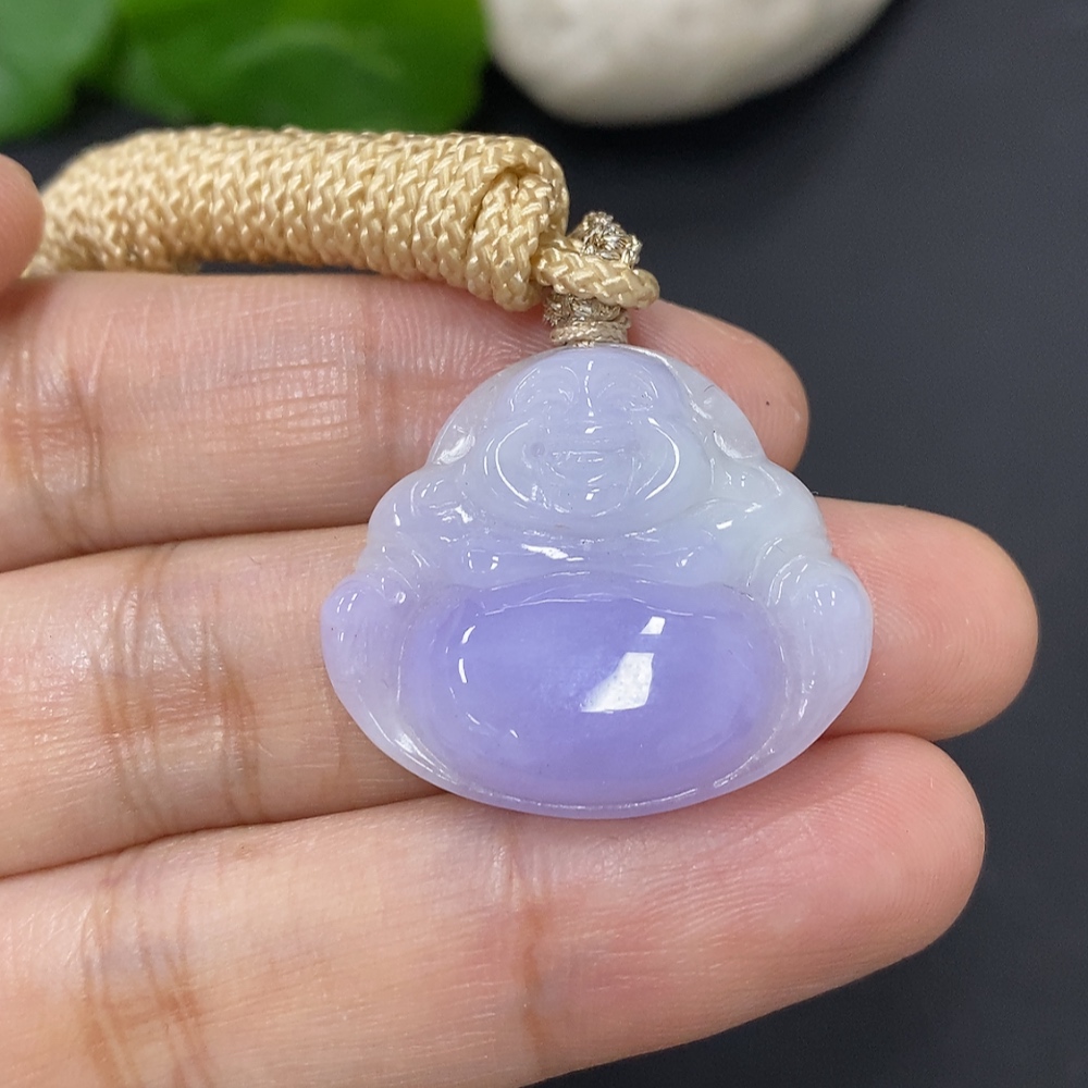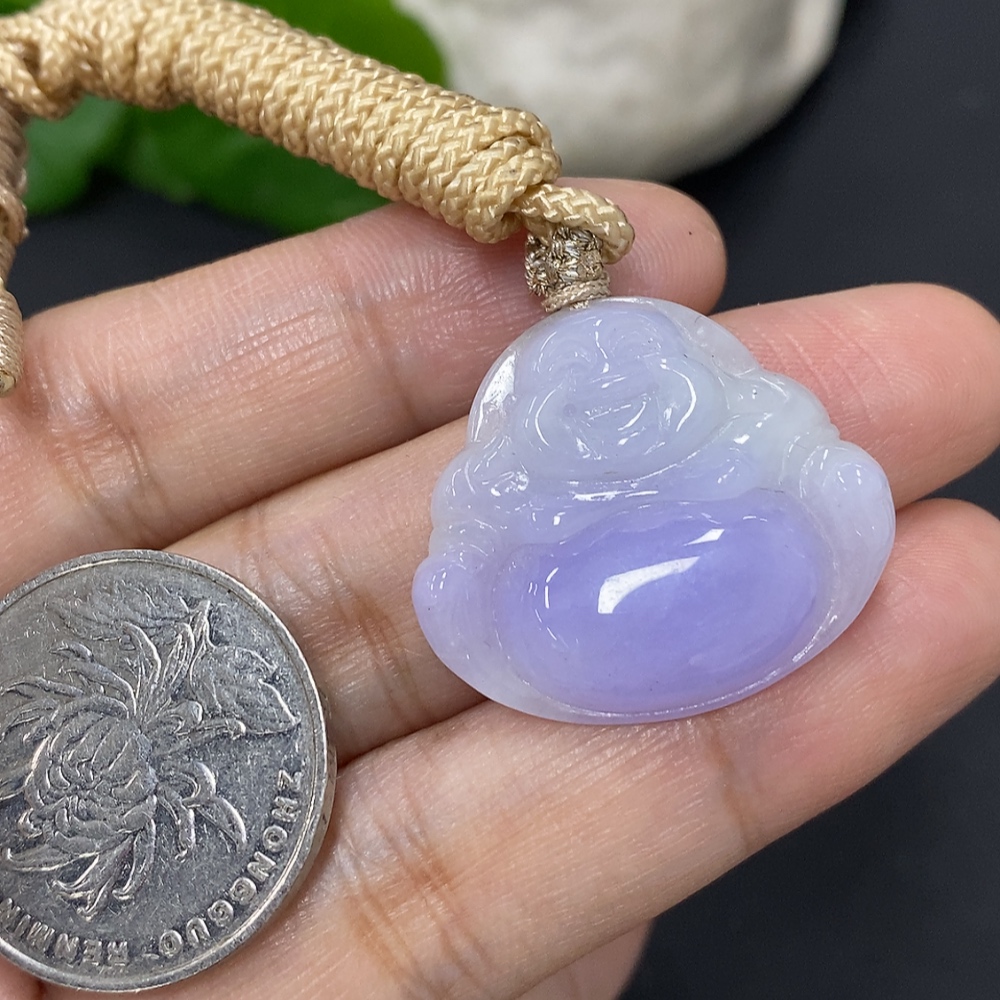 Jadeite Buddha Pendant, Total Weight with Rope Approximately 7g