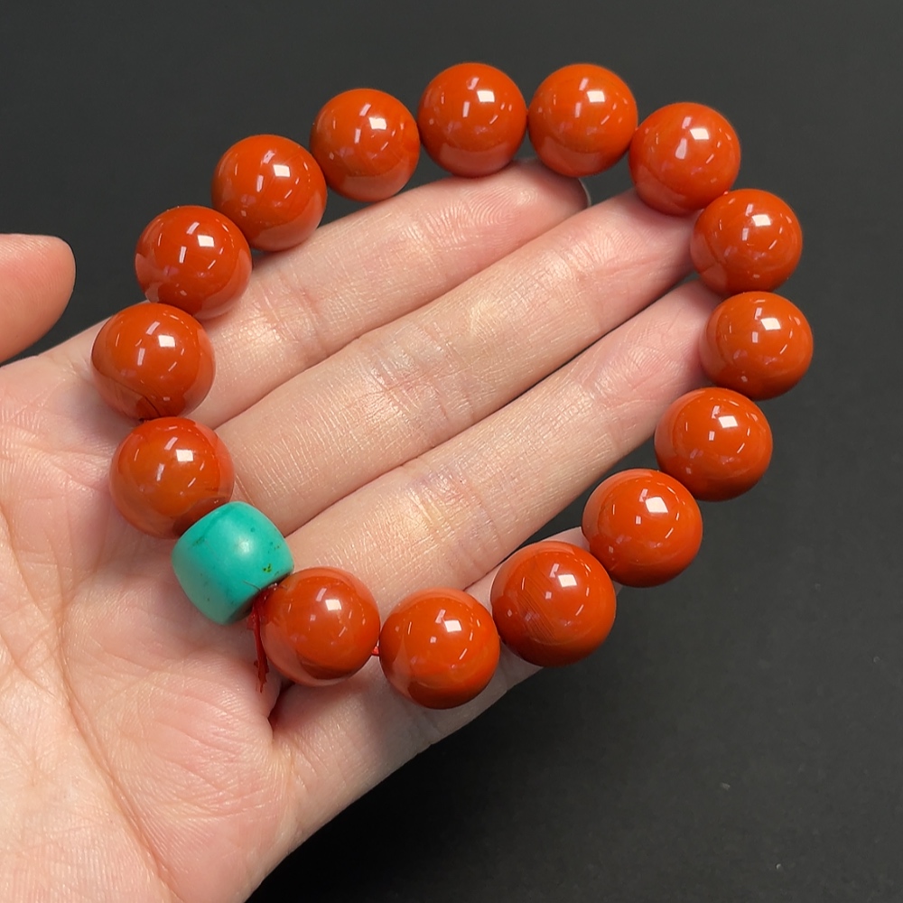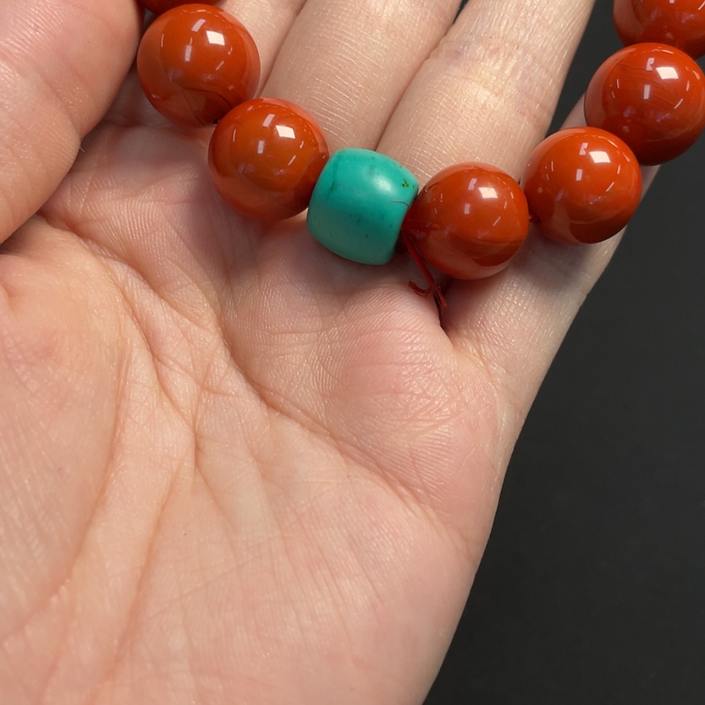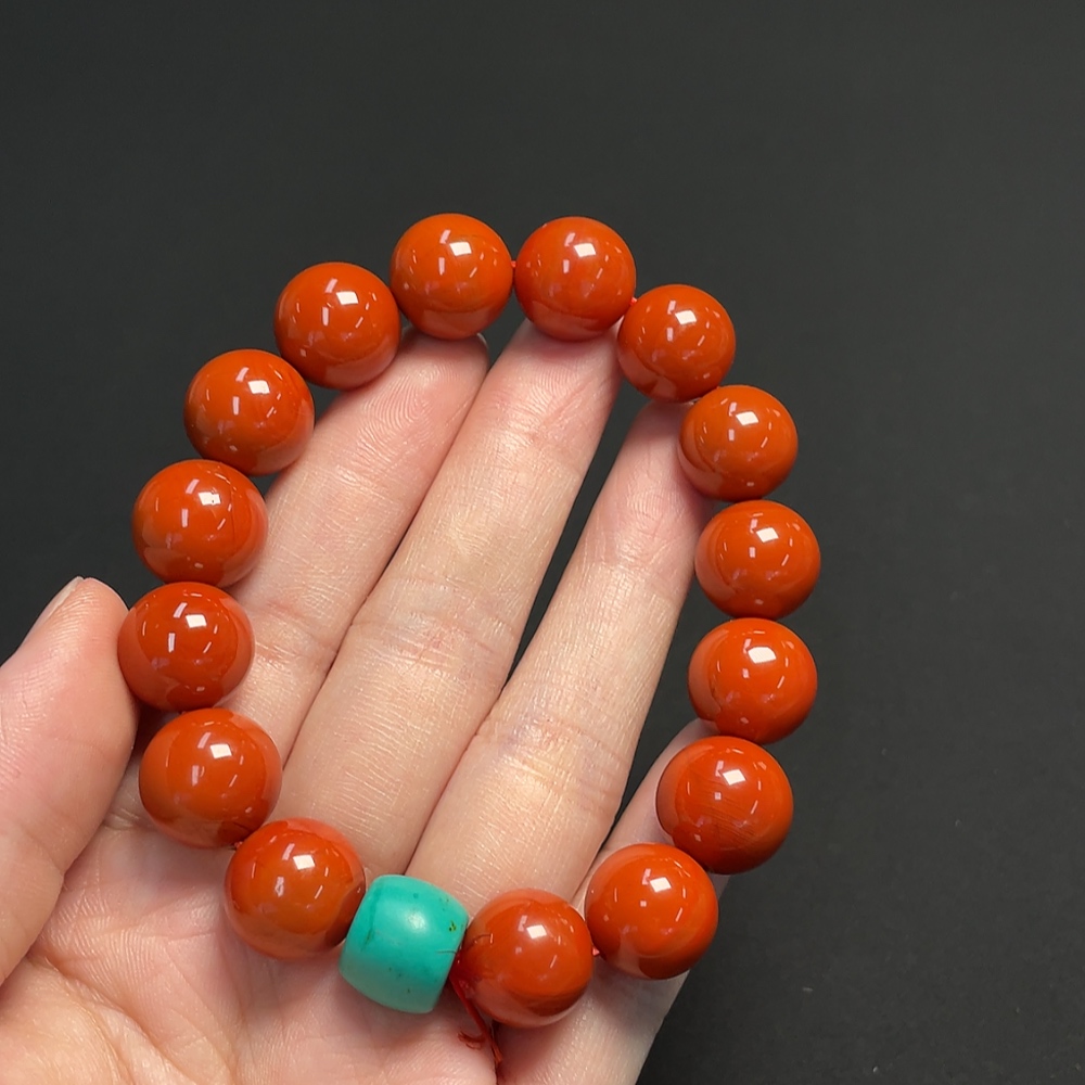 Red Agate Bracelet with Visible Organic Matter, Possible Non-Natural Accent Stones, Total Weight Approx. 53.26g, Size About 12.7mm