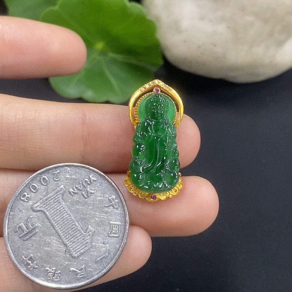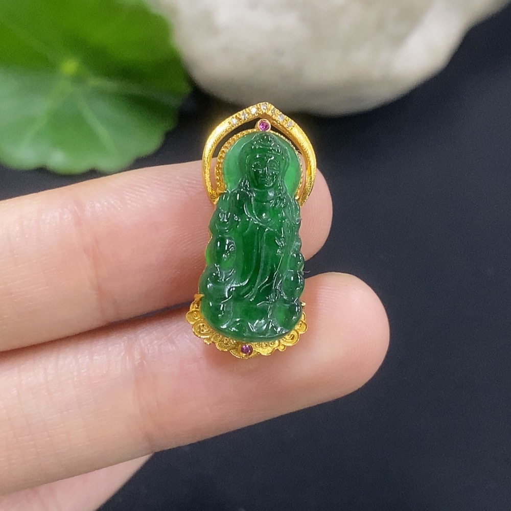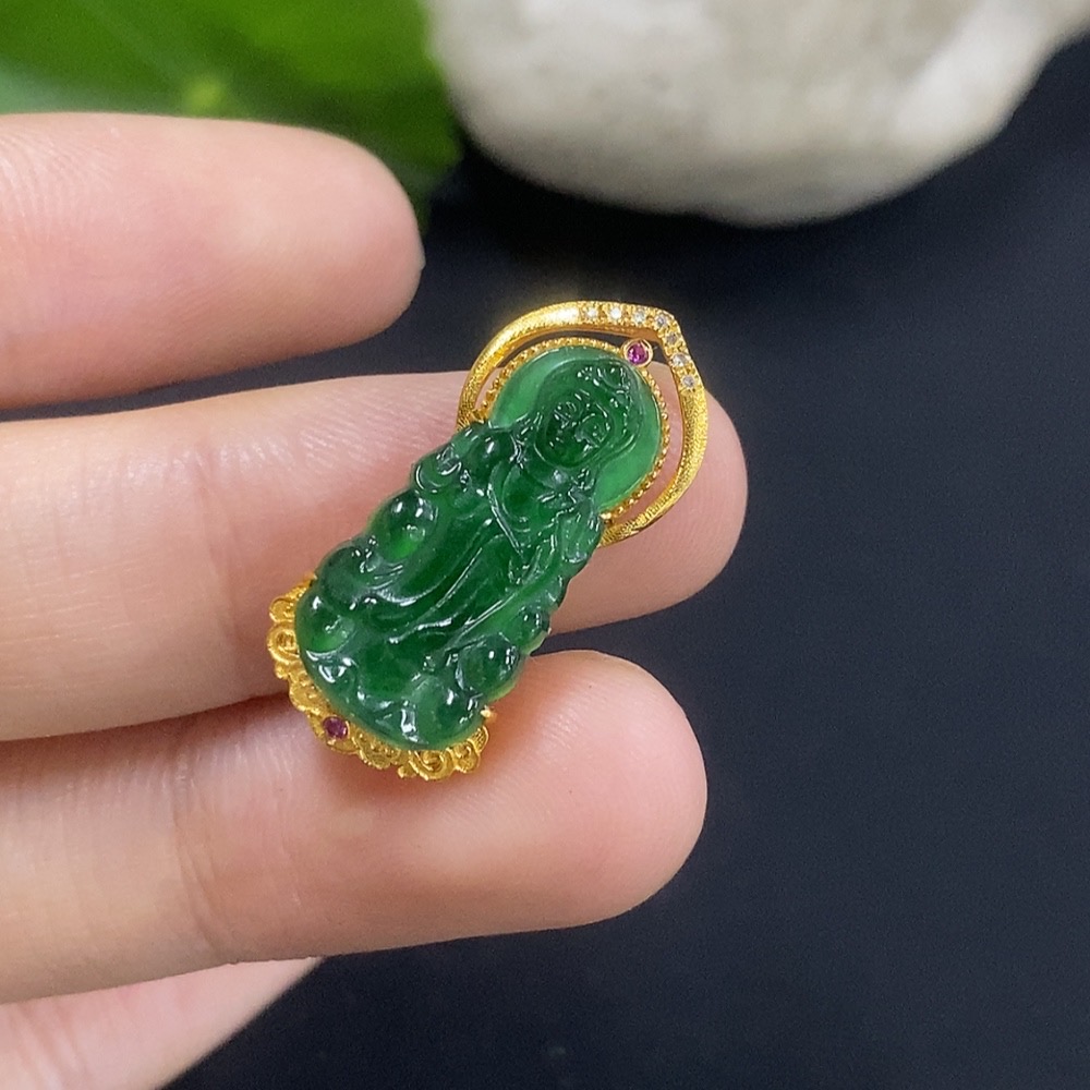 Jadeite Guanyin inlay pendant 18K gold non-diamond (with glue at the bottom) total weight about 1.88g