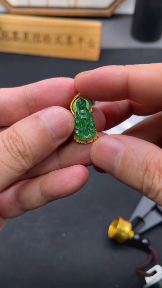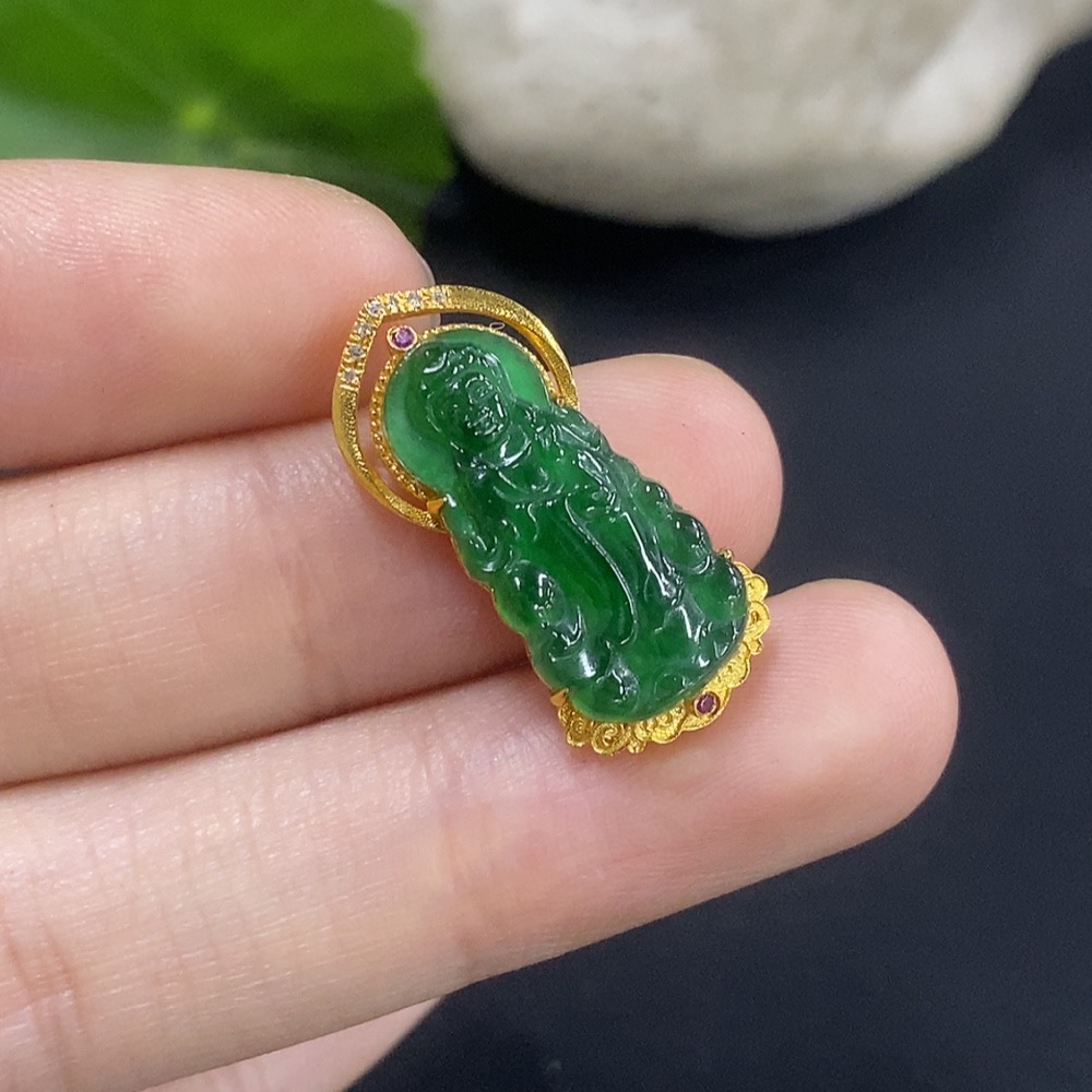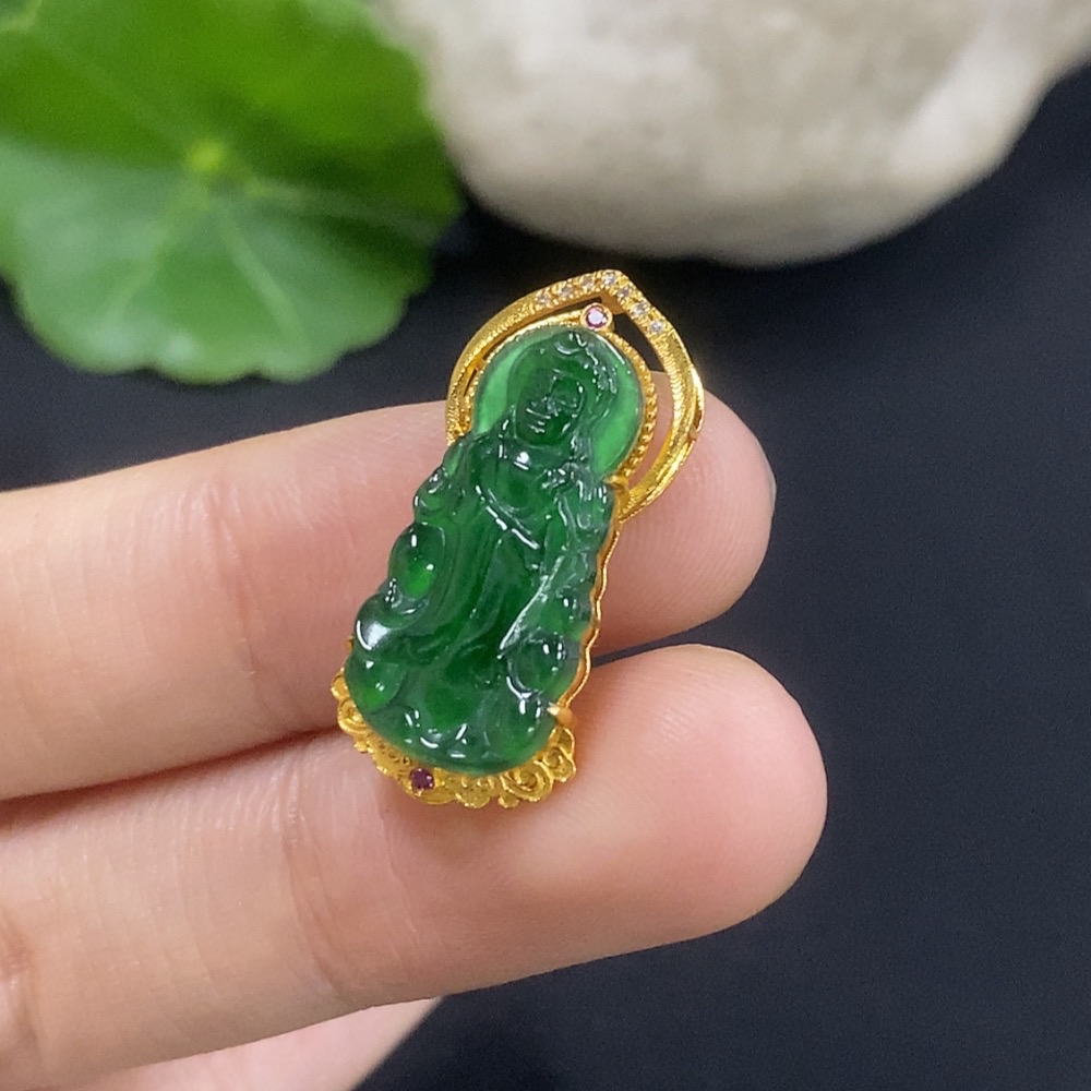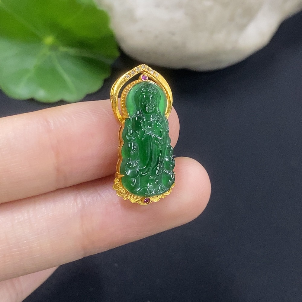 Jadeite Guanyin inlay pendant 18K gold non-diamond (with glue at the bottom) total weight about 1.88g