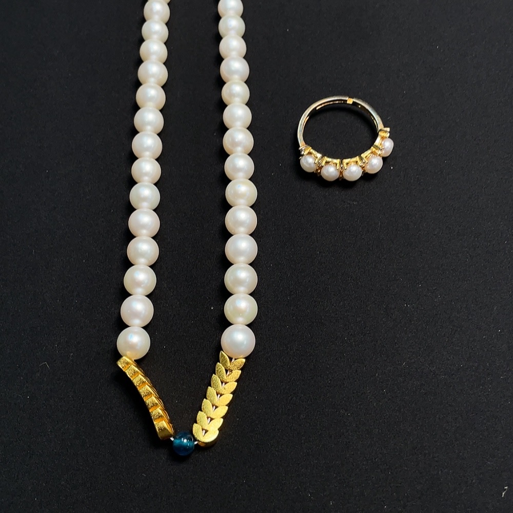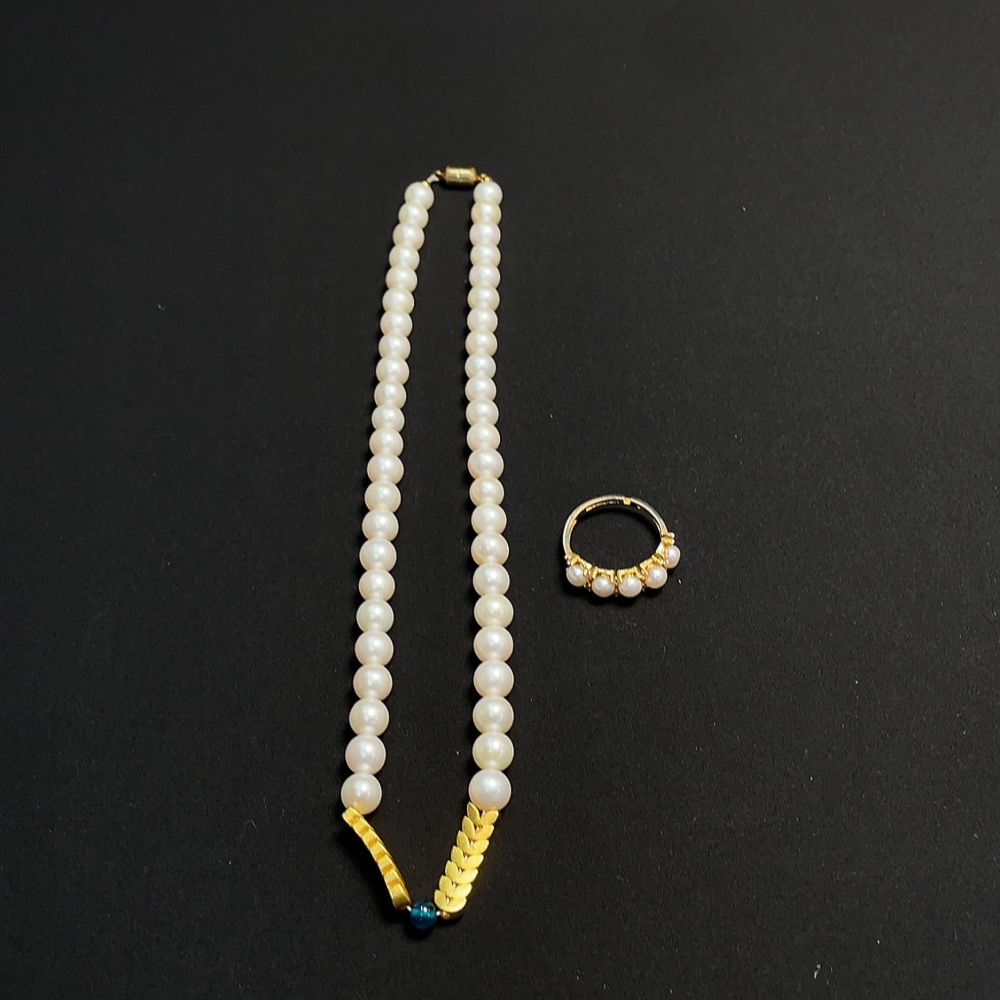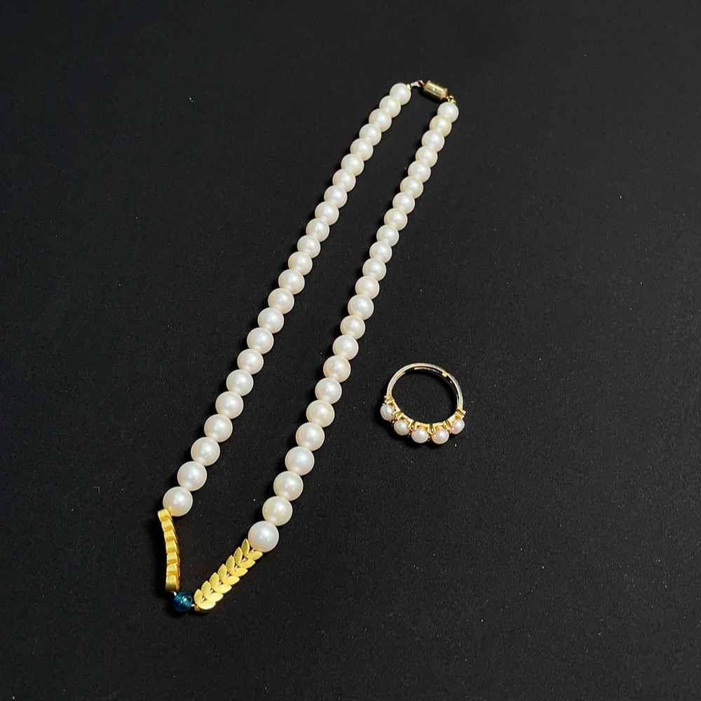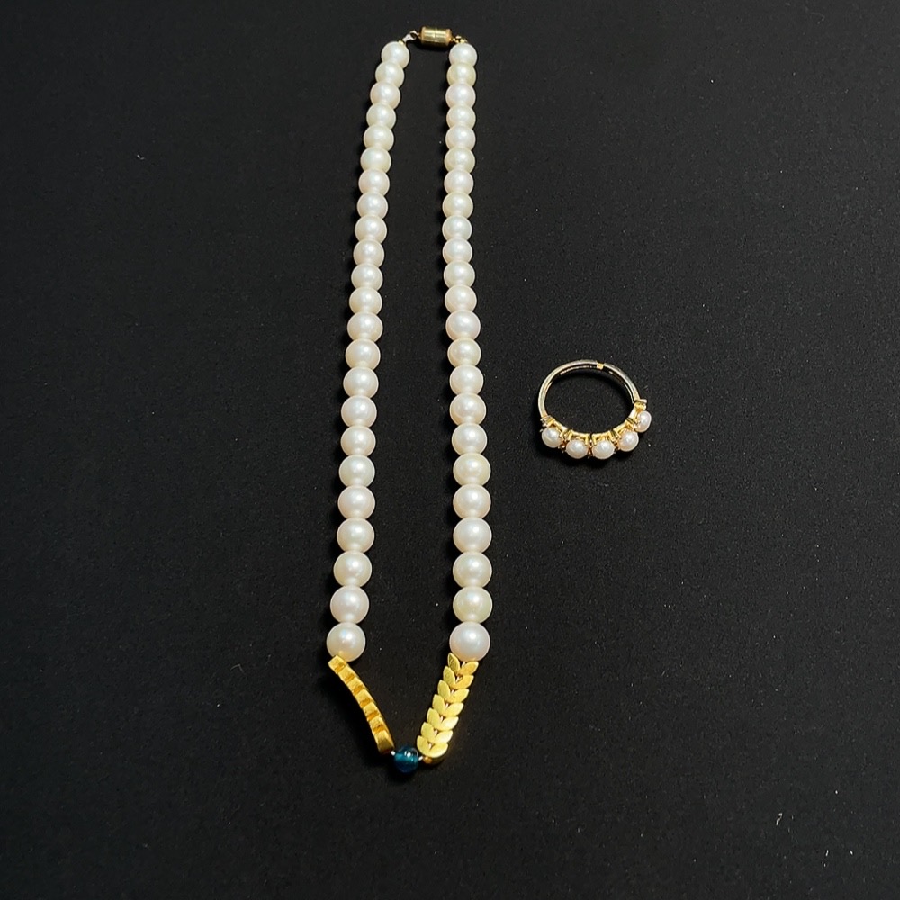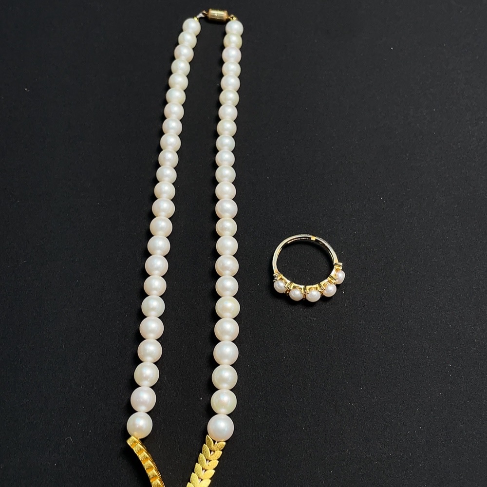 Pearl inlaid ring + bead strand Non-gold inlaid Total weight approx. 27.71g