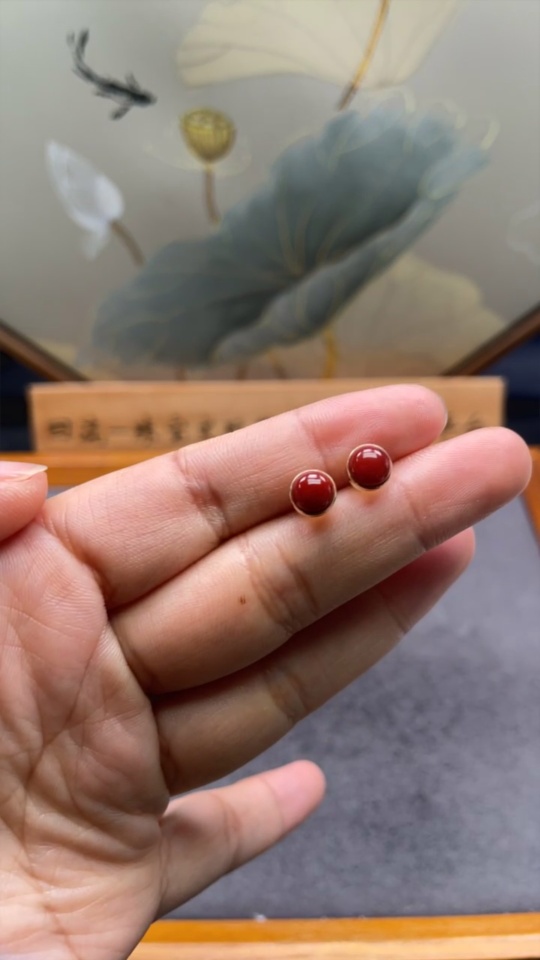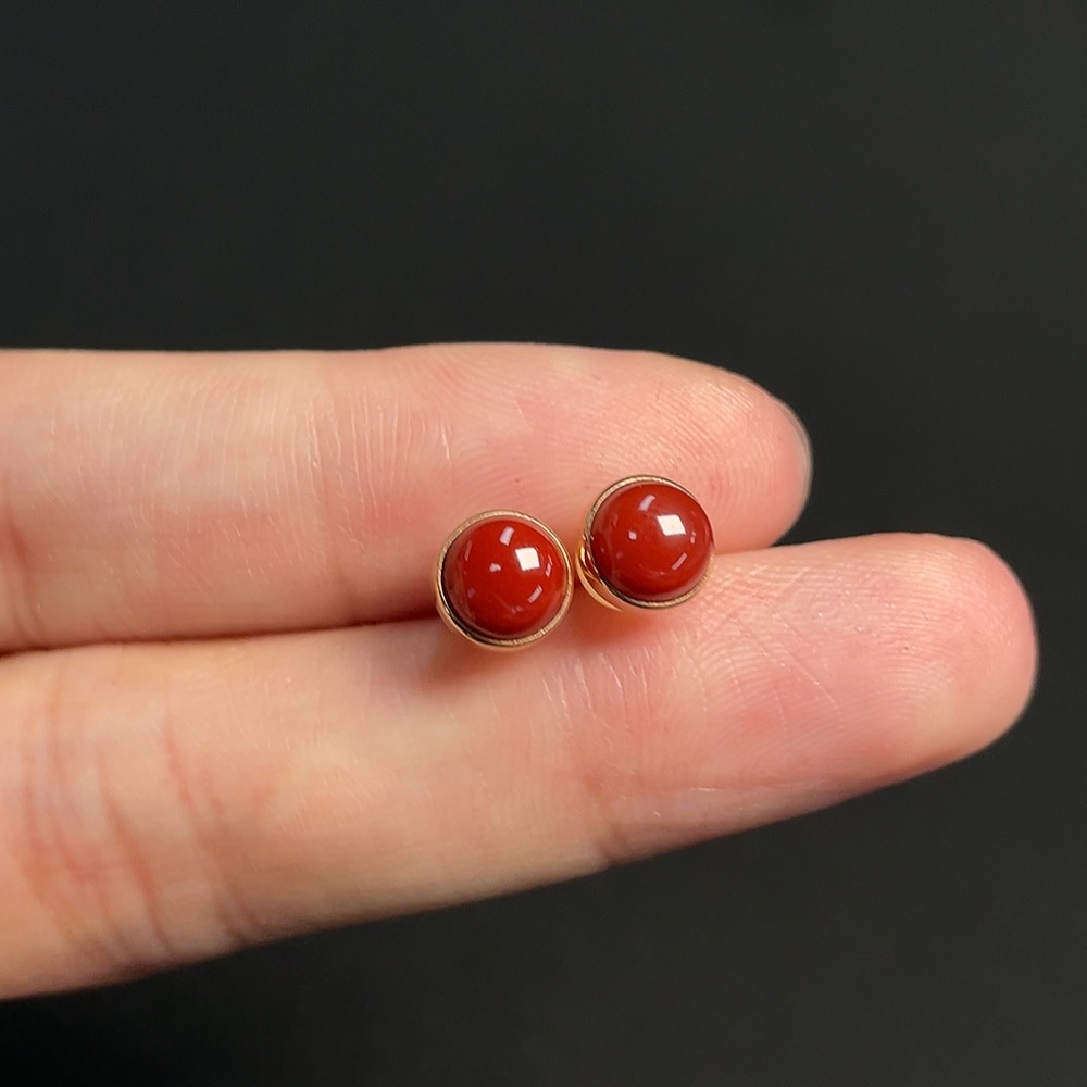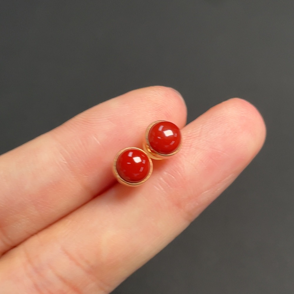 Red Agate Earrings, 18k Gold, Total Weight Approx. 1.14g