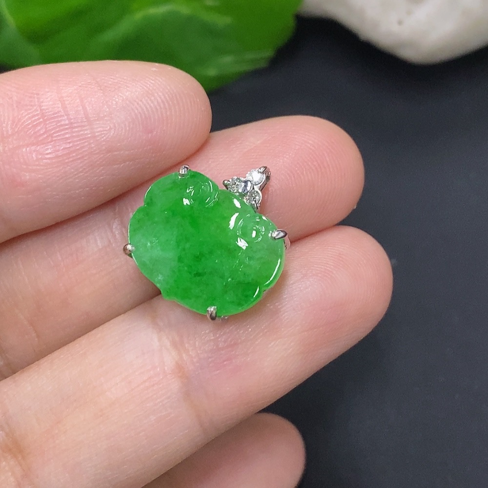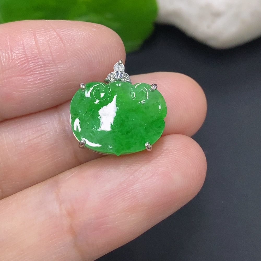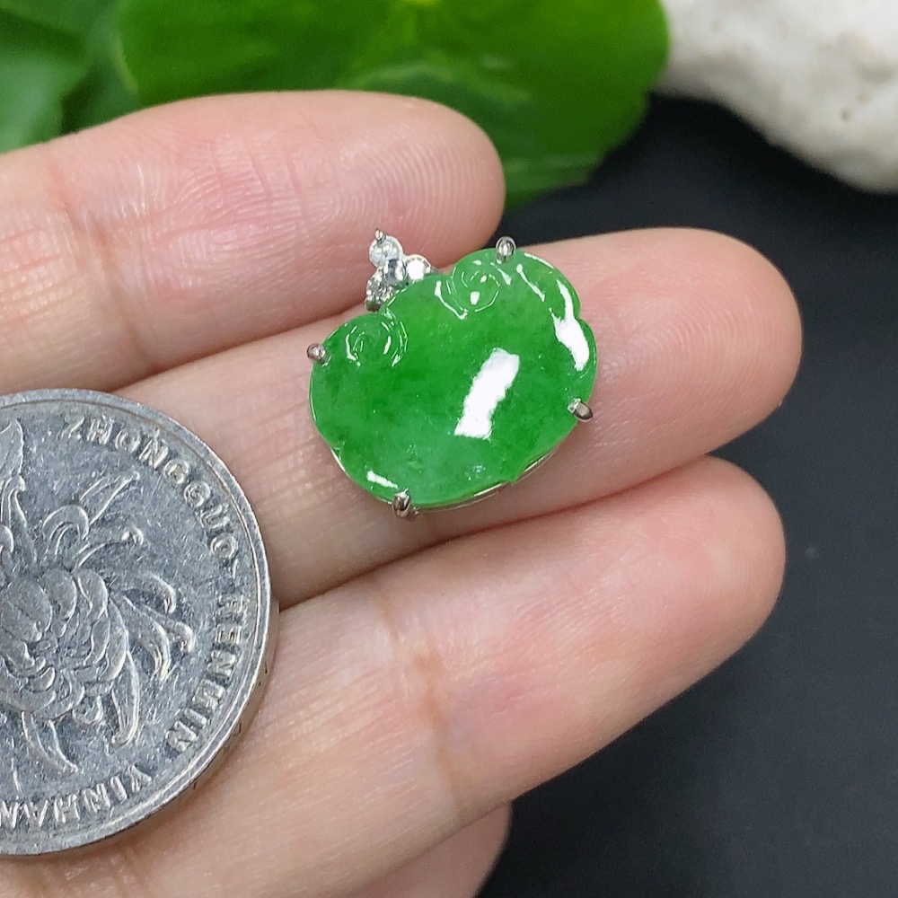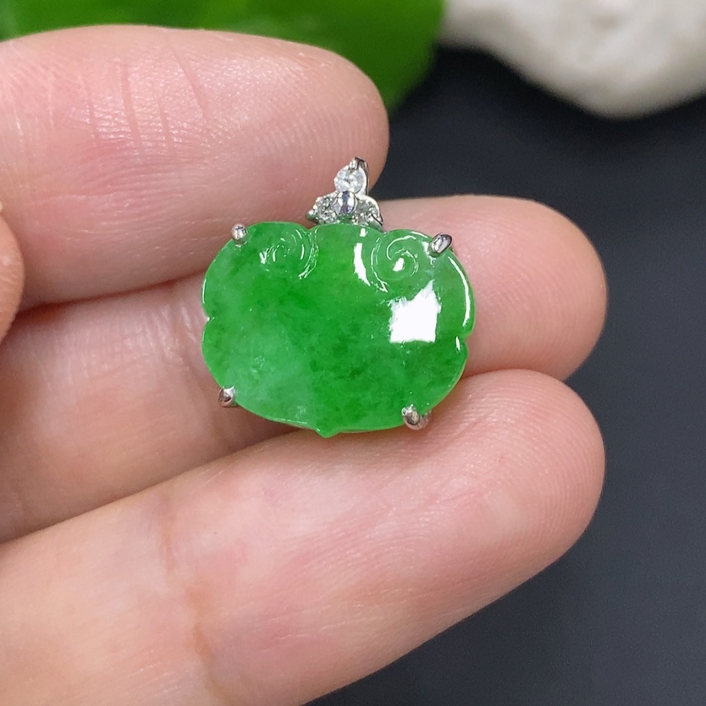 Jadeite Ruyi Pendant Unmarked 18K Gold Approx. 1.7g with Diamond Accents
