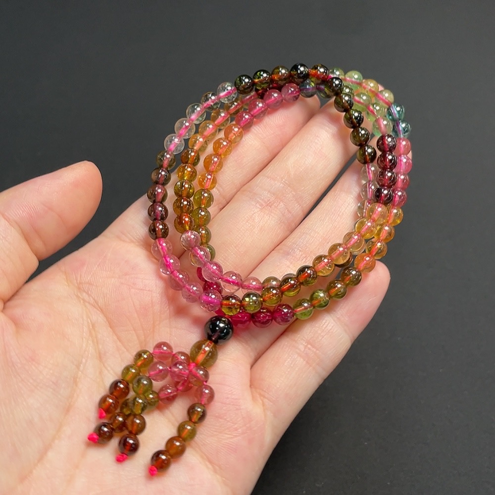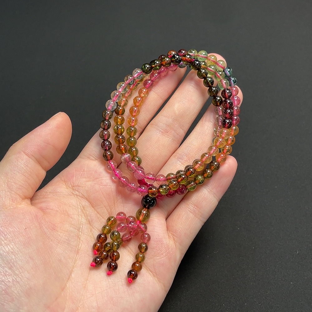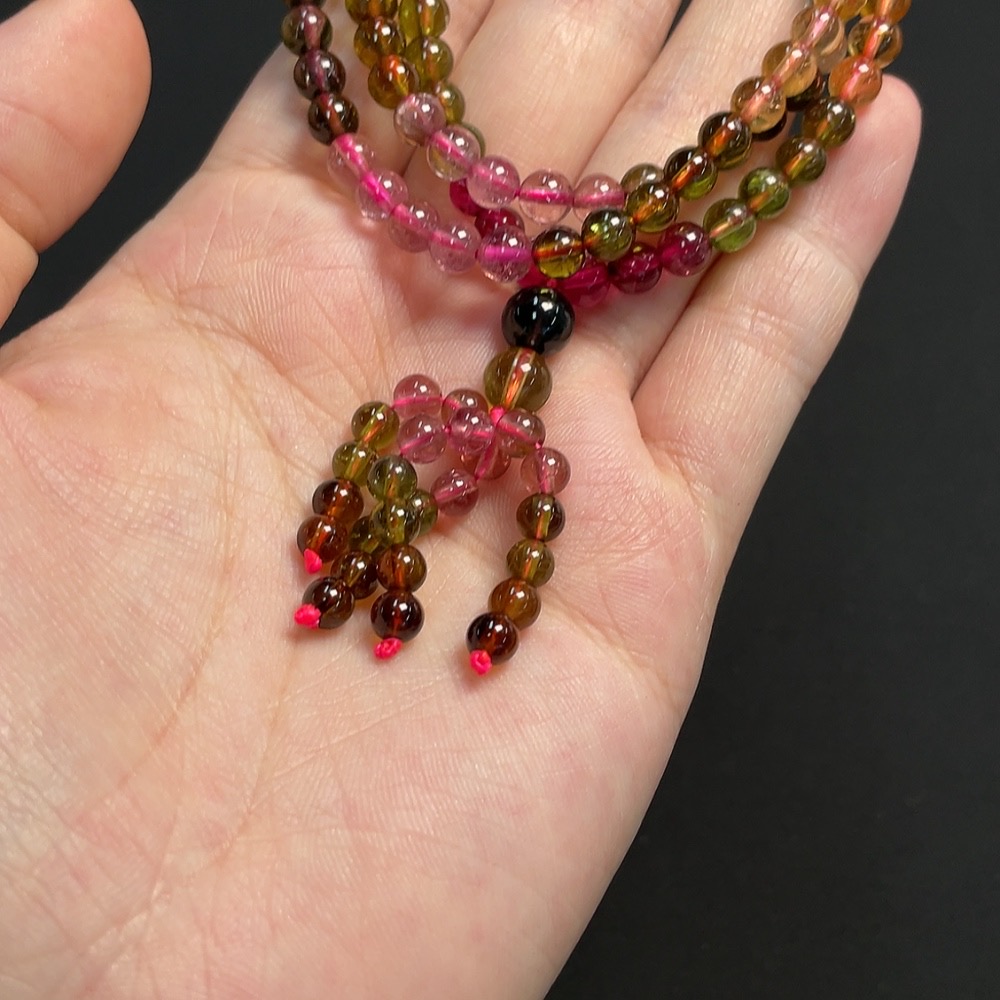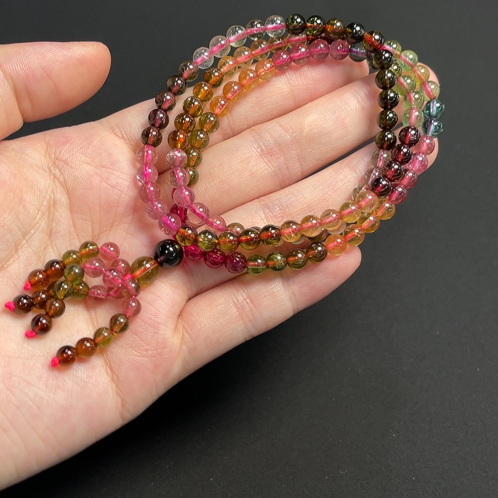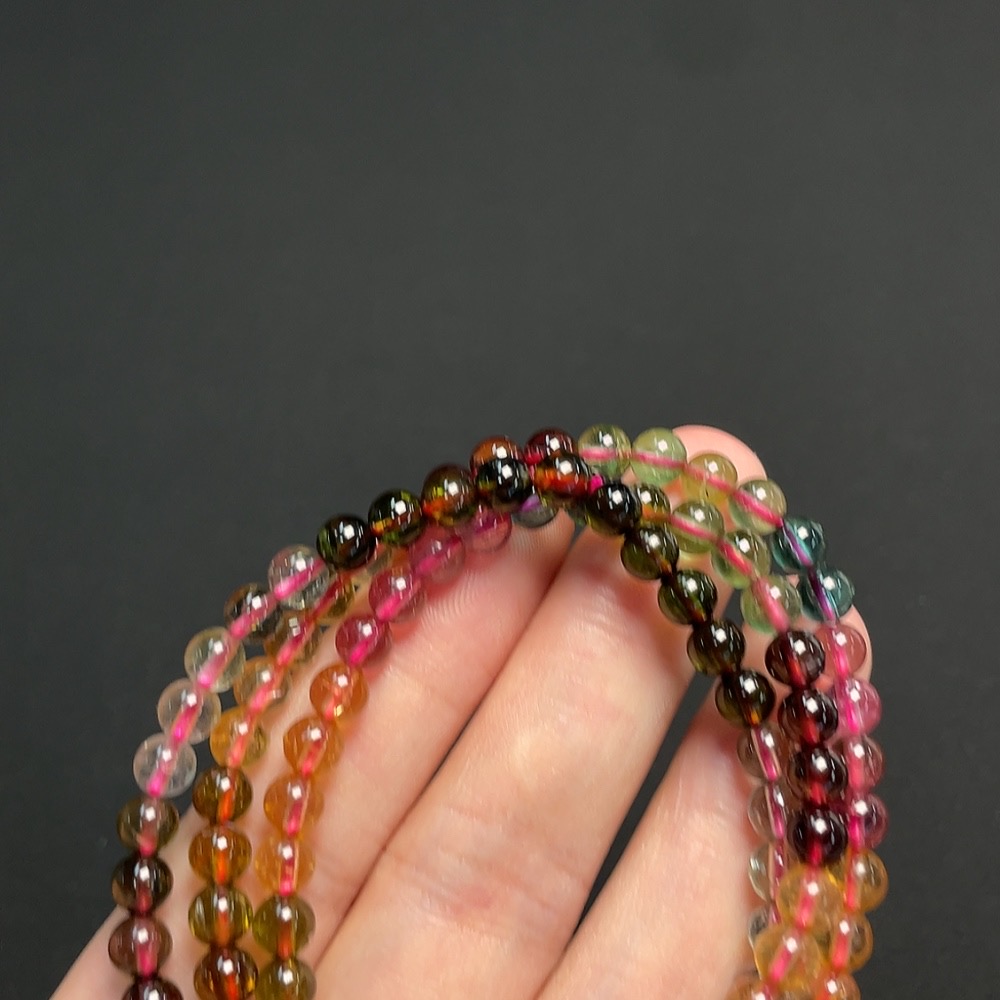 Tourmaline bead strand, approx. 5mm, total weight about 26.58g, visible organic inclusions