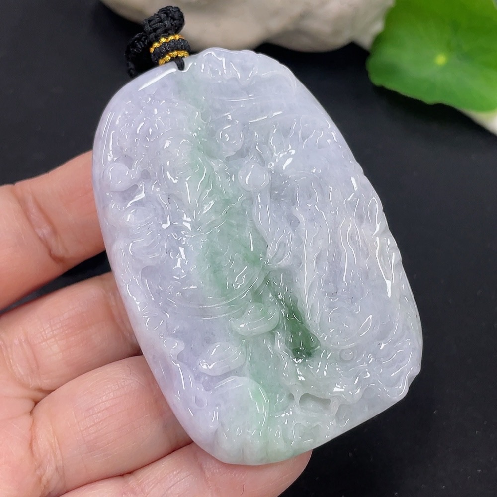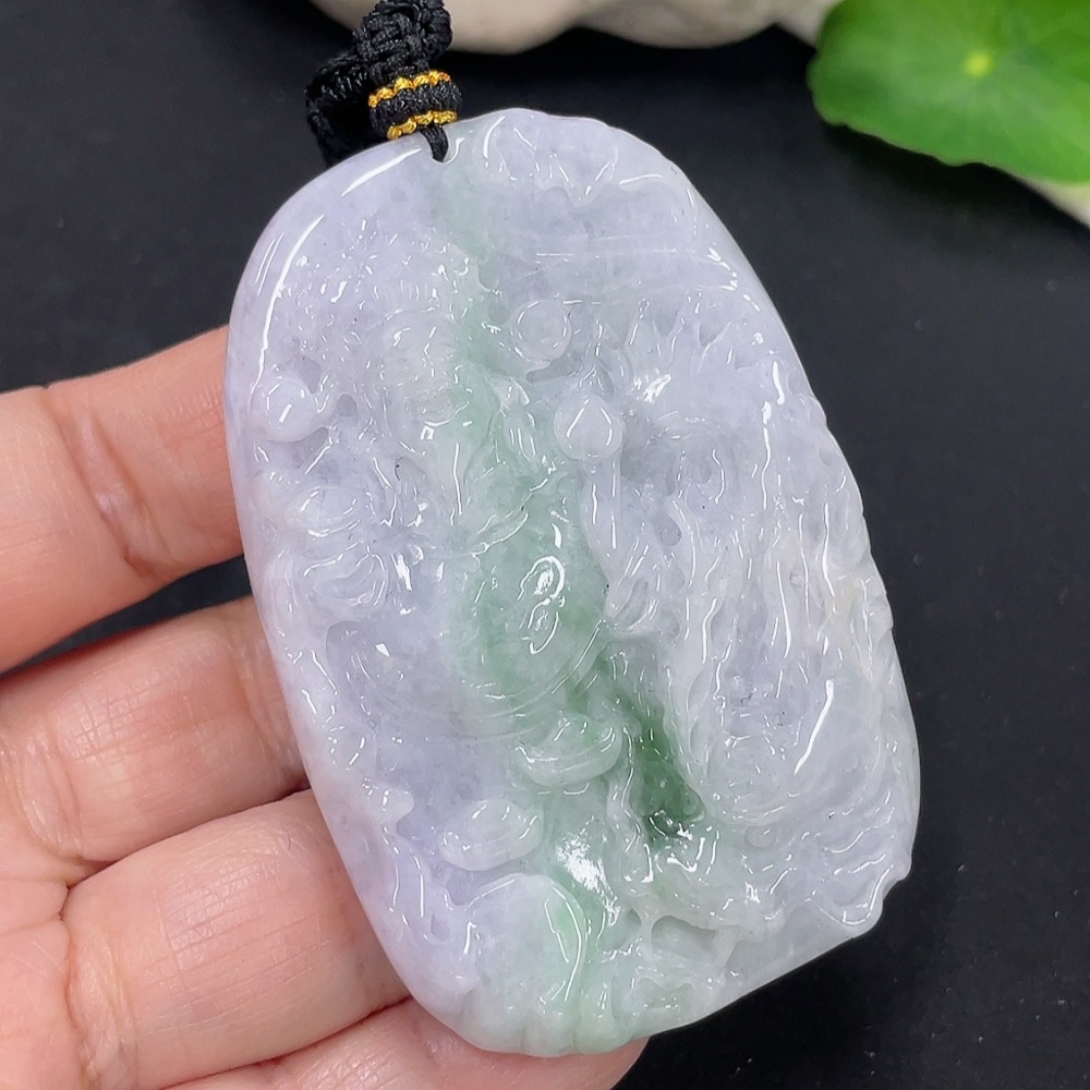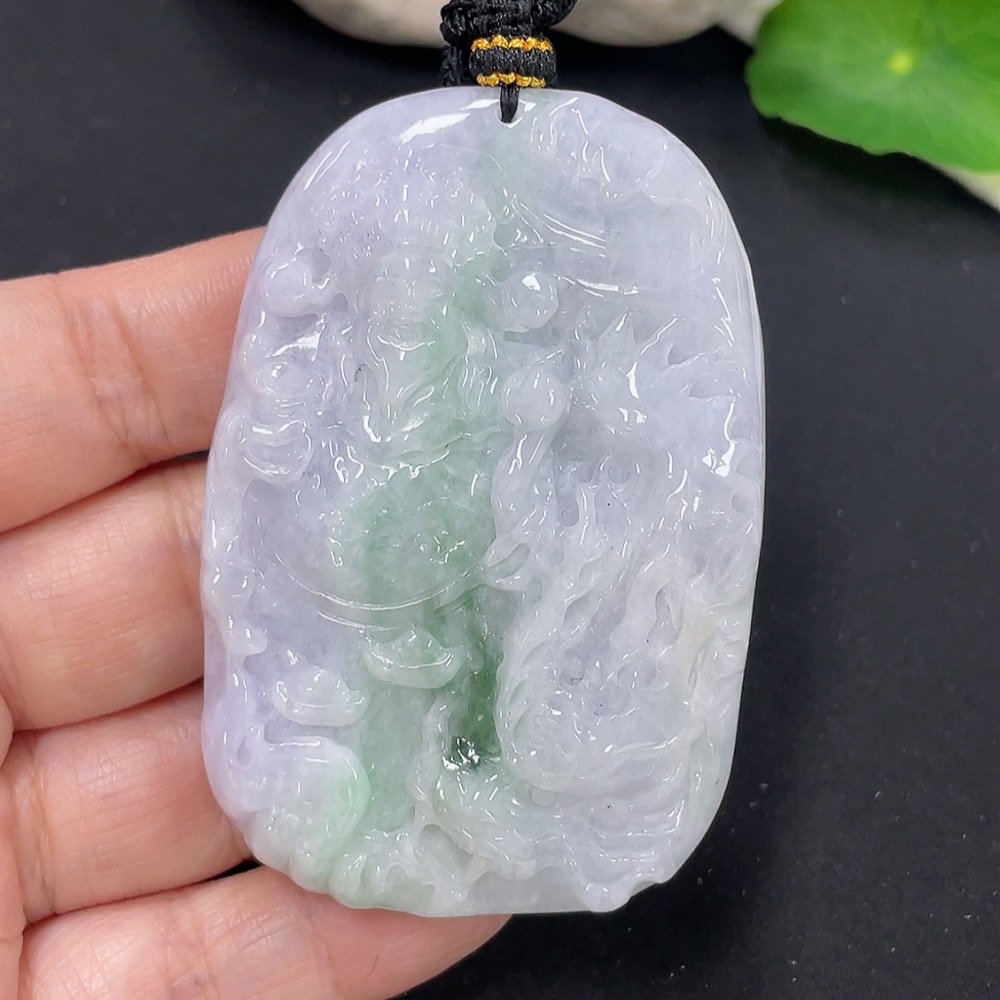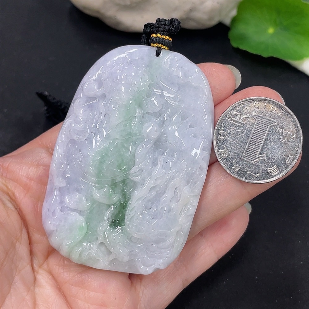 Jadeite God of Wealth Pendant Total Weight Approx. 59.3g (Including Rope)