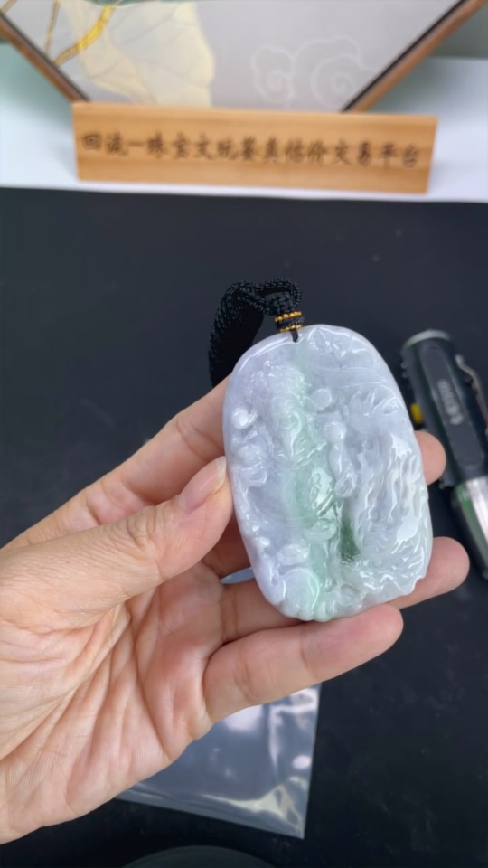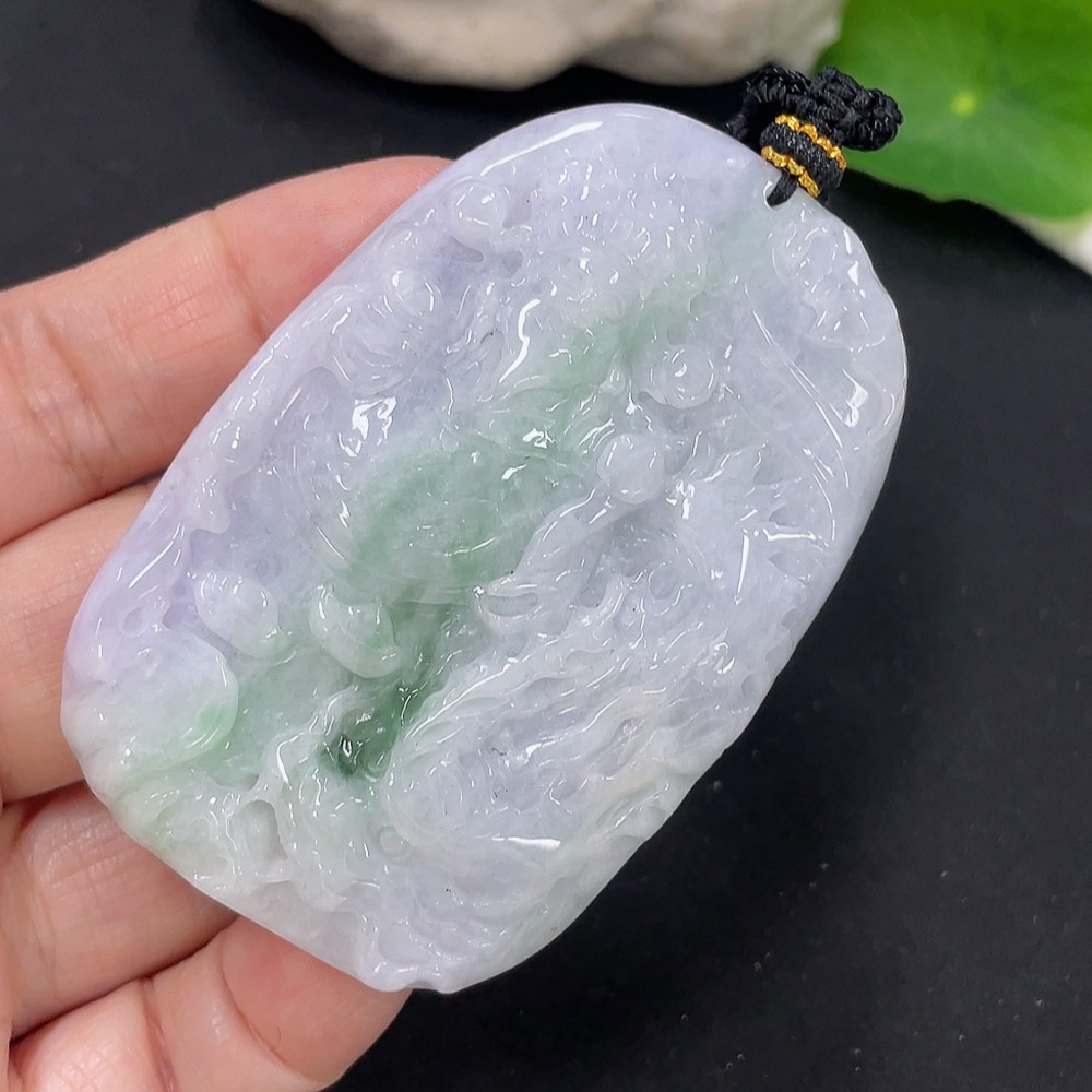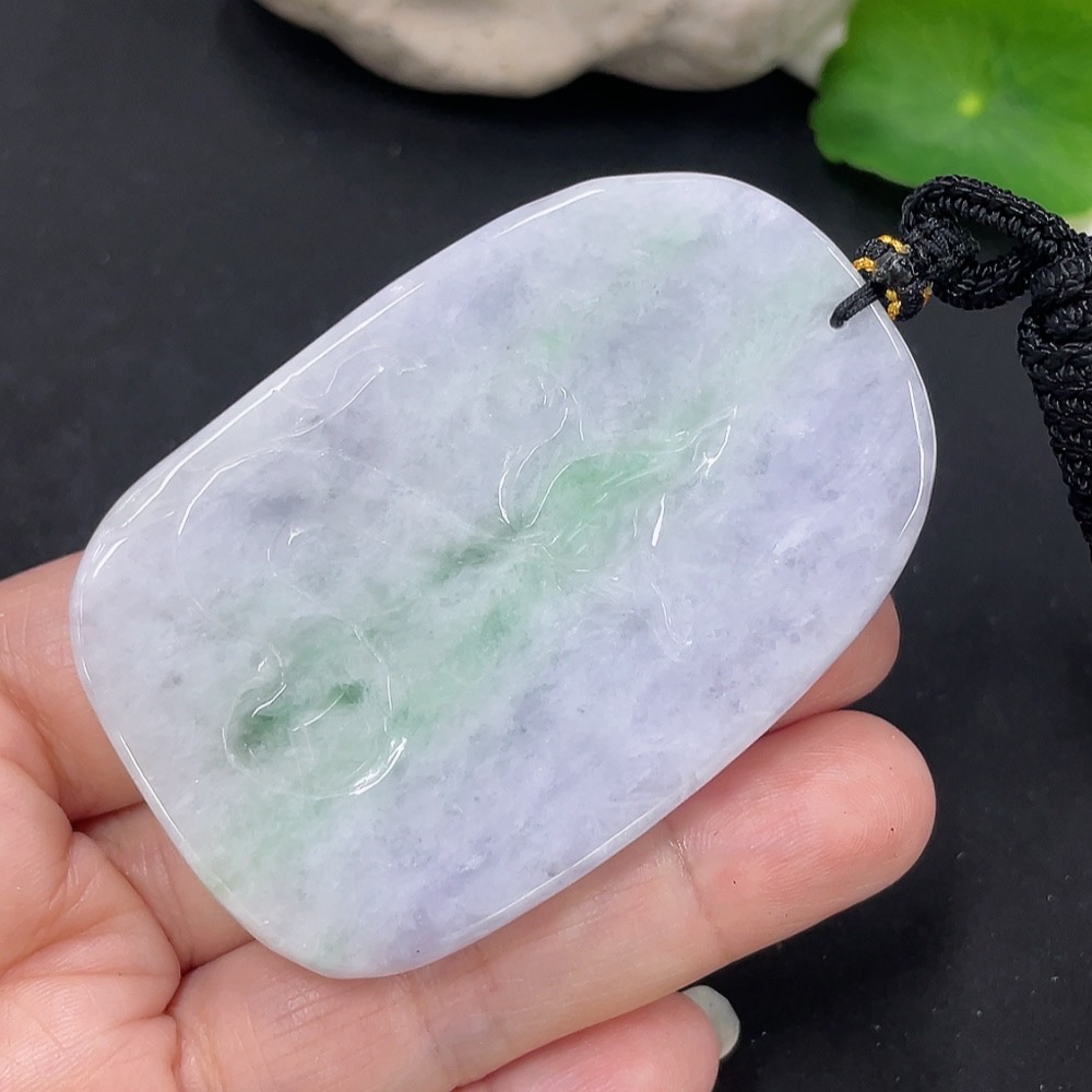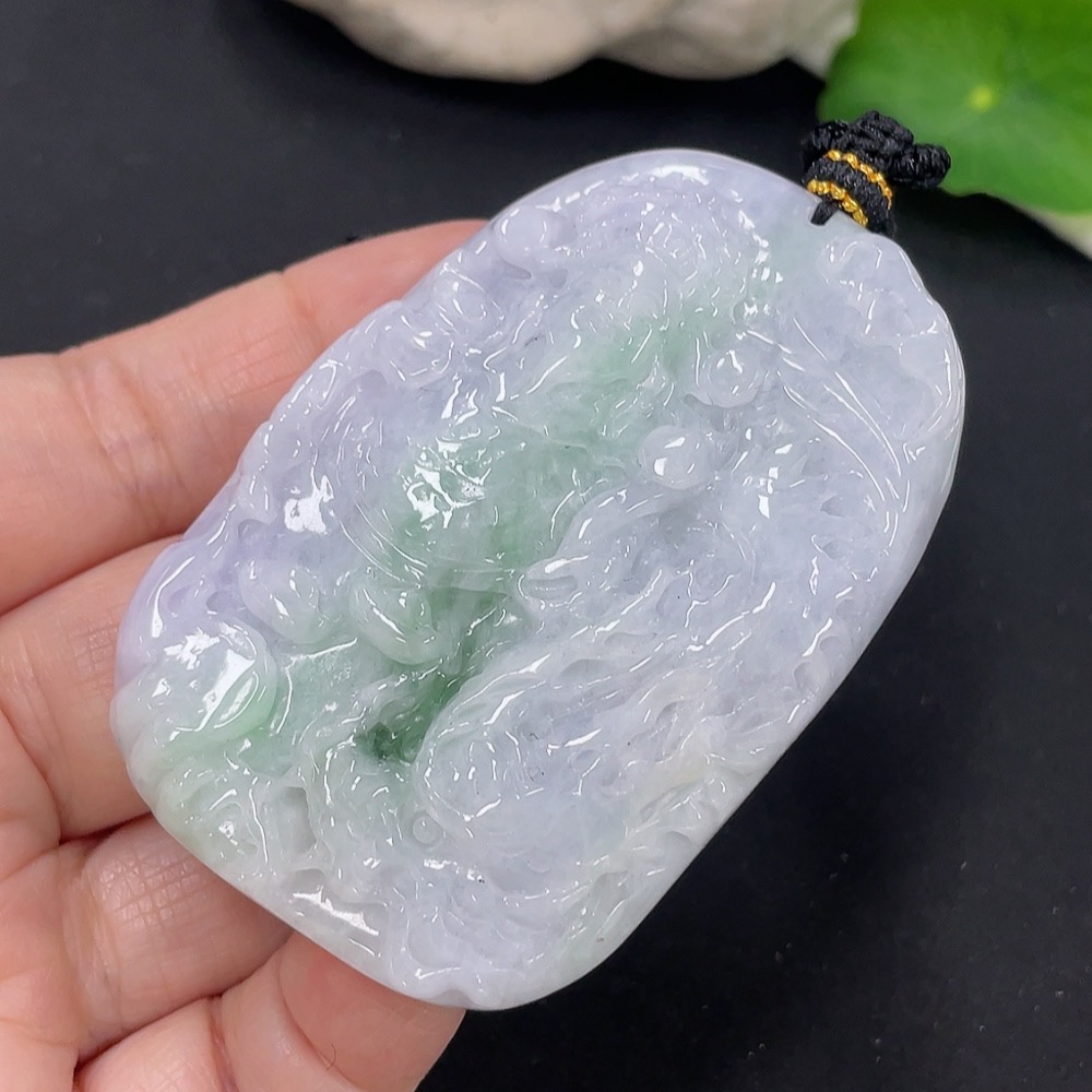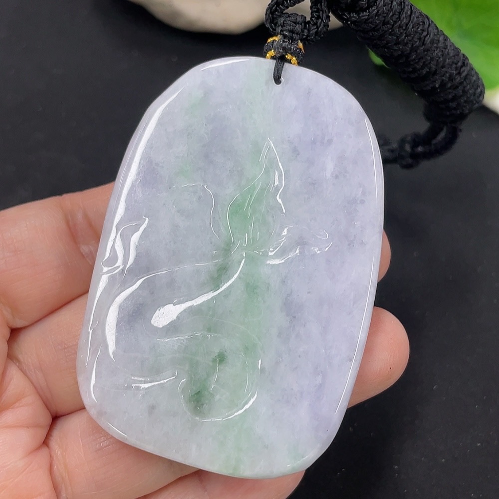 Jadeite God of Wealth Pendant Total Weight Approx. 59.3g (Including Rope)