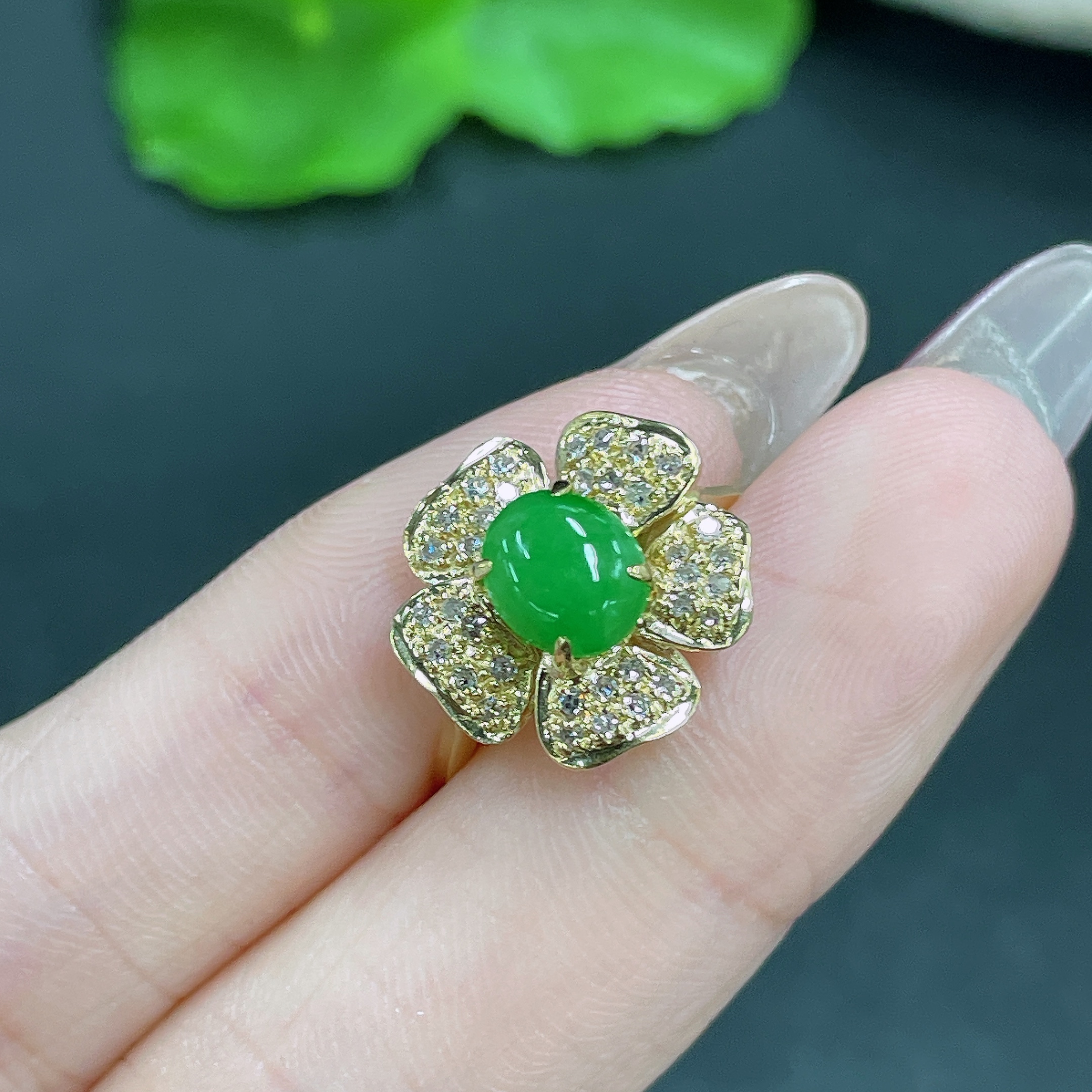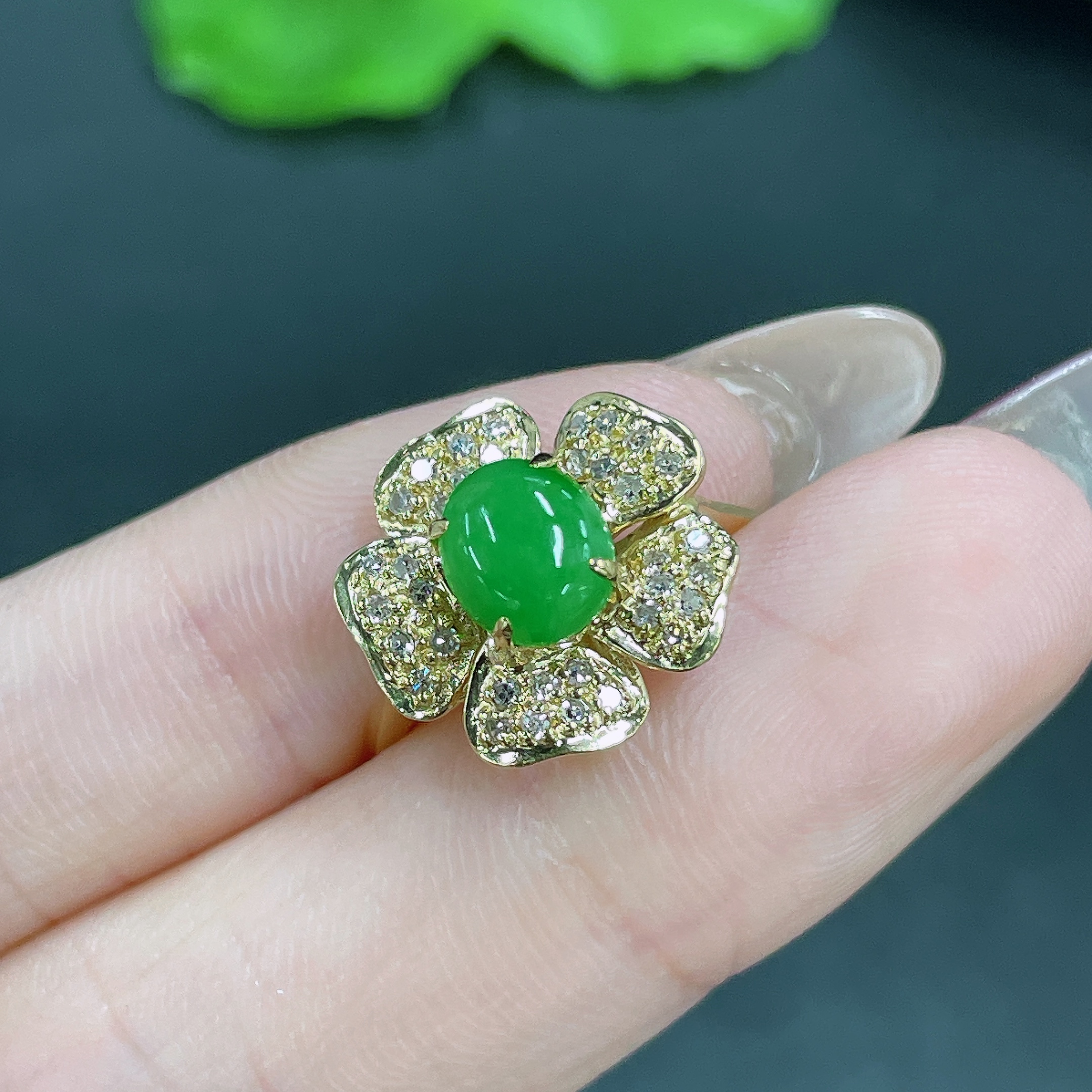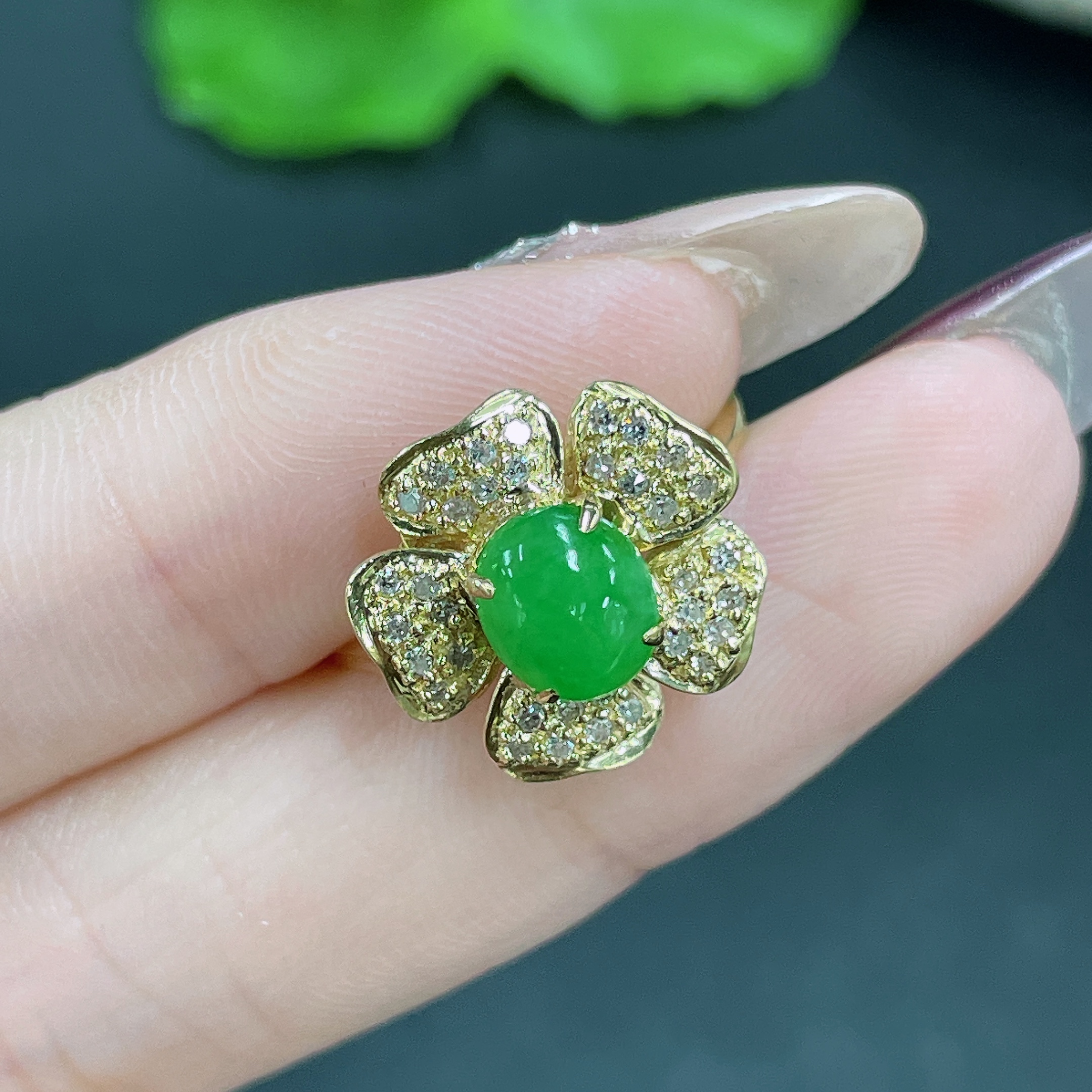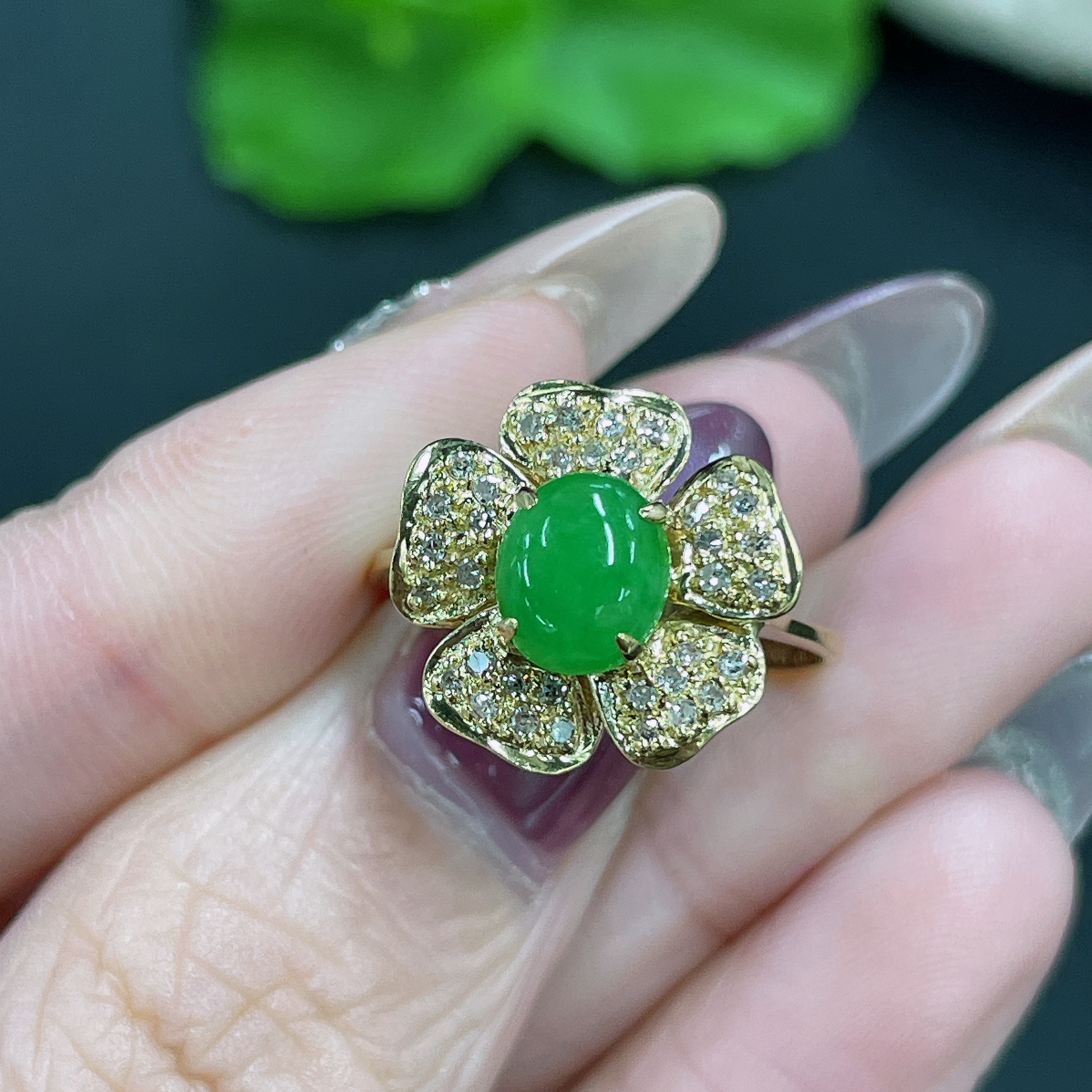 Jadeite Ring 18k Gold Set with Diamonds Total Weight Approx. 3.46g Size 15