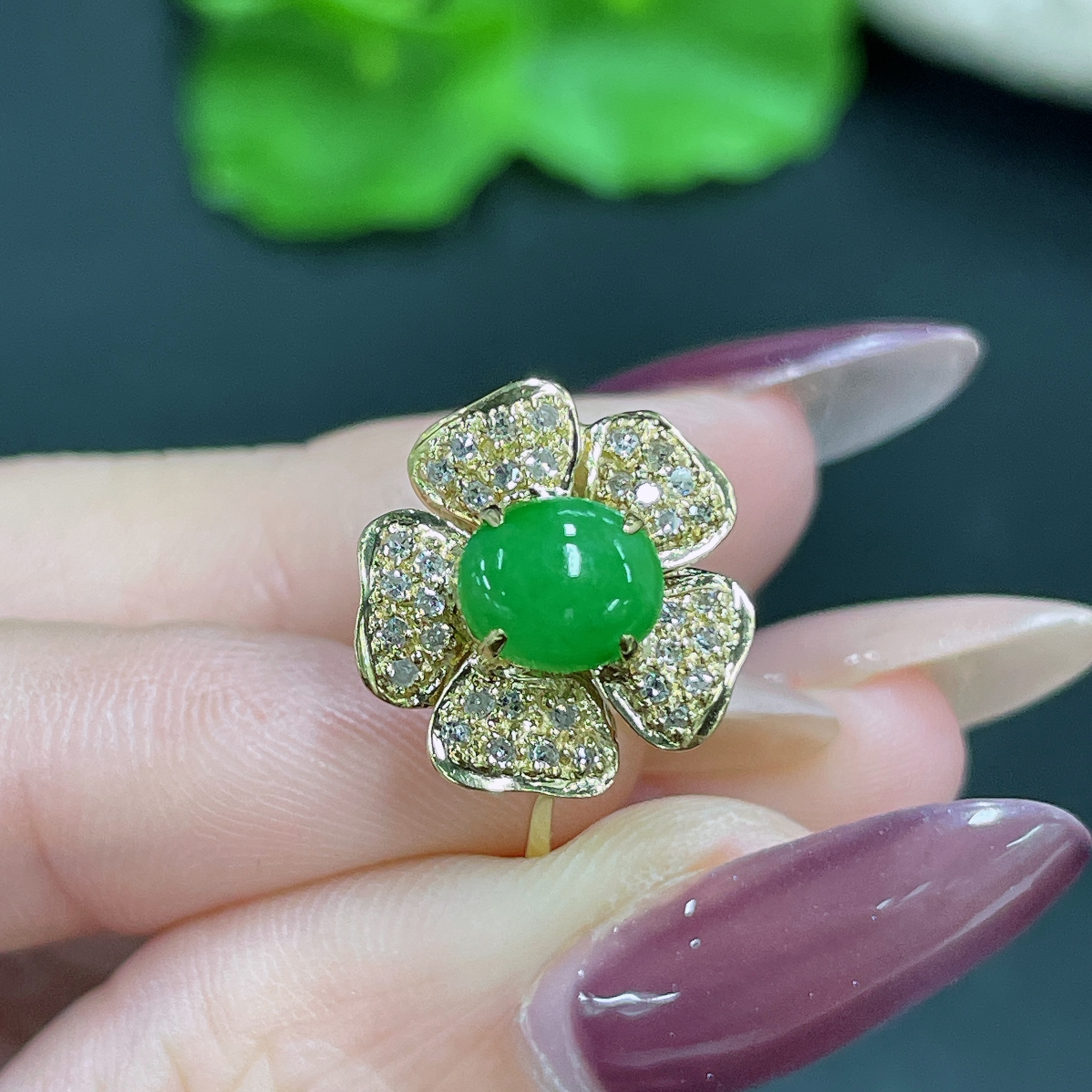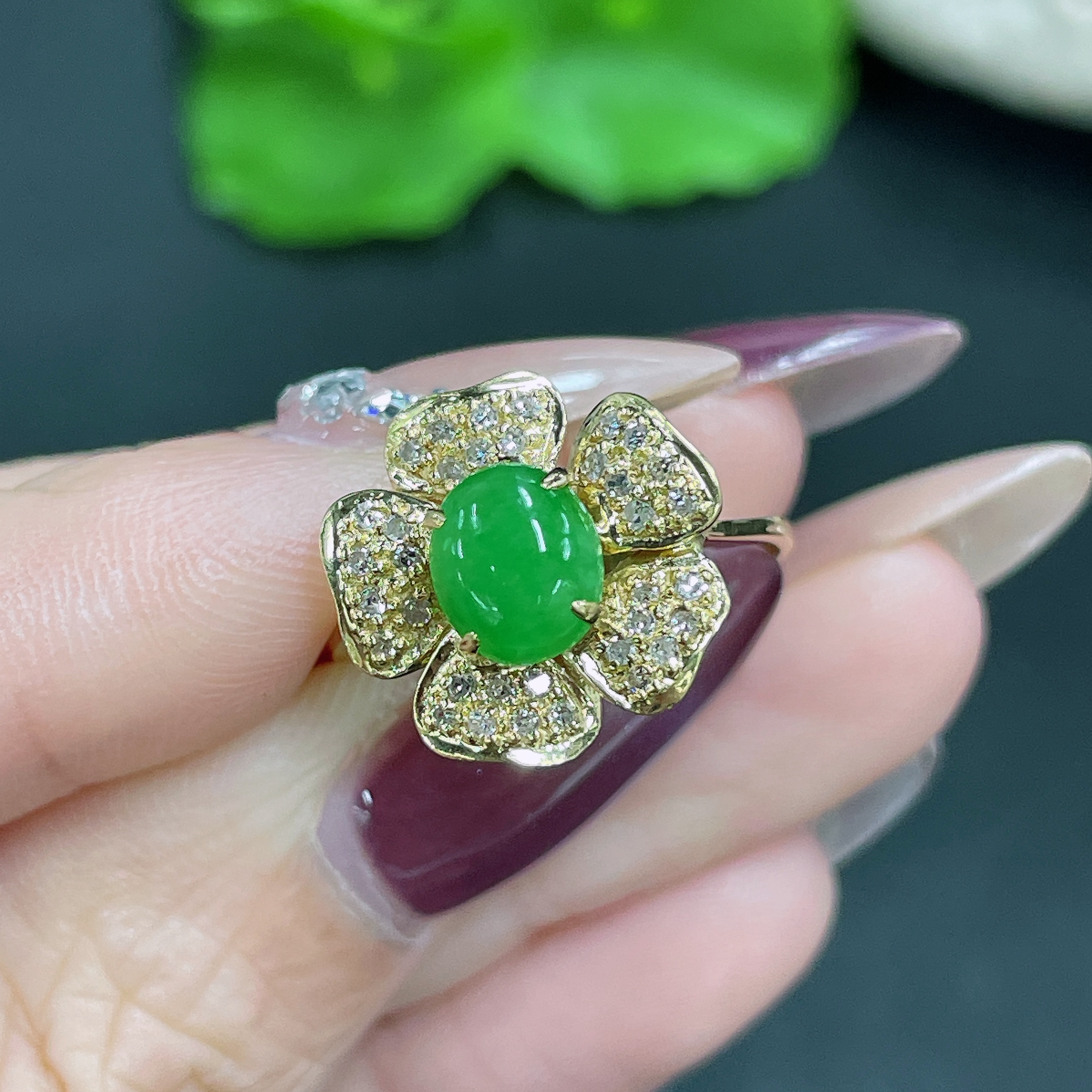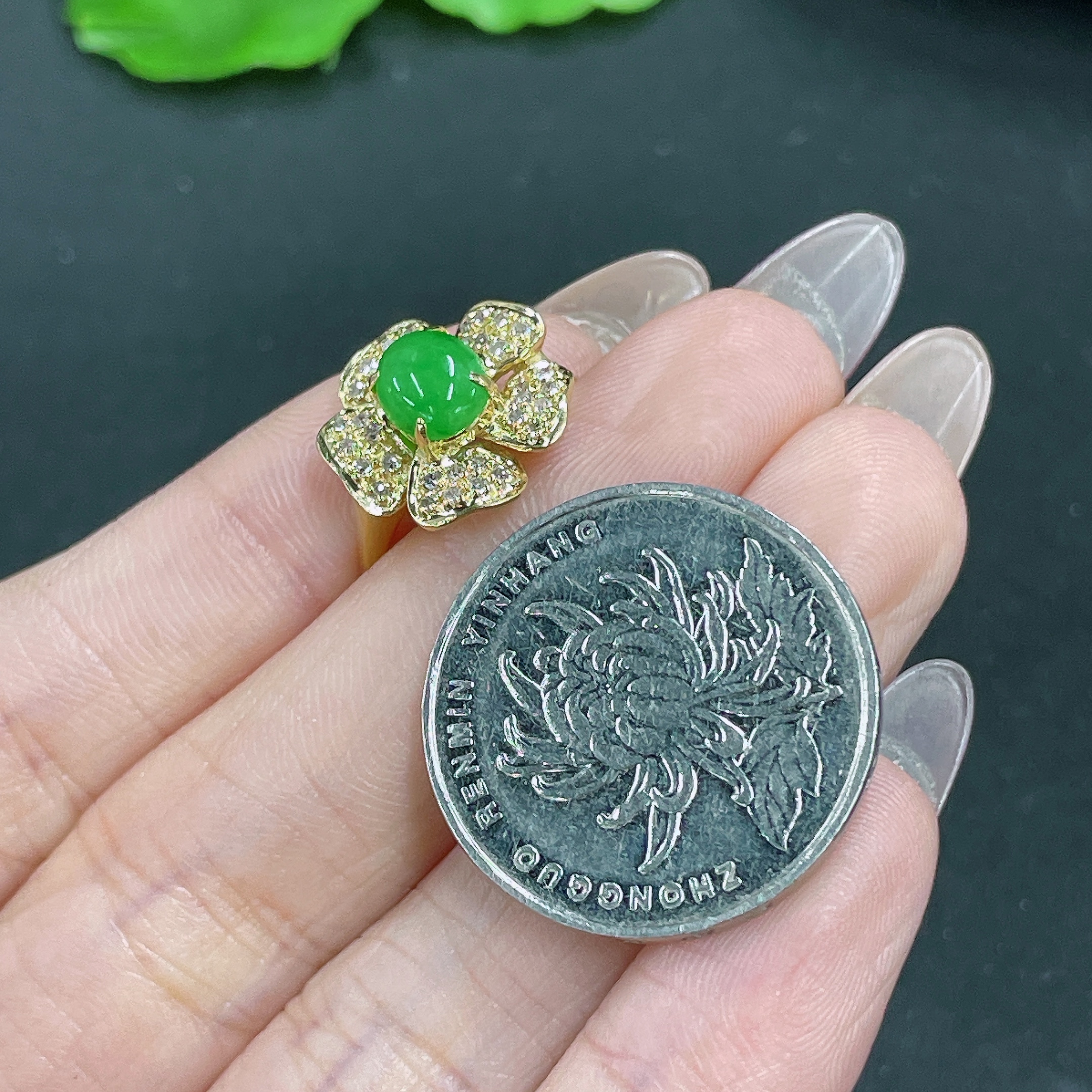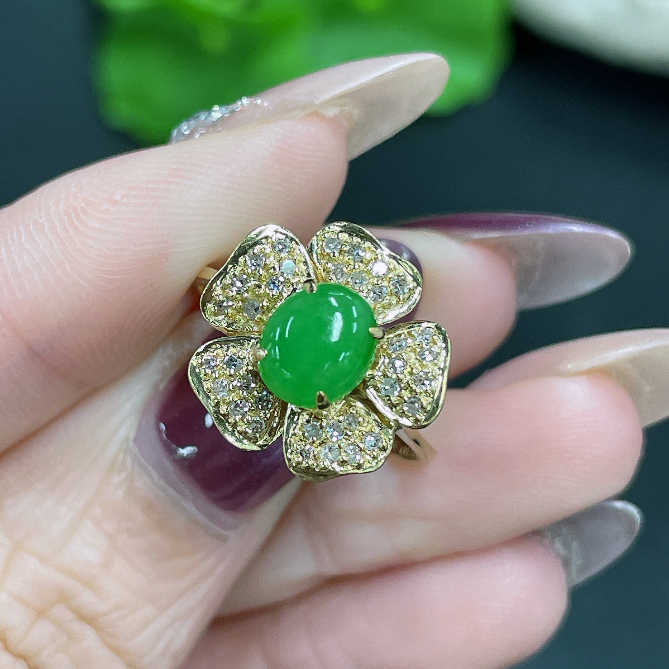 Jadeite Ring 18k Gold Set with Diamonds Total Weight Approx. 3.46g Size 15