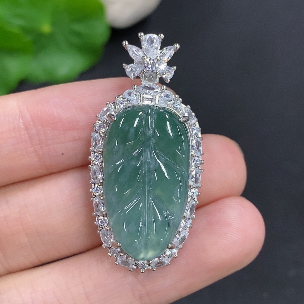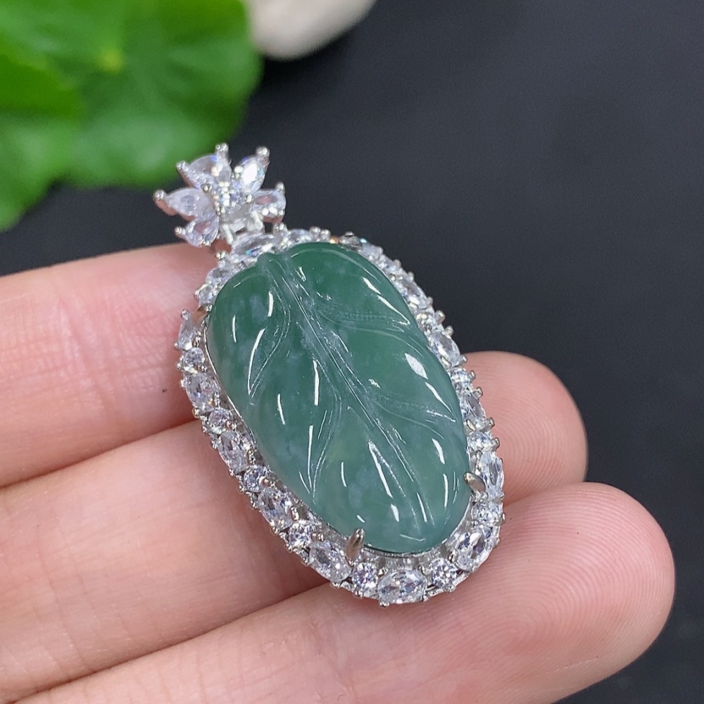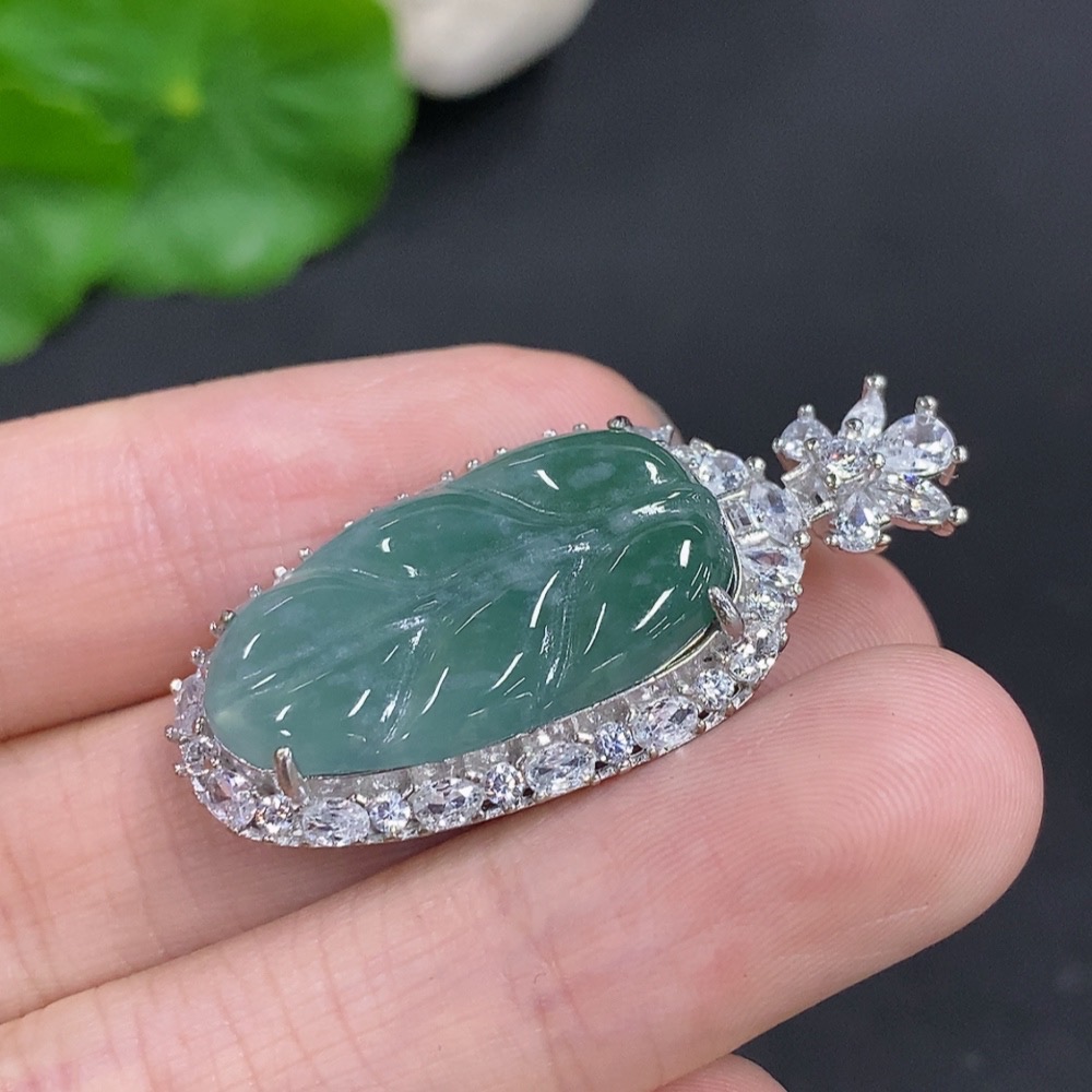 Jadeite Leaf Pendant Non-Gold Inlaid Total Weight Approximately 6.2g