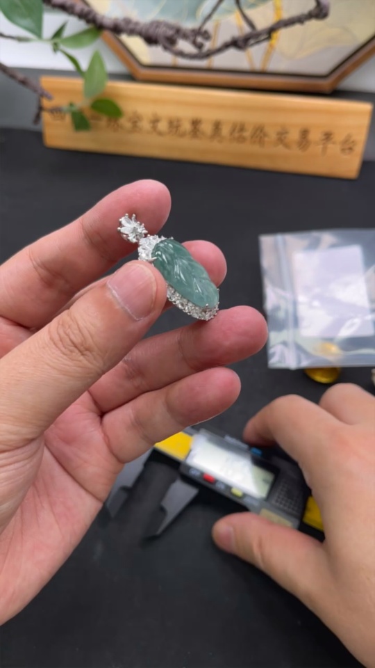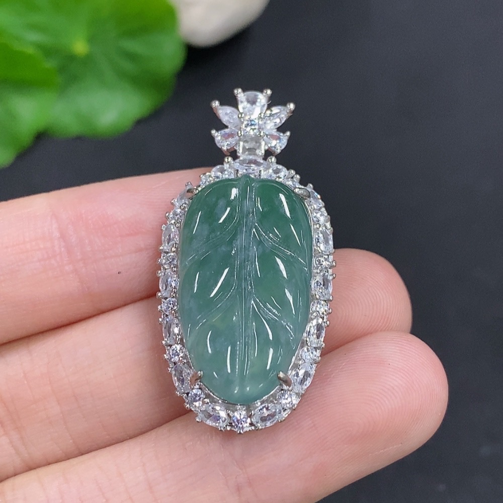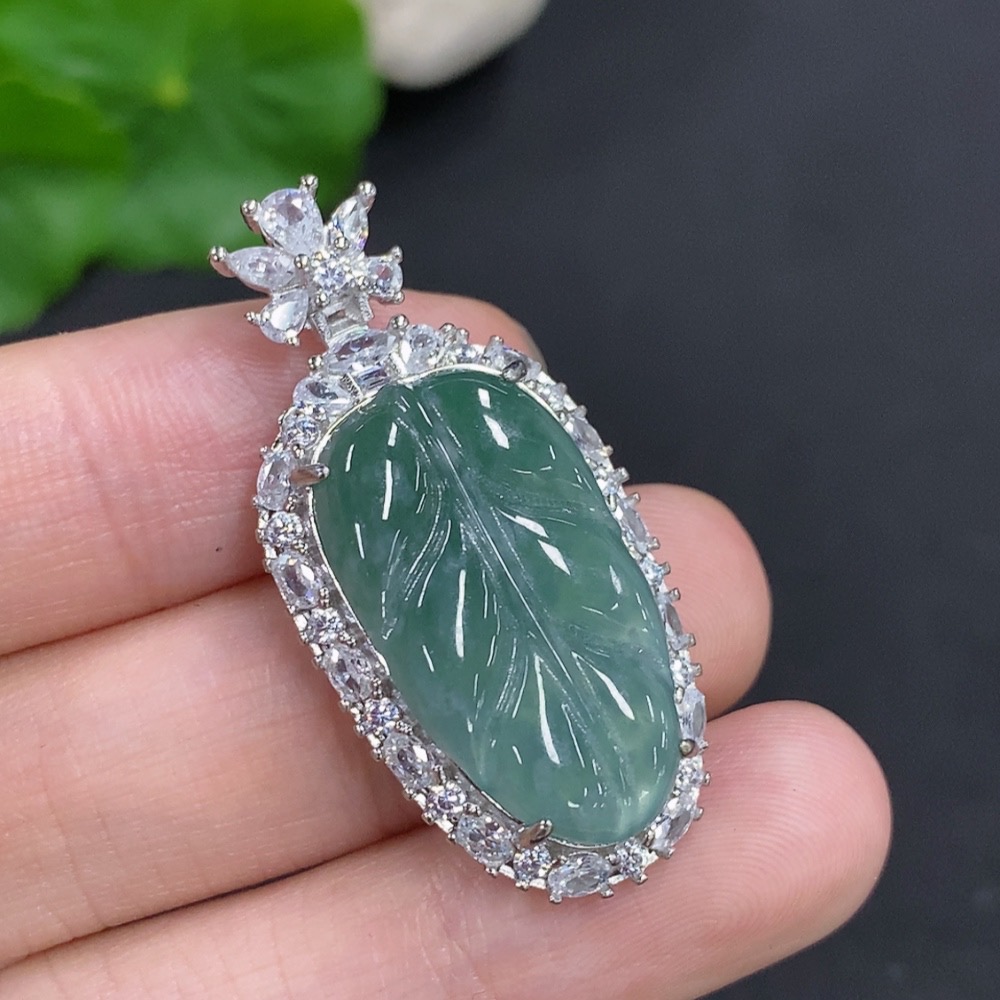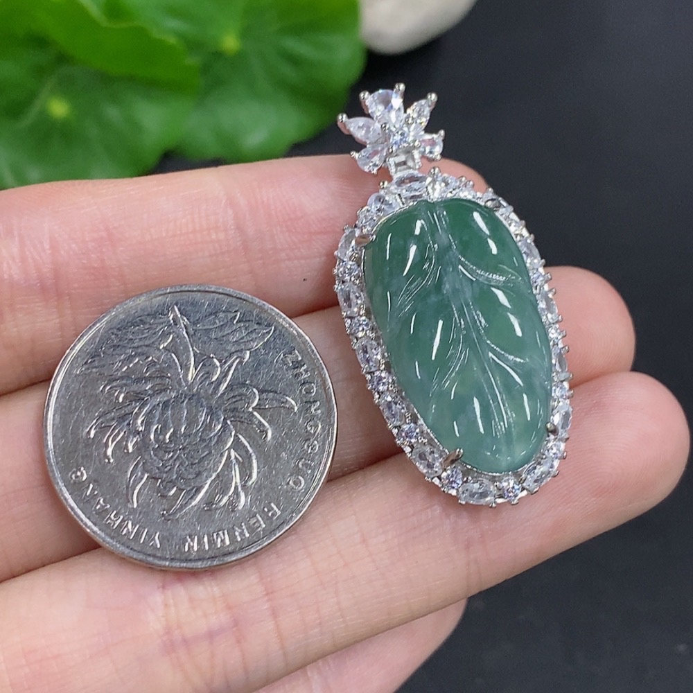 Jadeite Leaf Pendant Non-Gold Inlaid Total Weight Approximately 6.2g
