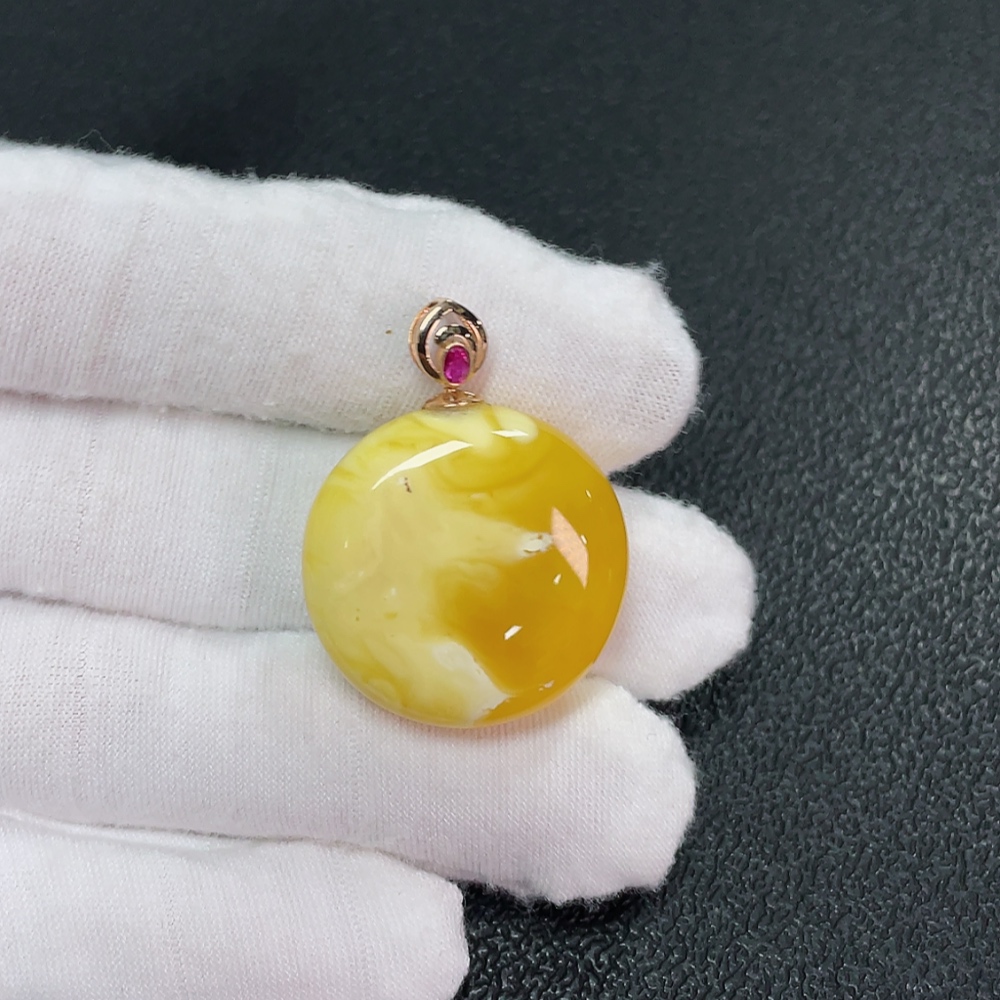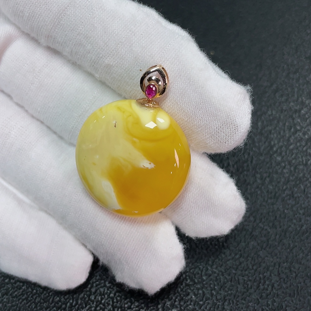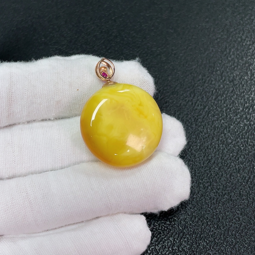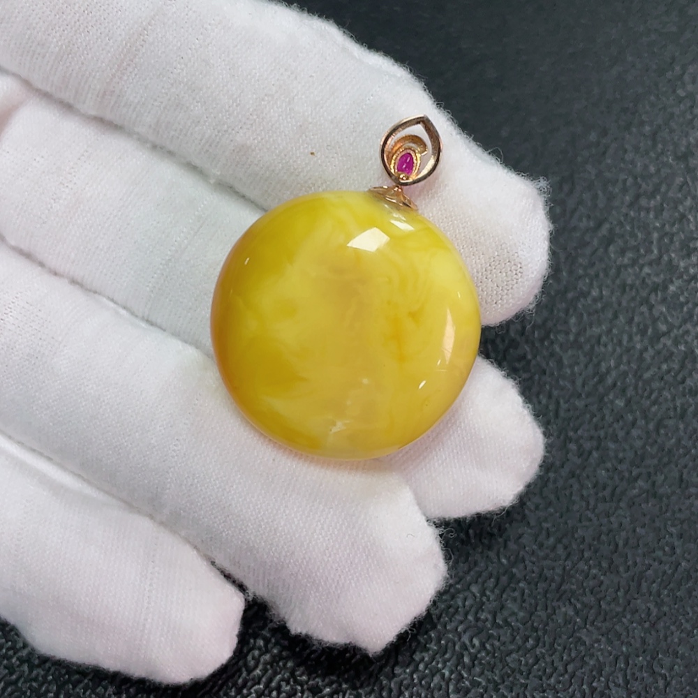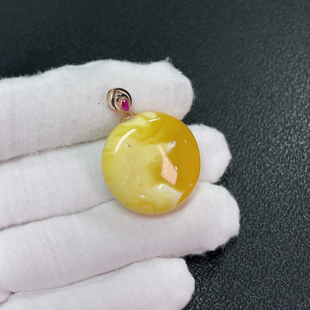 18K Amber Beeswax Pendant, Total Weight Approx. 5.06g