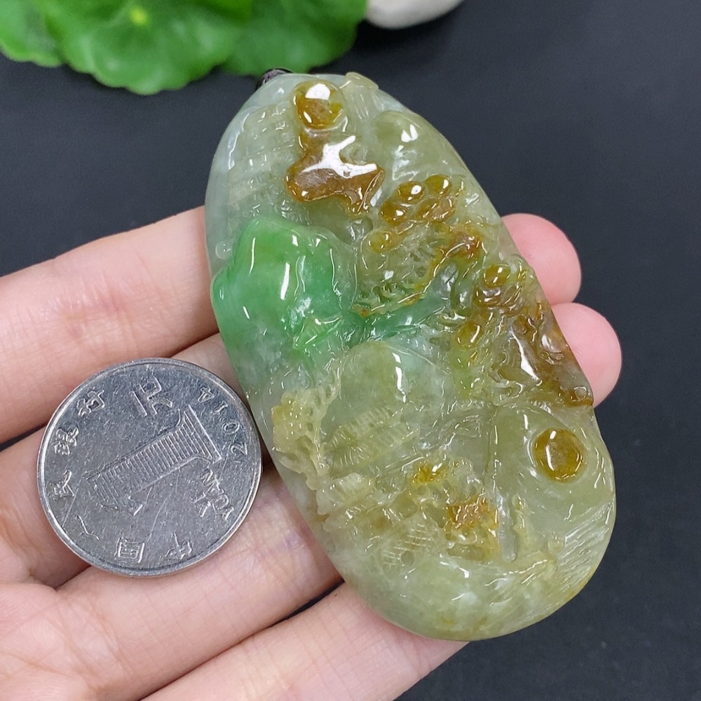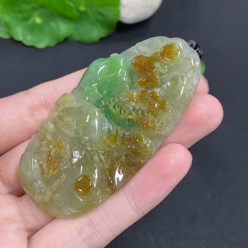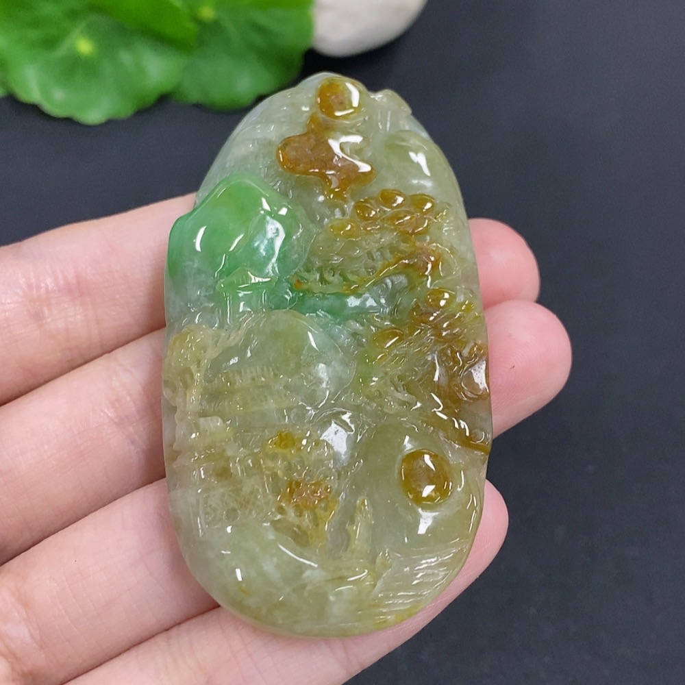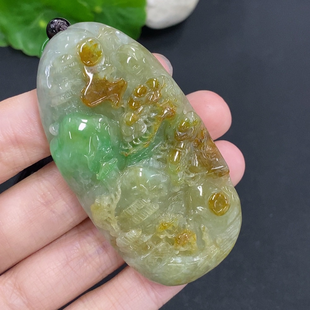 Trezaar - Jadeite Landscape Pendant Hanging Ha