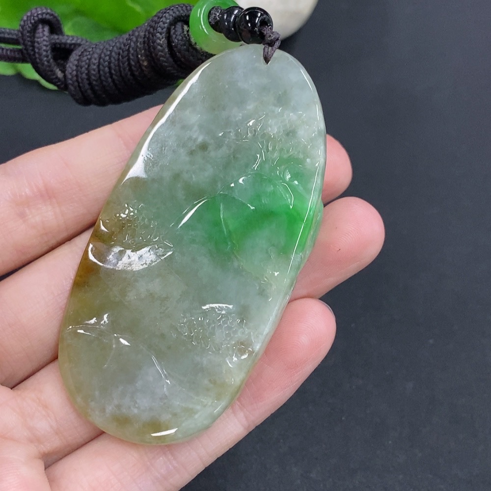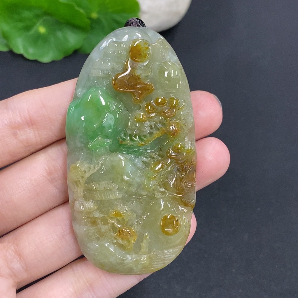 Jadeite Landscape Pendant Hanging Piece Total weight about 54.71g (including rope weight) Matching beads not jadeite