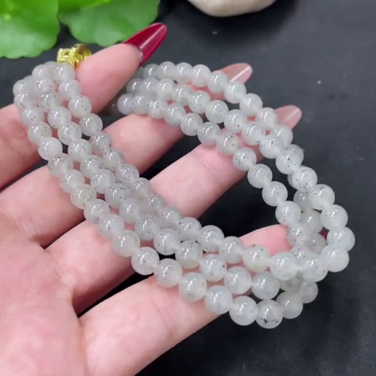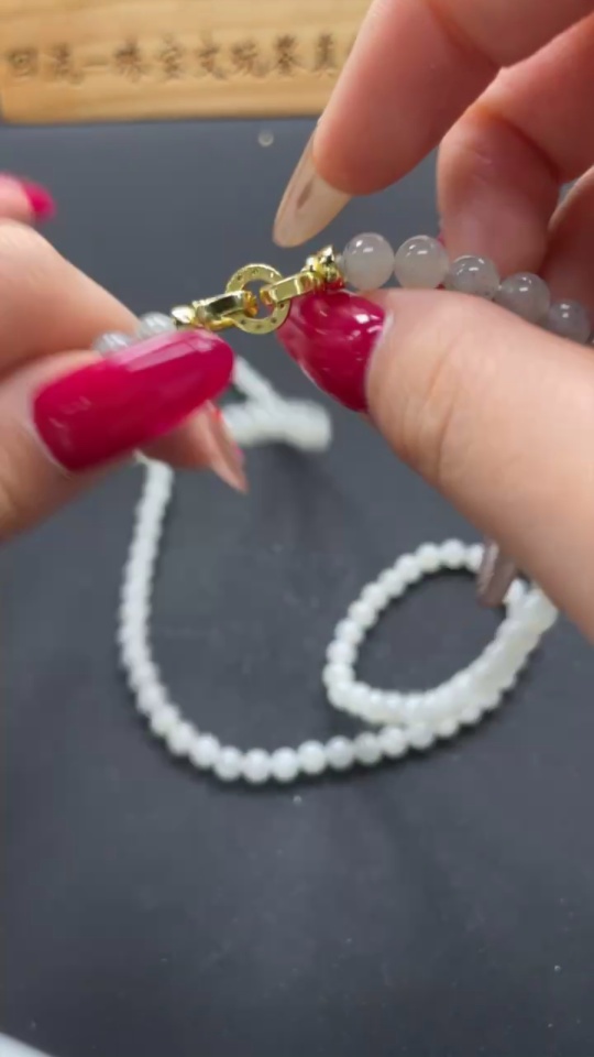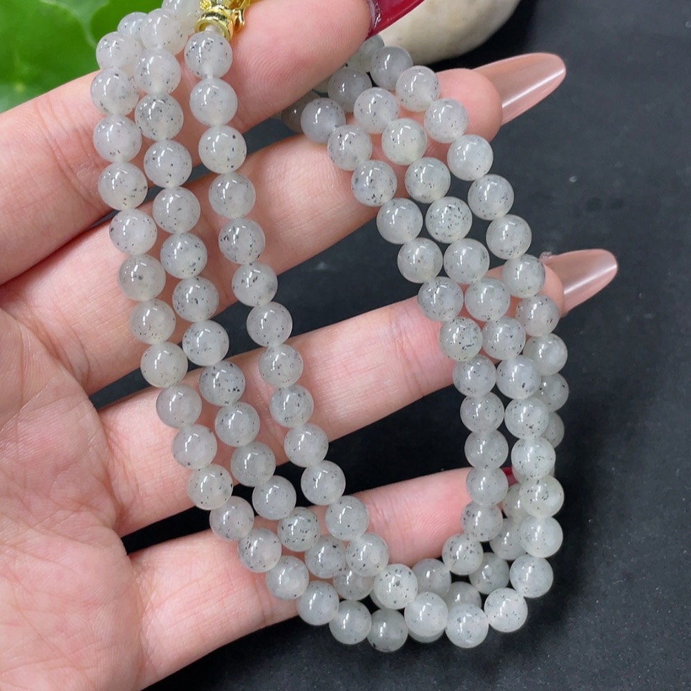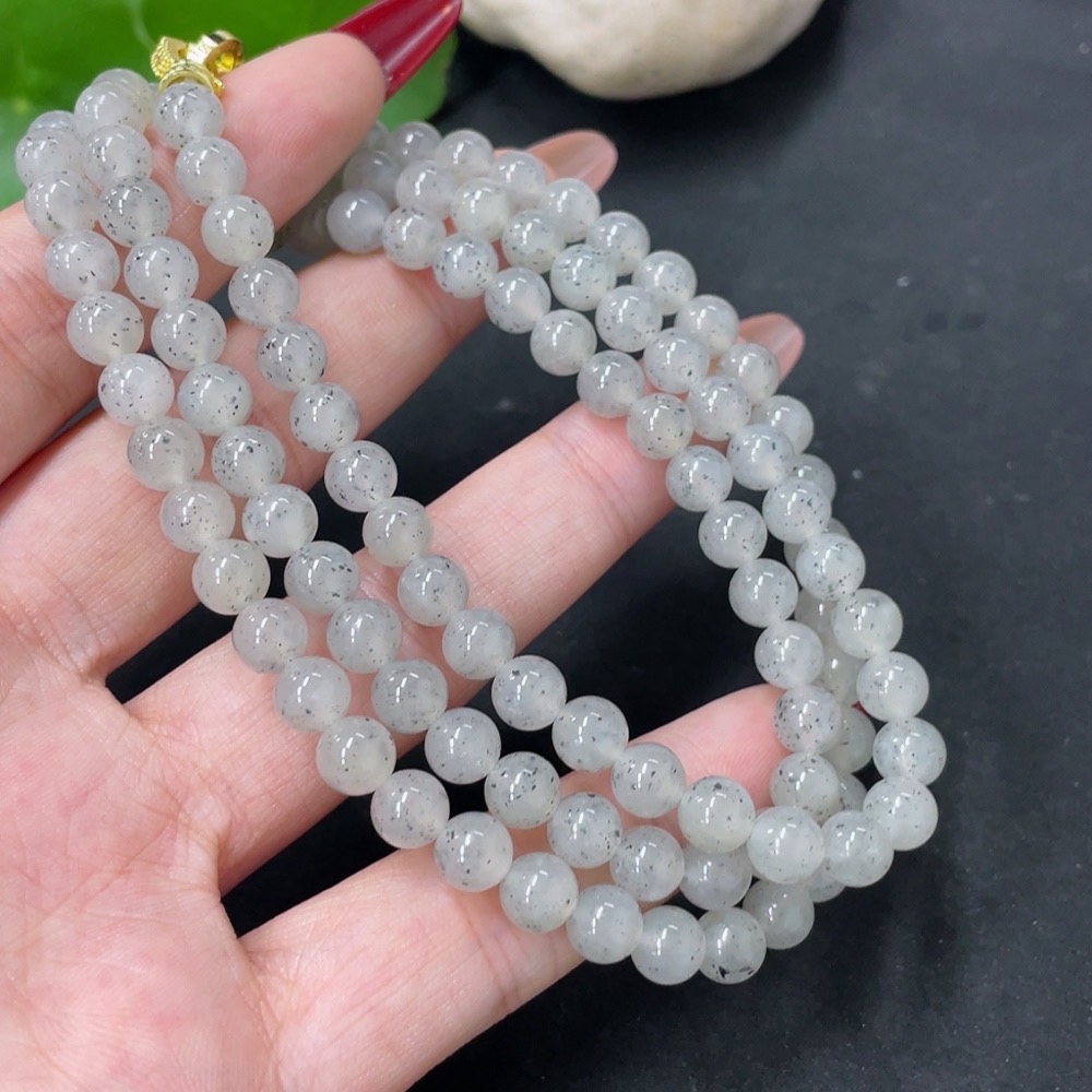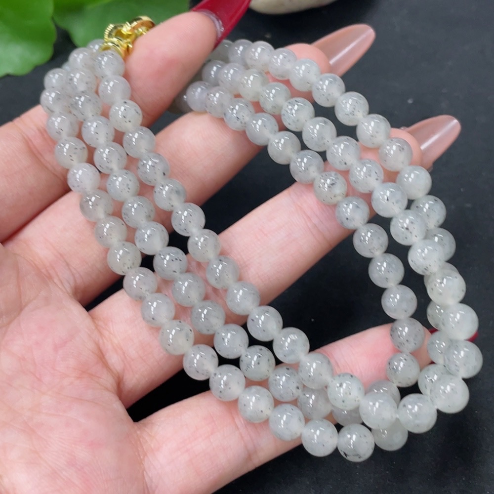 Hetian Jade Bead Necklace Non-Gold Approx. 6mm Total Weight Approx. 38.7g
